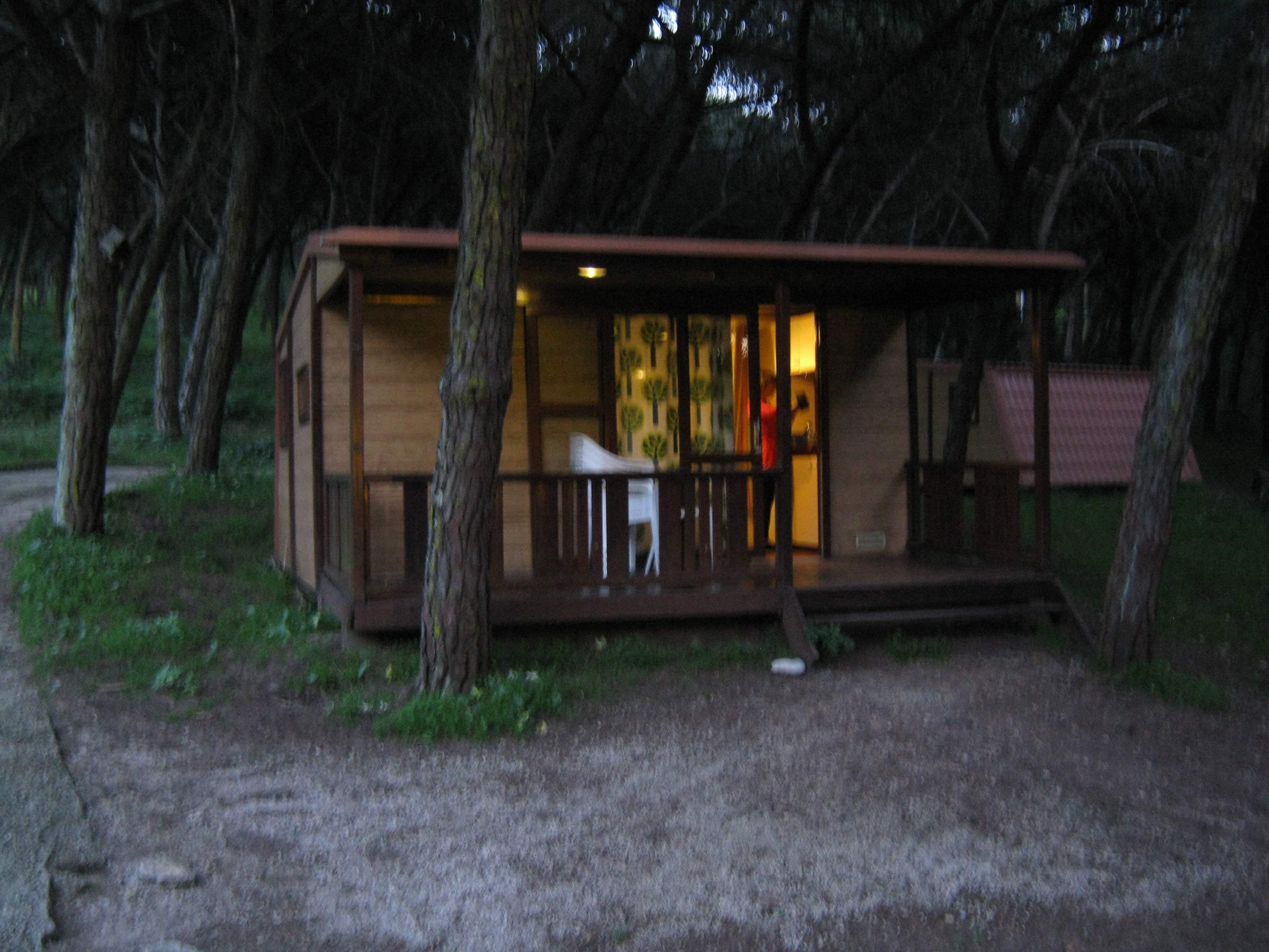 Then…we were allocated our cabin at the very top of the only hill in the whole park. So I pushed that bike and load up another hill, bracing my feet and heaving and hauling until we finally arrived at our cabin, which is a huge step down from our lovely comfortable apartment in Lisbon put a teeny tiny step up from a tent.