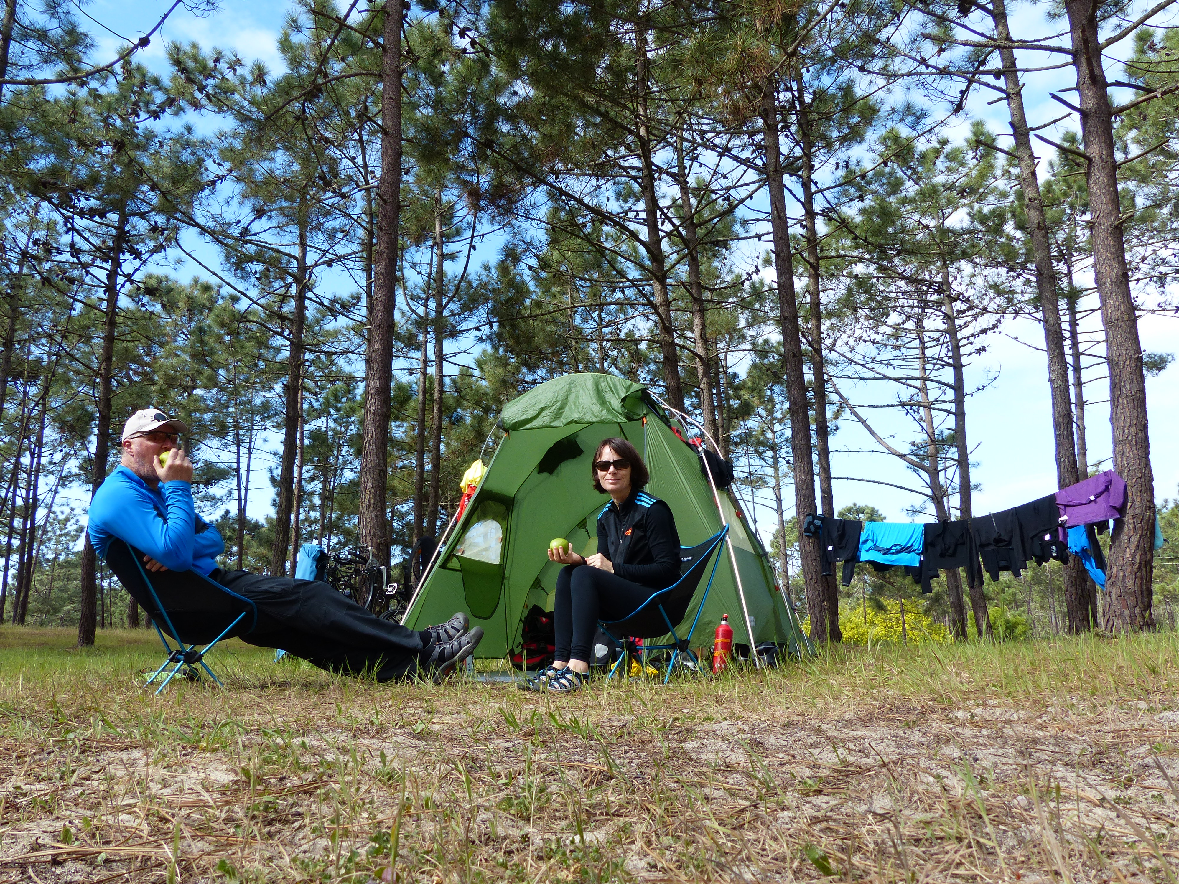 We then just pottered about camp, washed up, Steve fixed a puncture in his bike, we had a snooze, I got to read some of my book and it was a generally easy day. Lunch time came and lunch for me was a can of baked beans eaten straight from the saucepan like a real camper. I felt like the genuine article, like a student of Grizzly Adams eatin’ ma beans from ma pan straight off tha fire. Shame about the plastic ‘spork’ I was eating them with, which spoiled the effect somewhat. Steve had lunch in the camp restaurant (how civilised!) and tucked into a plate of rice and a bowl of hearty soup, which he then combined onto the one plate to create a stomach-lining rice stew. It was his “lunch surprise” because he wasn’t quite sure what he’d ordered with his pointing and lack of Portuguese, but ended up with a tasty lunch in the end. I kept him company with a cup of tea.