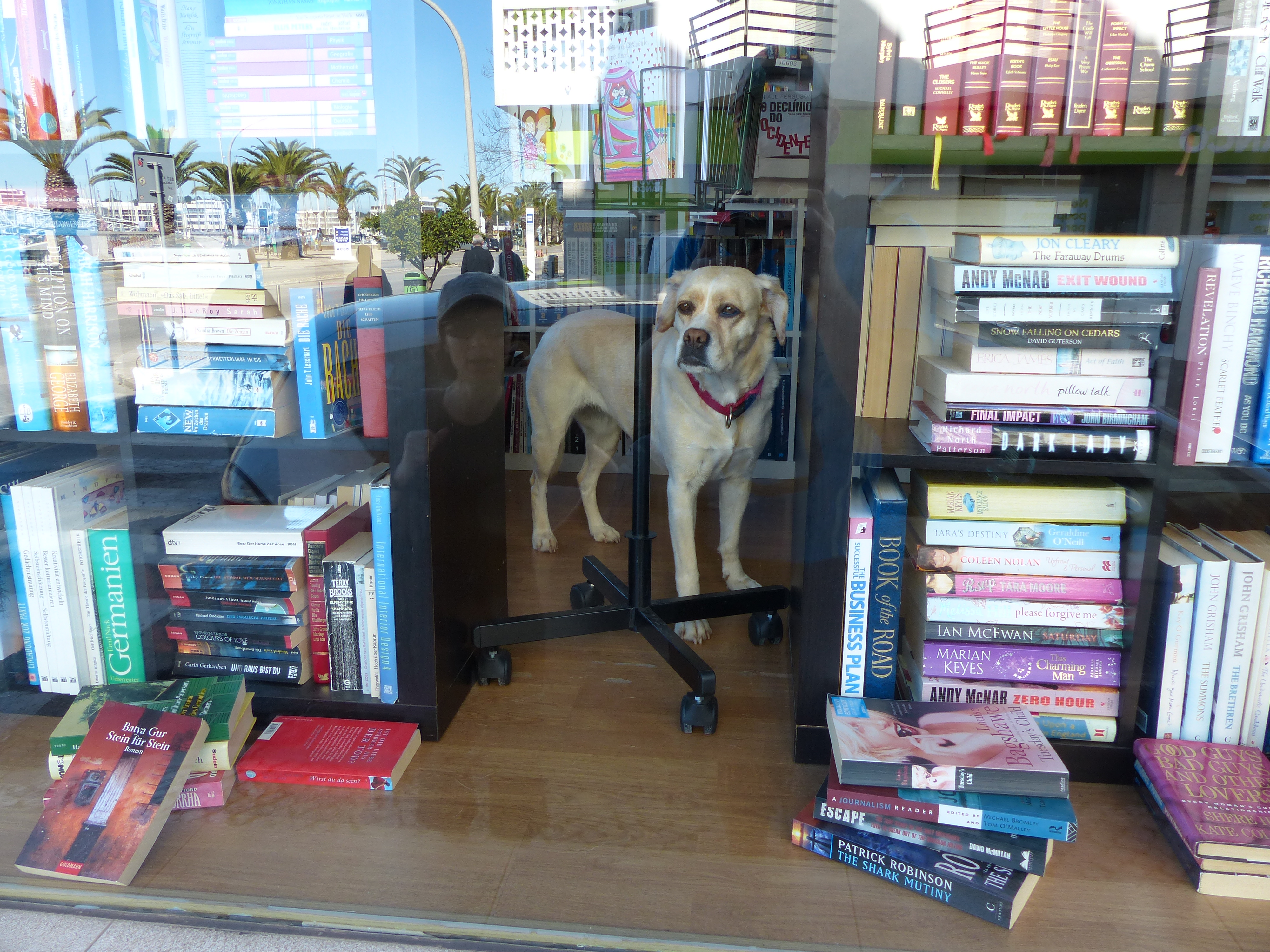 We sat at the marina and had elevenses and I even took off my jumper and bared my arms! Now, you know it has to be pretty warm for me to get around in short sleeves! So it was a very very warm day. It was just lovely. We passed many more British accents and many of them have dogs with them. I could also tell the difference between local dogs and visiting dogs because the local dogs we’ve met so far have been big and angry and snarly. The visiting dogs all seem to be Spaniels, Schnauzers and Yorkie Terriers with smiles and wagging tails. I guess they are on holiday so should be in a pretty peaceful state of mind. It must be a pretty dog friendly place though, with lots of pet-friendly hotels for there to be so many holidaying pooches about. We even saw a dog browsing in a book store. My kind of place!