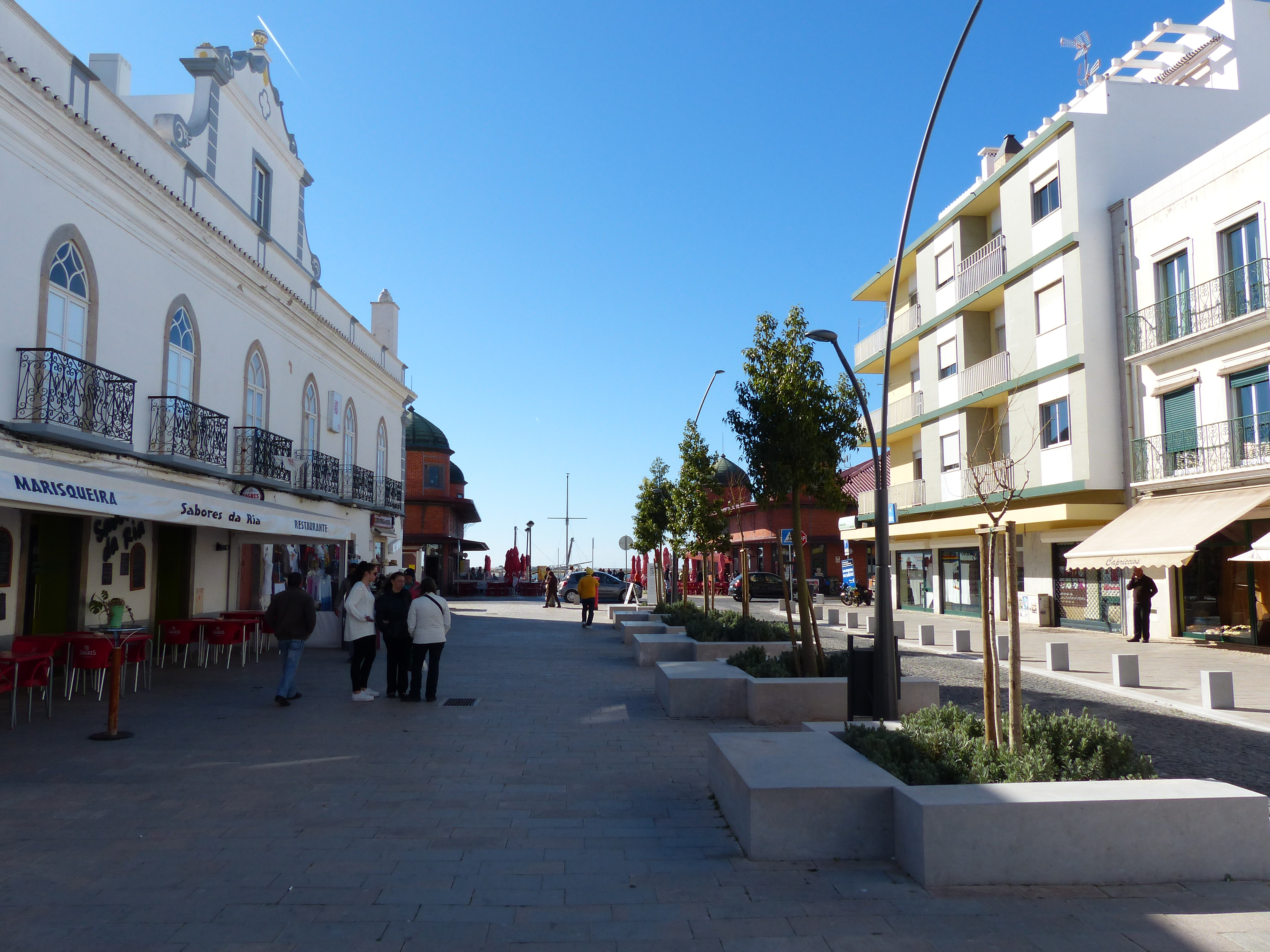 We rode into Olhao, which wasn’t far from Faro and it was a nice coastal town. We stopped near a church in the square to take a photo and I went off to walk around to the front of the church to take a photo from there. As I walked around the side of the building, there were some women walking towards me, so I stepped off the narrow path to let them pass, then some more women came along. When I got to the other side of the church and stopped to take the photo, I noticed the same women walking past the church. Well, it seemed I had come across the Olhao Walkers! There were groups of women doing laps around and around the church, with smiles on their faces and having a chat and they were setting a pretty cracking pace. Of course, I had found myself going against the flow of traffic once again and had to use my boot scootin’ manoeuvres to avoid the oncoming tide of velour tracksuits! That sea of mauve and navy velour was a fast-flowing tide and woe betide any unsuspecting tourist that accidentally put a toe in that current, you would be swept away in a torrent of trackies!