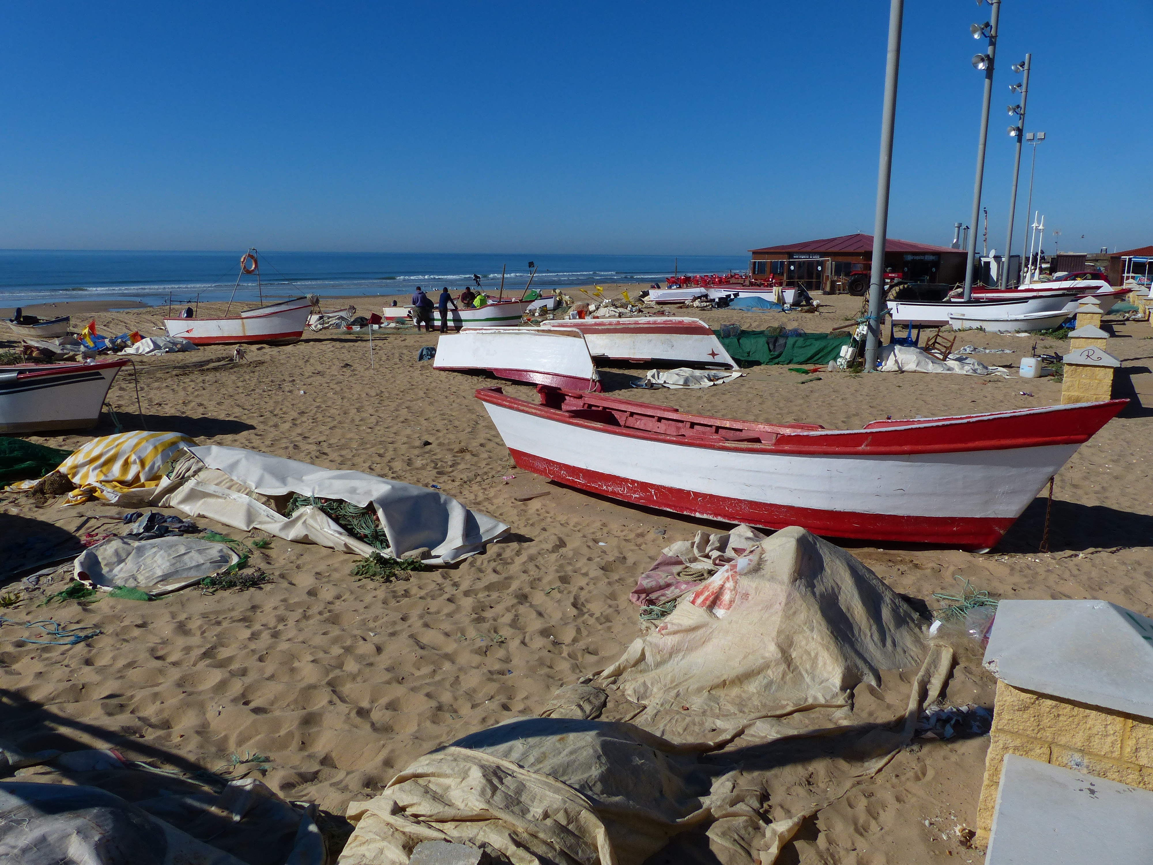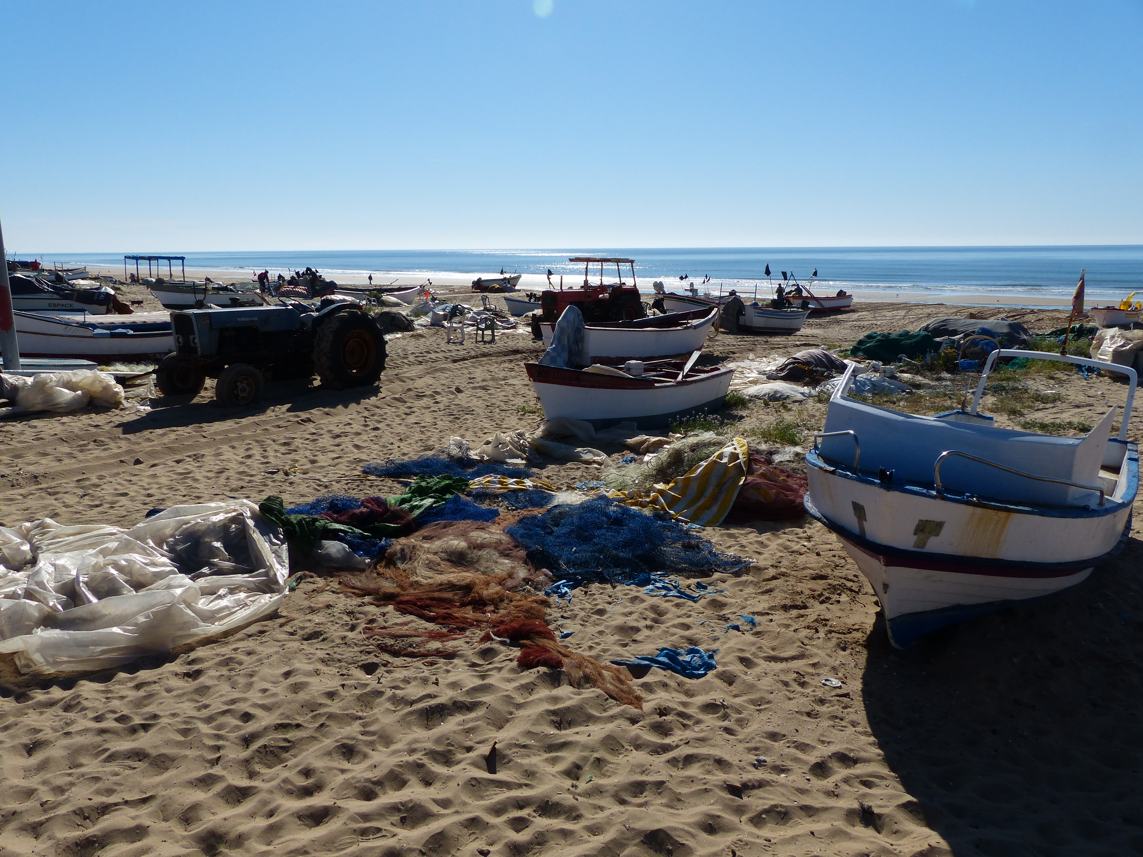 We got on the road about 10.20 and headed for our next campsite just short of the city of Huelva. About 8km into the ride, we passed Islantilla, which looked like a coastal suburb, so we pedalled in to take a look. It had a nice esplanade alongside the water, lots of people and families out walking and fishermen sitting and mending their nets. It was a lovely spot.