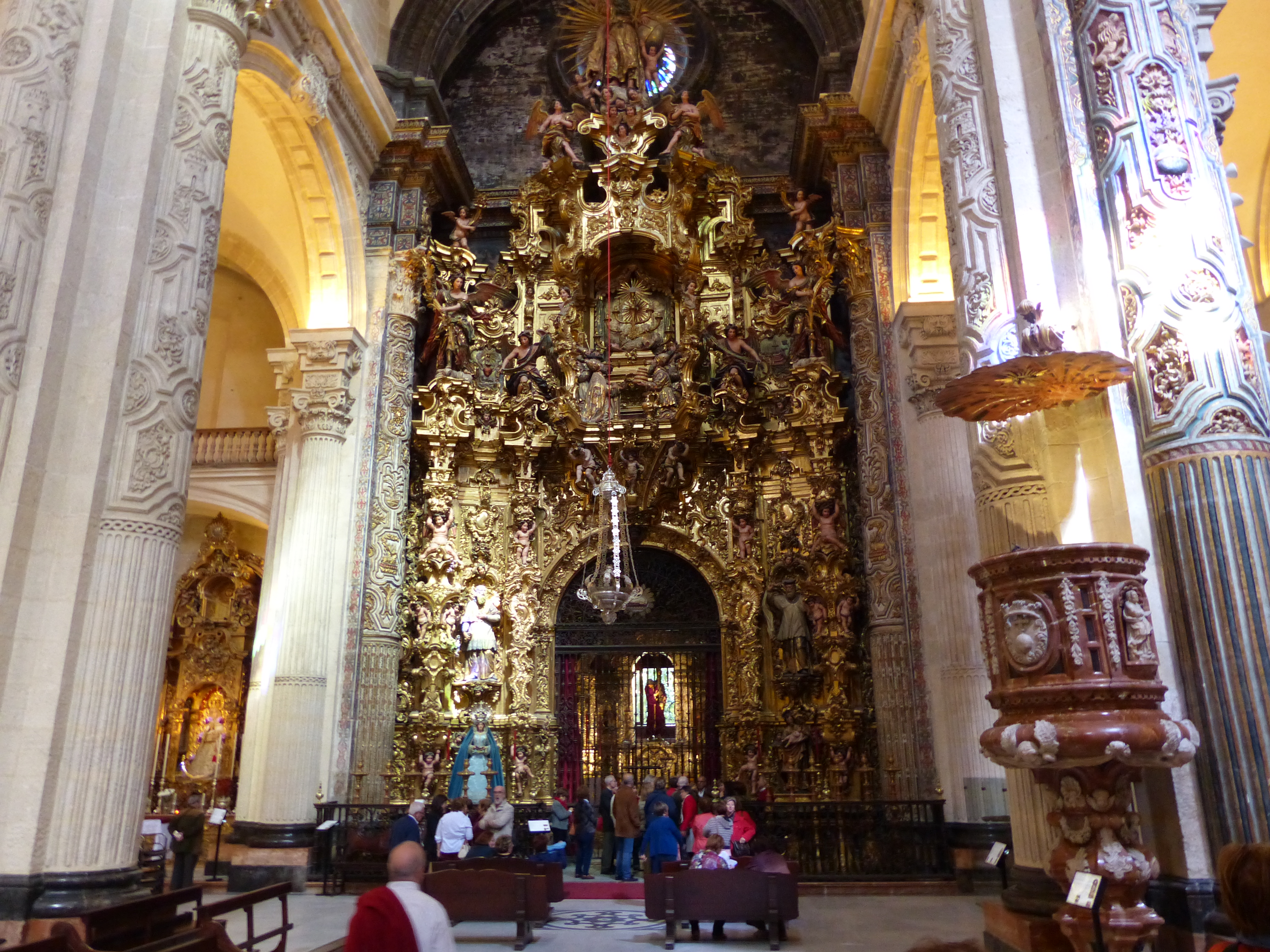 We had a slower start to the morning, which was nice, since we didn’t have to be up and packing things and loading bikes. We popped across to the supermarket and got a couple of things for breakfast and then sat in a plaza in the sunshine, had brekkie and planned our day of roaming. We began at the Collegiate Church, which is now a museum of antiquities from the church’s history. We walked around looking at the paintings, ornate alters and sculptures while listening to an audio commentary. There’s been a temple of some sort on the site since the 9th century and to cut a long story short, the Romans were there, then the Arabs came along and overthrew the Romans and built the grand mosque, then the Christians came and put the run to the Arabs and built the church, which then fell down on the day of its inauguration due to poor structure, so it was rebuilt with stone pillars and that’s the building that’s there today. The alters and tabernacles were so ornate, with silver and gold and such incredible detail, I didn’t know whether to be impressed with the work that was put into it and its beauty or a bit disapproving of the money that has been spent on creating something so ornate, that could have fed and helped an awful lot of people over the centuries. I guess there’s a few ways to look at most things.