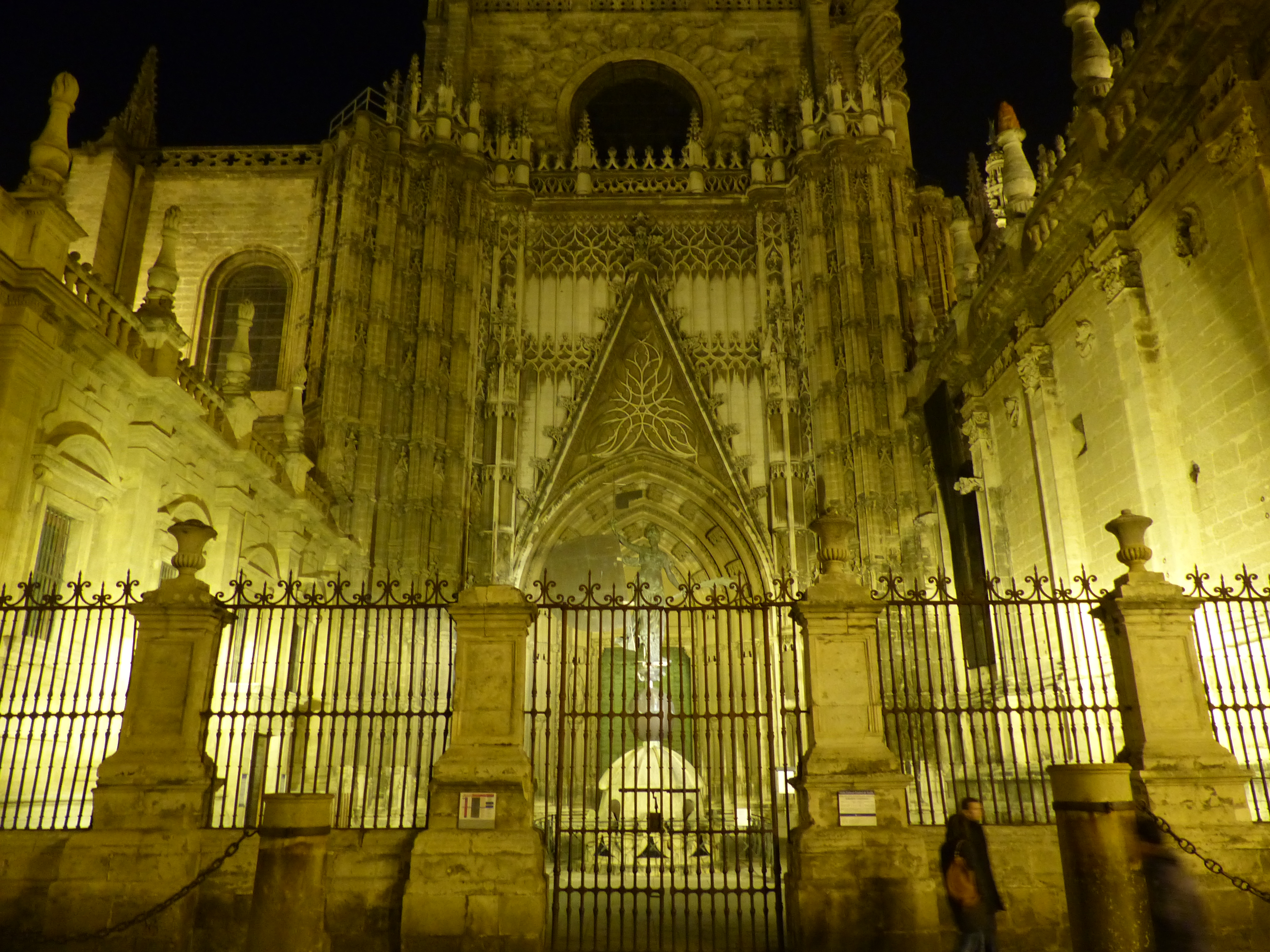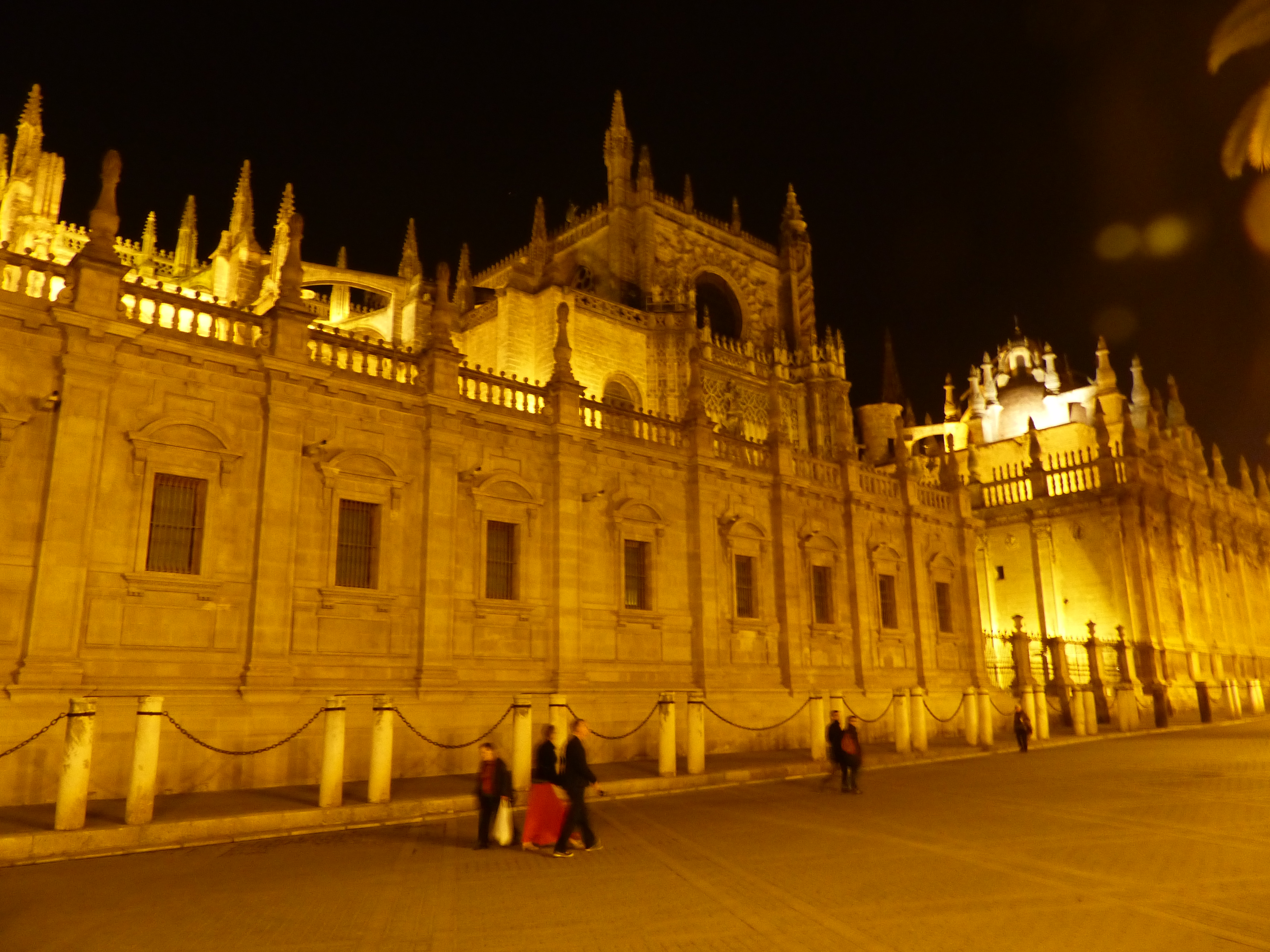 We went out for our final meal in Seville and we still can’t get used to sitting in a restaurant and having people around us smoking. We haven’t had smoking in restaurants for so long at home, that seeing so many people here smoking and all the cigarette vending machines around, that we haven’t had in Australia for more than 20 years, it’s something that really stands out to us. Afterwards we did a quick and chilly walk around the city streets so see some more of the city at night. The cathedral and the winding city laneways did look a picture all lit up.