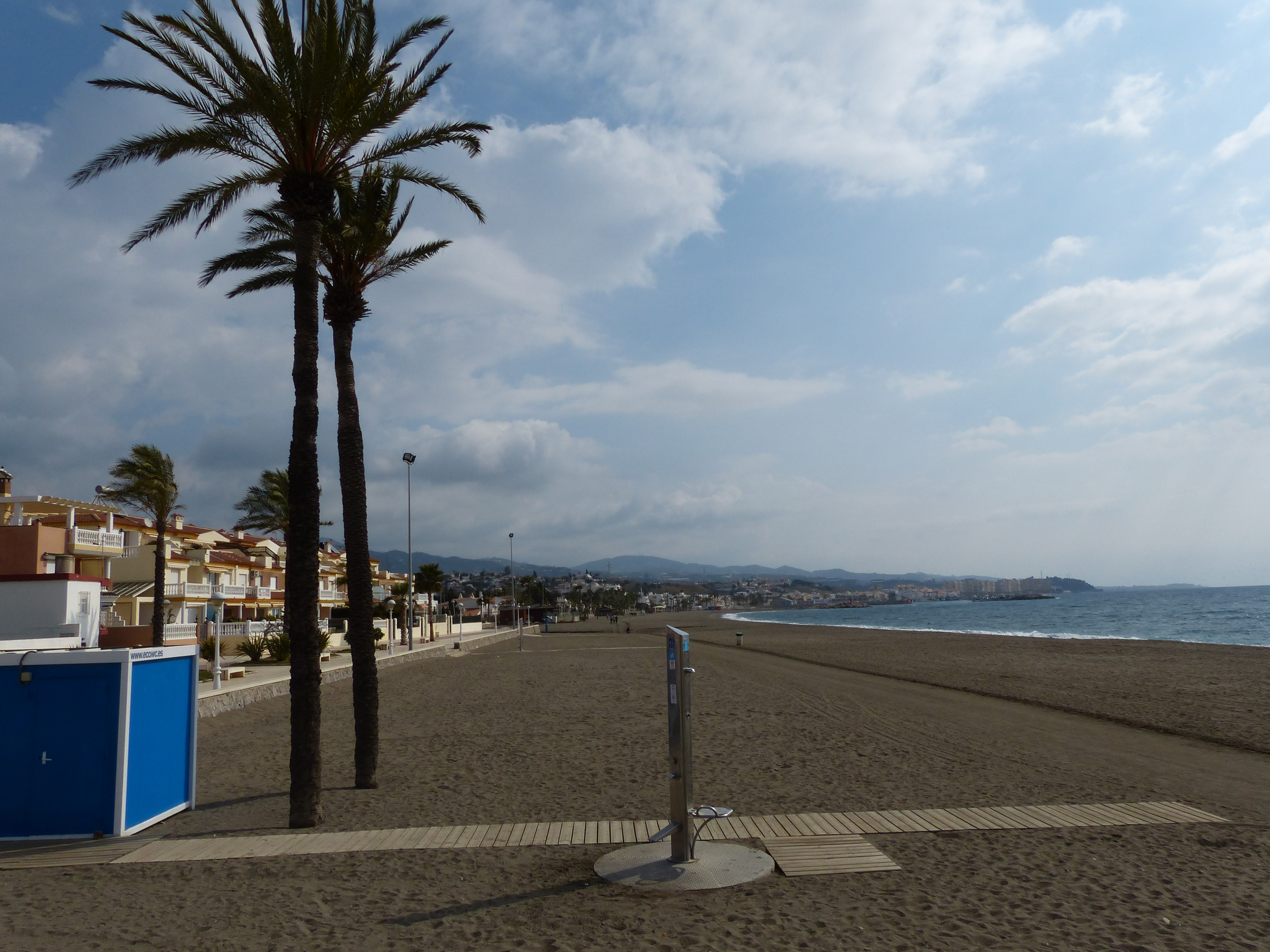 After some more hills we arrived in the town of Almunecar, where we had chosen our next campsite. It happened to be up another hill, so we pedalled up and stopped at reception. Door closed, sign saying “we’ll be back soon or we’re in the bar at the end of the terrace.” Hmmm, not sure about this place. It looked a bit dodgy. Steve went for a walk around and said he couldn’t see a toilet block and it did look a bit unkempt. Here we go again…another accommodation let down and another last minute search for somewhere to stay (it was now getting on for 5.00pm). Steve consulted the map and found a hostel back down in the town and it had good reviews. Off we went, then stopped and booked it online so we were absolutely sure we’d have a bed. Then began the tricky exercise of navigating the narrow little back streets to find its location. After pushing the bikes up some cobbled paths, Steve asked a local for directions to the street. In rapid Spanish and many hand gestures showing left and right, then a brief consultation with a voice through the intercom of a nearby apartment above a shop, he revised his previous directions, gave us some new hand gestures and we were back on our way, through the little cobbled laneways. We eventually found the hostel and it’s a nice place, we have our own room with our own bathroom and the owners are very friendly. So we eventually found a bed for the night.