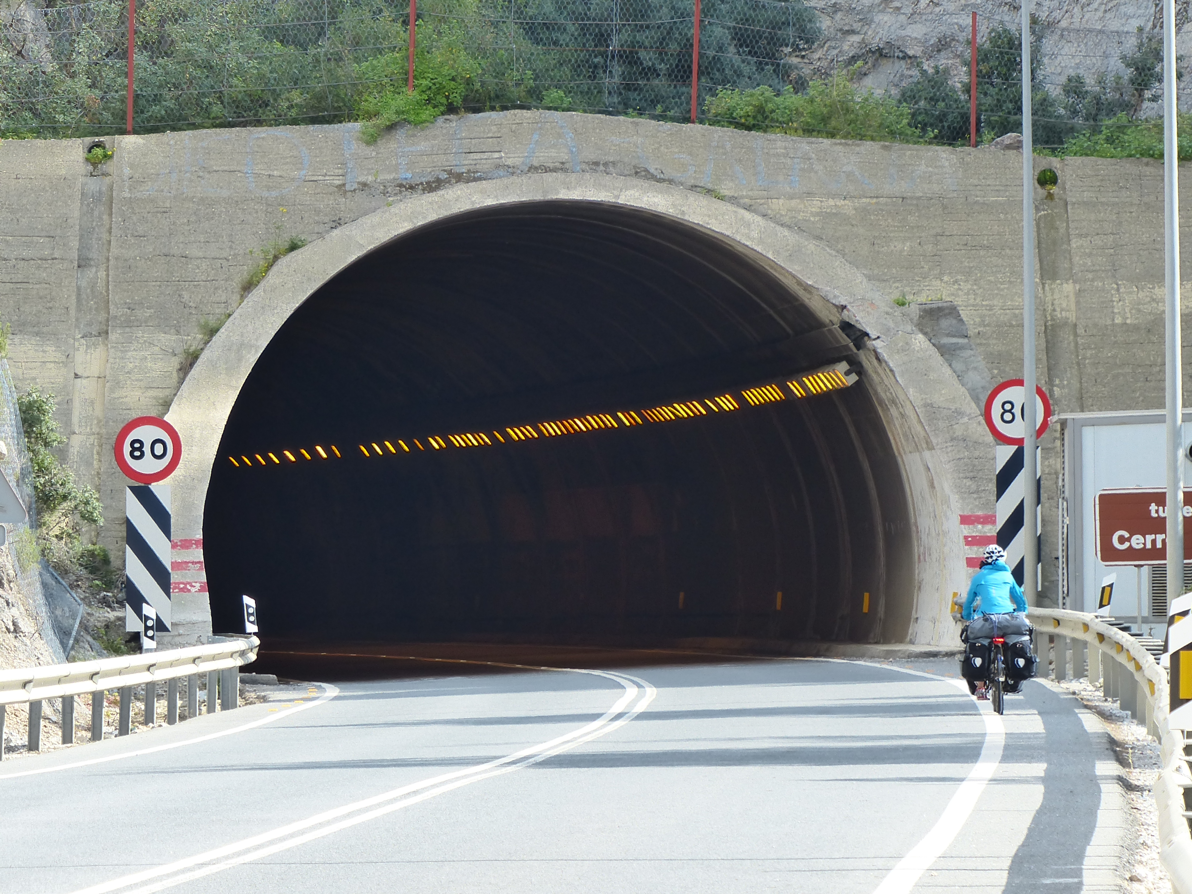 We had some long and pretty steep hills today and with a bike that wasn’t performing properly with some sort of resistance going on, it was tough going in places. We also rode through some tunnels through the mountains and that was a little bit unnerving. The roar of the traffic as it approached was so loud and just echoed the length of the tunnel. I was wearing a jacket with reflectors but I still wasn’t too sure how visible I was to traffic in that dark tunnel, so I flicked on my lights, put foot to pedal and absolutely gunned it! I went as hard and as fast as I possibly could to get through the tunnel as quickly as I could ROOOOAAAARRR came the traffic…hufff…puff…pedal…pedal…went I as fast as I could. Eventually, there came the light at the end of the tunnel (literally) and I was through. We had a couple of those.