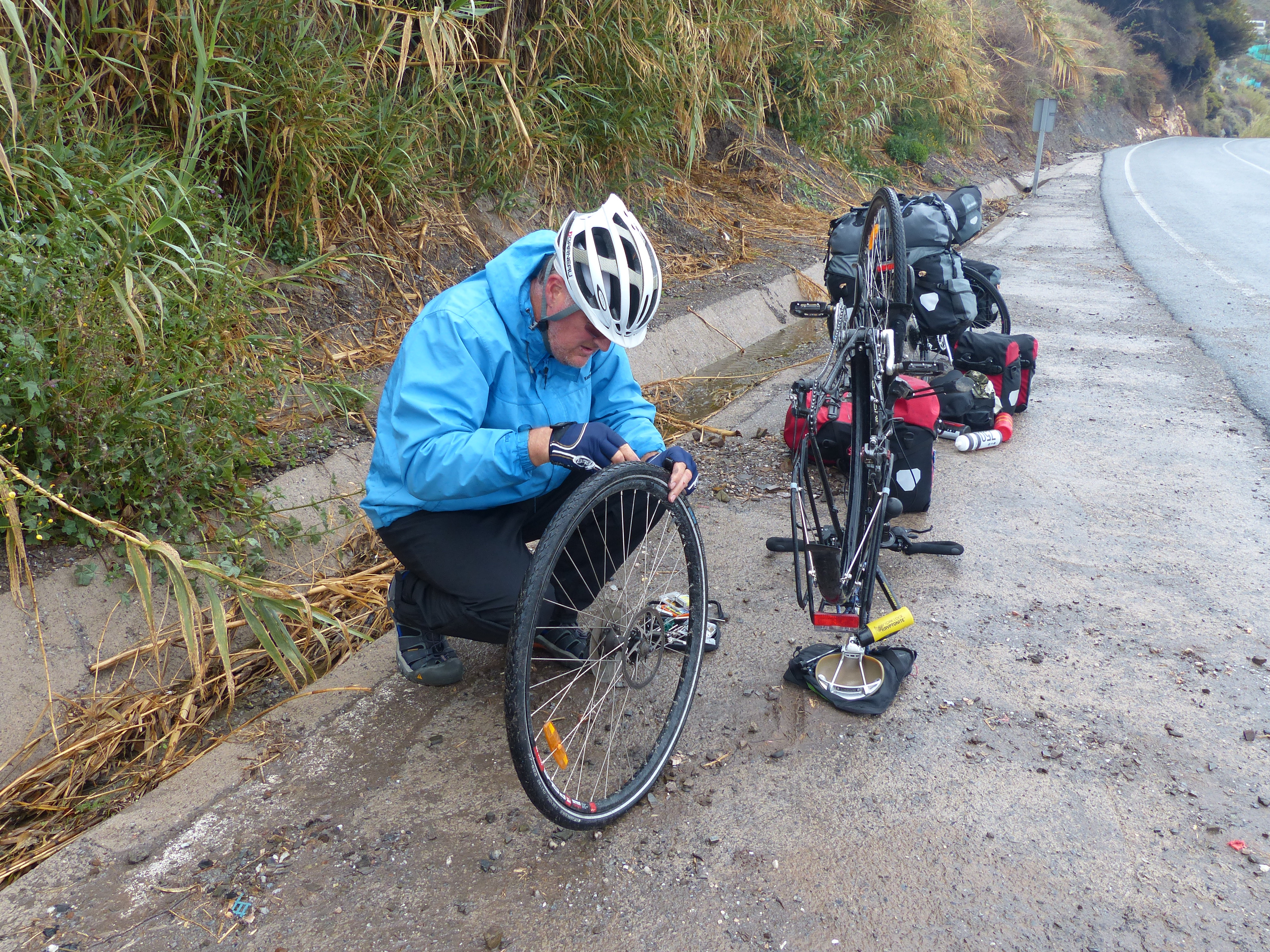 We don’t know what we’ll do tomorrow. We’re heading for Almeria but when Steve checked-in at our hostel, the man said, “Mucho, mucho, mucho wind tomorrow.” So we may need to play it by ear. We may just decide to go for it though and figure if we can get through today’s trials and challenges, we may just be able to do it despite the wind. We’ll sleep on it. We’ll also see how dry things get – at the moment our room looks a dreadful sight with clothes and tent and all manner of things hanging up and around the place trying to dry out.