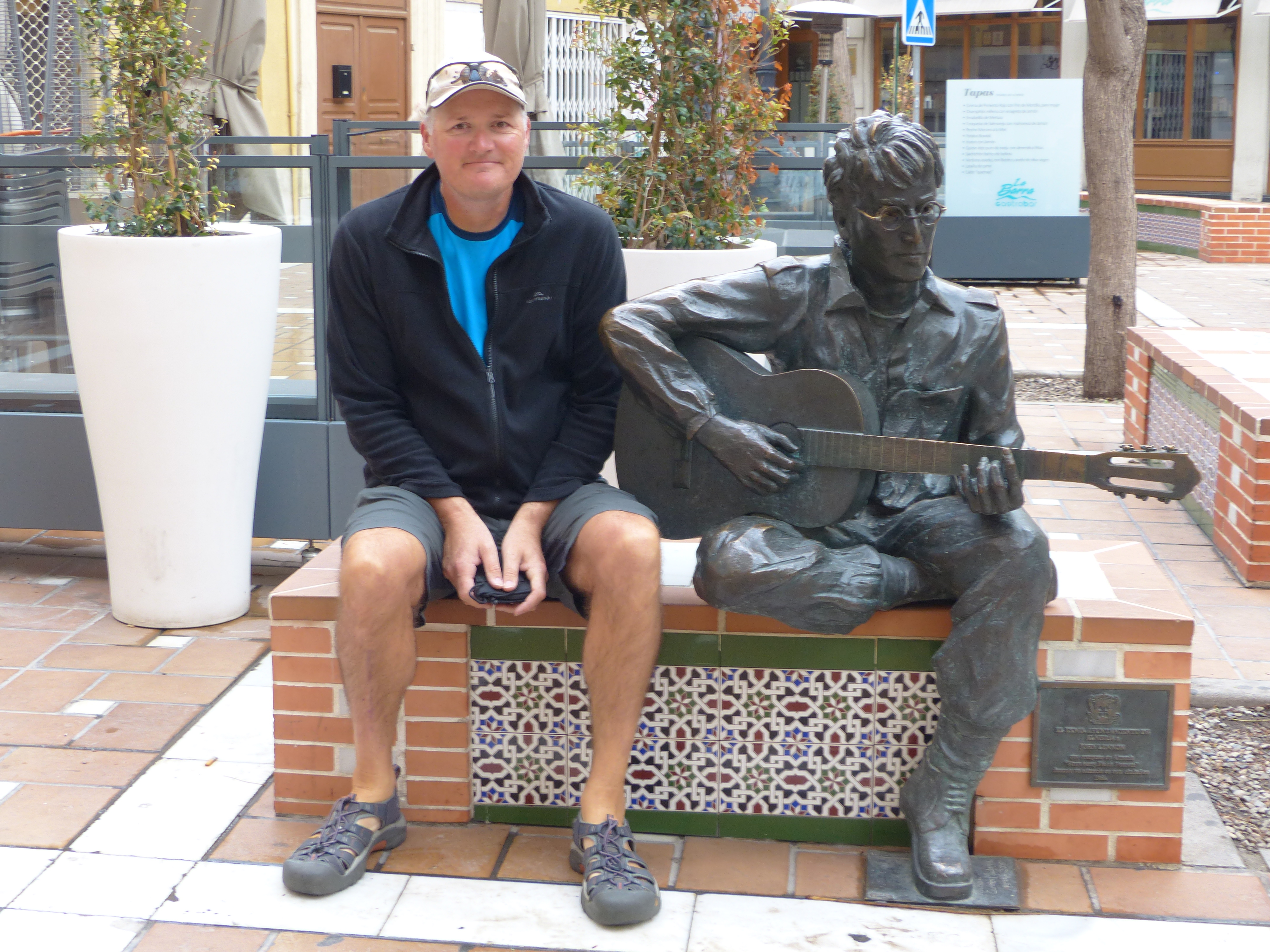 We then drove into the town of Cartagena for a look around and a lunch stop. This was obviously a touristy place, beside a beach with rows and rows of cafes and restaurants. Its claim to fame is also being the place where Lawrence of Arabia was filmed and John Lennon filmed How I Won the War there too, as well as in the national park we’d driven to earlier. That’s why there was a statue of John Lennon in Almeria, right outside our hotel. In 1966 he wrote Strawberry Fields Forever in Almeria, while on location for the film. The statue did look a bit out of place in amongst everything Spanish and the Spanish town and all of a sudden, there’s John Lennon sitting there strumming his guitar! Steve being a Beatles fan couldn’t pass up the opportunity to have his photo taken sitting beside the legend himself. I’m afraid I’ve never really taken to the Beatles, so I let John sit there without feeling the need to have a snap with him. In the Beatles vs. Stones debate, I’m more of a Stones gal myself.