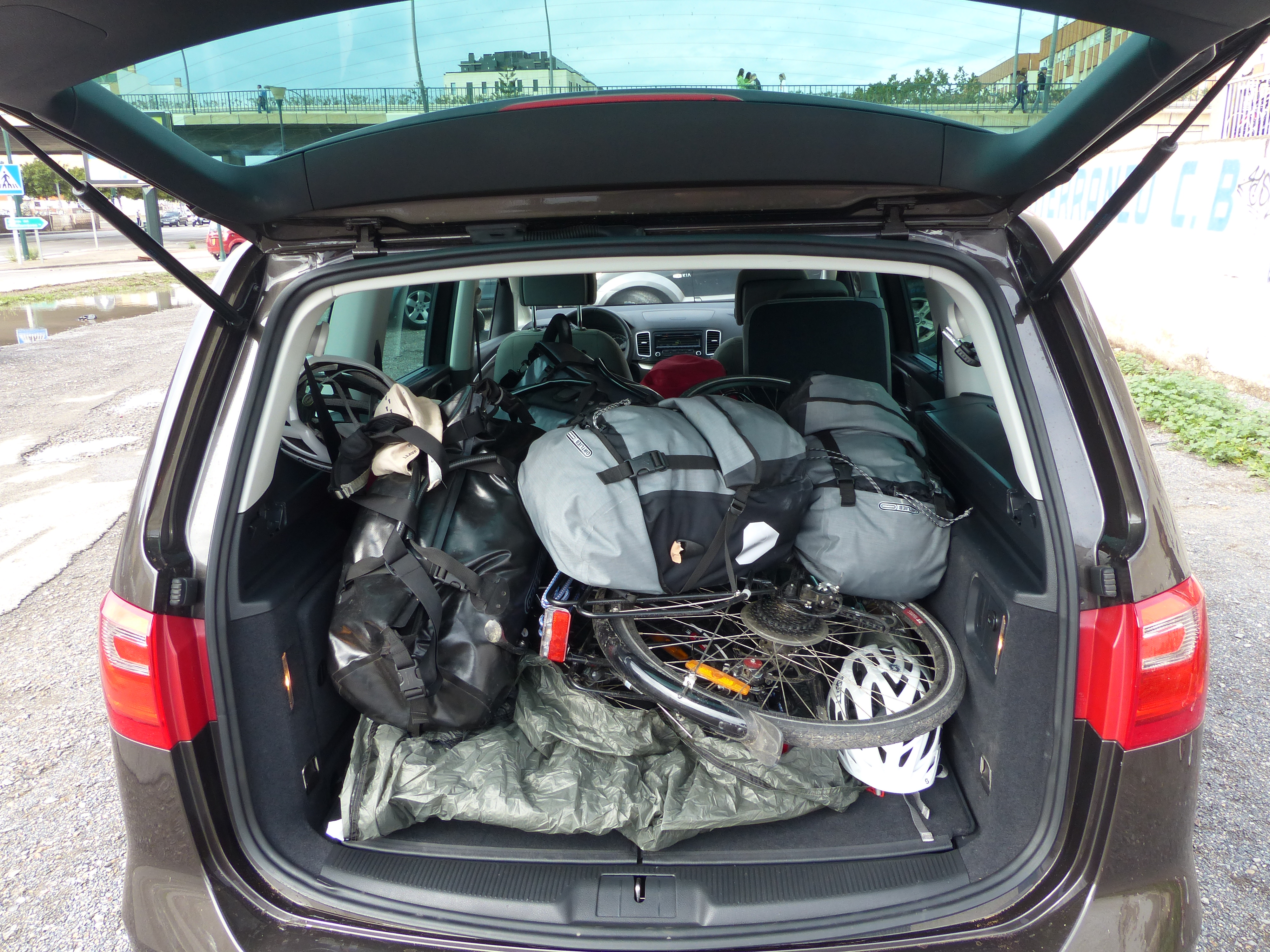 The longest ride we did today was down the street to the car hire place to pick up our people mover van and begin our travels north via four wheels. The firm didn’t have the van we’d booked, so they upgraded us to something a bit bigger (which turned out to be helpful), so we are in a five seater Seat, with the seats folded down and the bikes and all the gear loaded in the back. With Steve at the wheel, we headed out of town.