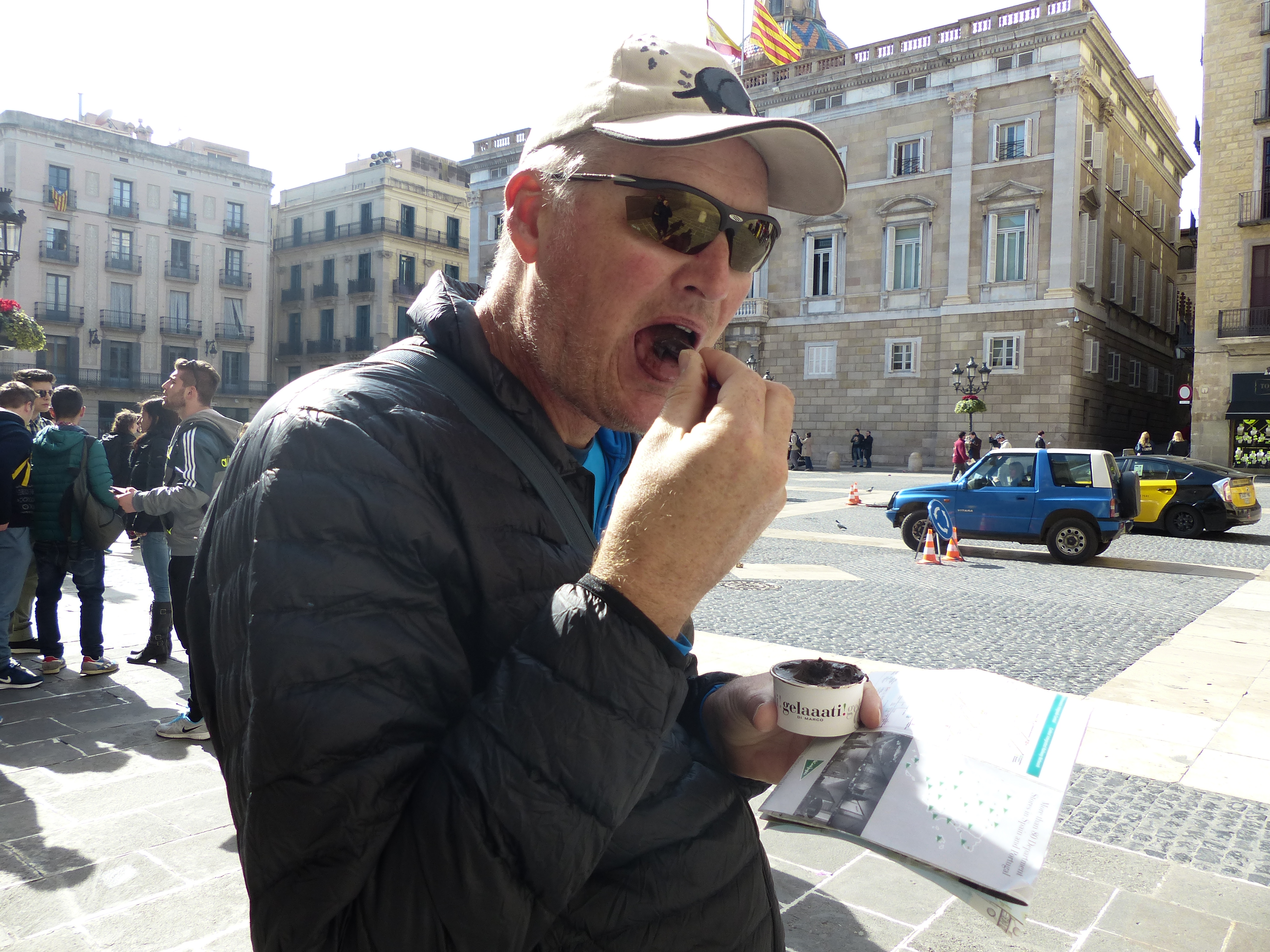 We decided to catch the train into another main station, so we could find out if we were allowed to take bikes on the train to France, because if not, we’d be pedalling up those mountains whether we liked it or not. We had planned to go to a station near the Born District in the city that we wanted to explore, but ended up overshooting our mark because the line we were on didn’t go the station we needed. Realising this, we hopped off, hopped on a different train and headed back the way we came. We decided to just go to the main station in the city, where we figured there would be good information about the rail services and what the situation was with bikes. It was getting on for 1:00 by now and we were both a bit peckish, so our plans for a picnic lunch in a park in Born went down the gurgler because we still needed to get our plans sorted with the bikes and the trains. So, continuing our theme of scenic and comfortable lunch stops, that we started with our varied dining experiences in motorway truck stops, we ended up in the five star dining location of the train station cafeteria. Oh well. The good news though, was the man at the help desk was very helpful and continued to say, “No problem, is no problem” when it came to taking bikes on the train. In fact he was so dismissive about it, like it was nothing to worry about at all, that I’m now a bit worried that when we show up, with not exactly your average bike, but two very wide-load bikes with fat panniers, we will be turned away at the door. We also have to go on regional trains, that are different to the one we took from Seville. The previous one had a designated bike section and we pre-booked the bikes and the train had a designated entrance for the bikes with a low floor off the platform. The regional train we have to take from here is just a regular train, with the step up from the platform and no specific area for the bikes to hang or be stored. There may be a space for them to stand or there may not, we won’t know until we’re on the train. I’m just worried about having to lift that load up off the platform and get it into the train, before the whole thing shoots off. I have visions of a bike half on the train, me inside trying to pull it on, while Steve pushes and then the train taking off, leaving me on it and Steve behind holding a bike! We must devise a contingency plan for such a mishap.