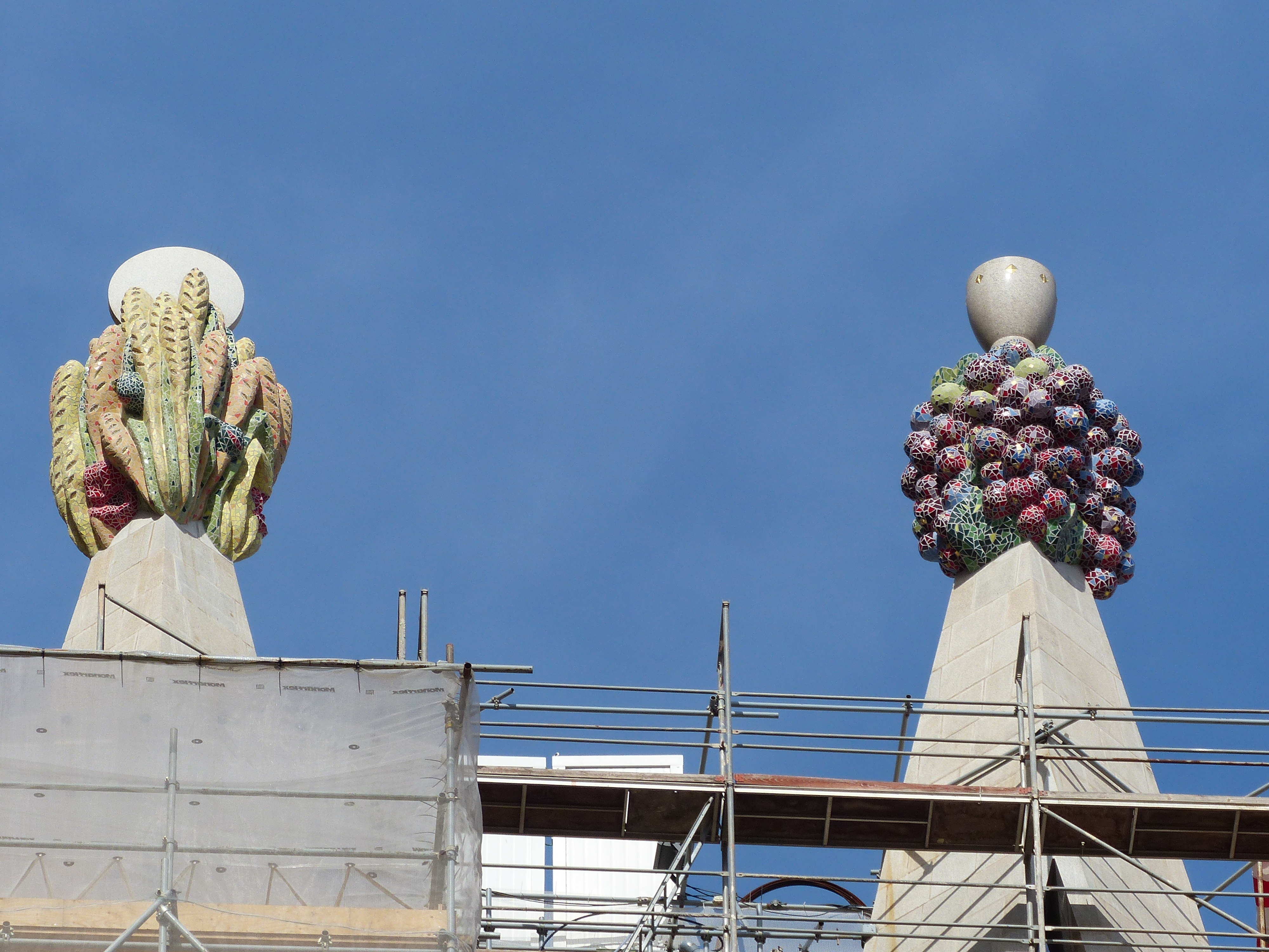 Our final stop for the day was La Sagrada Familia, a huge, ornate Basilica, that is another of Antony Goudi’s architectural creations. It had lots of scaffolding up, with work being done on it, but we could still see some of the amazing architectural elements. Goudi really did like his fancy bits. I think he must have been the Liberace of 19th century architecture because he sure added some flamboyance to his designs.