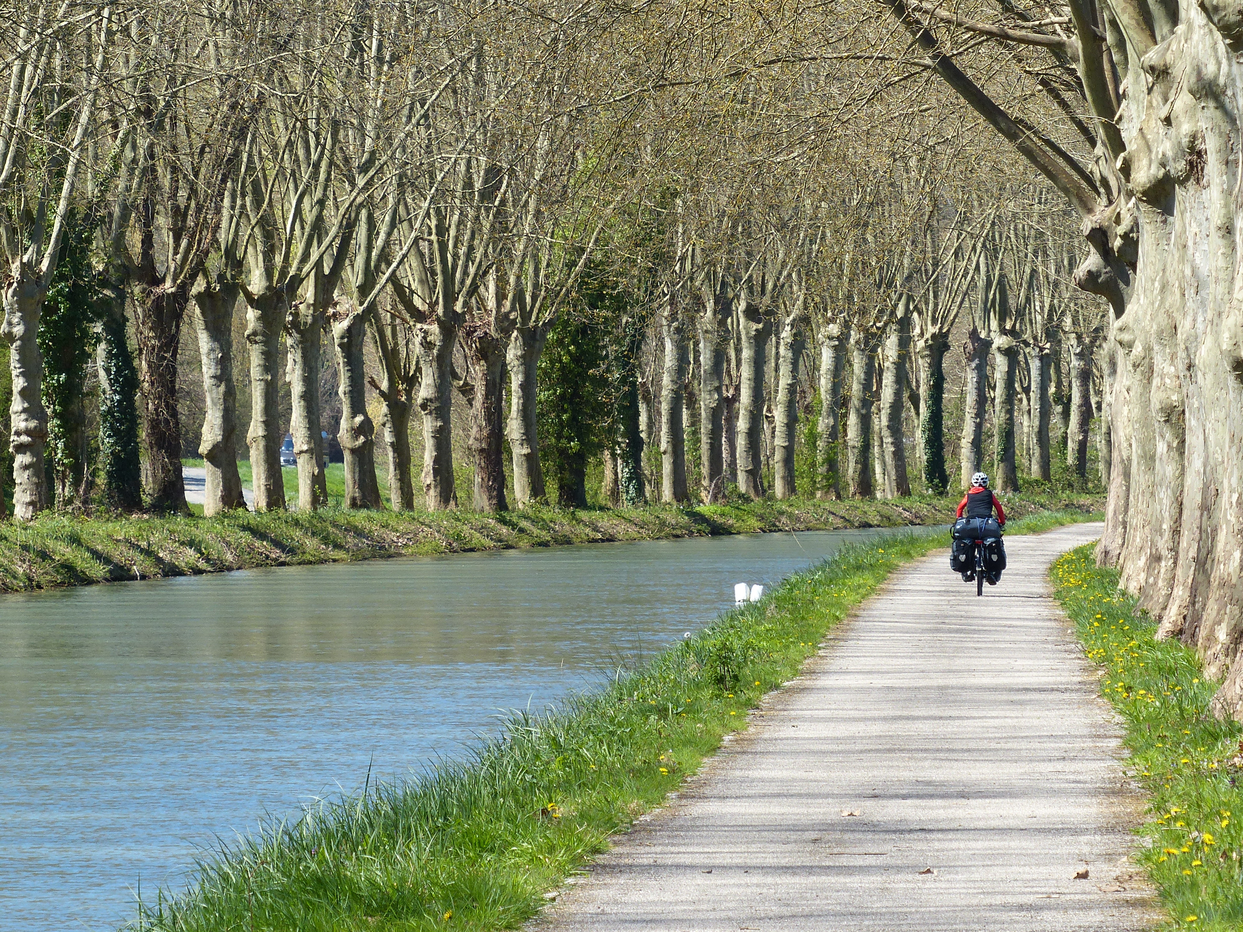 Well, we made it through what was probably our coldest night yet in the tent. There was a couple beside us with a car and this morning, they were scraping ice off their windscreen before they left. It was cold! Despite two pairs of socks and riding in the sunshine, my feet stayed freezing until about lunchtime. When we set off, because our campsite was slightly off course from the canal, we needed to ride along the roads for about 15km before we could get back onto the path. This was actually a really nice ride and a nice change of scene, to ride along country roads, see farm buildings and houses and see some new scenery. We stopped briefly on the side of the road for me to do some quick bike maintenance and then we turned off and headed for our canal path once again.