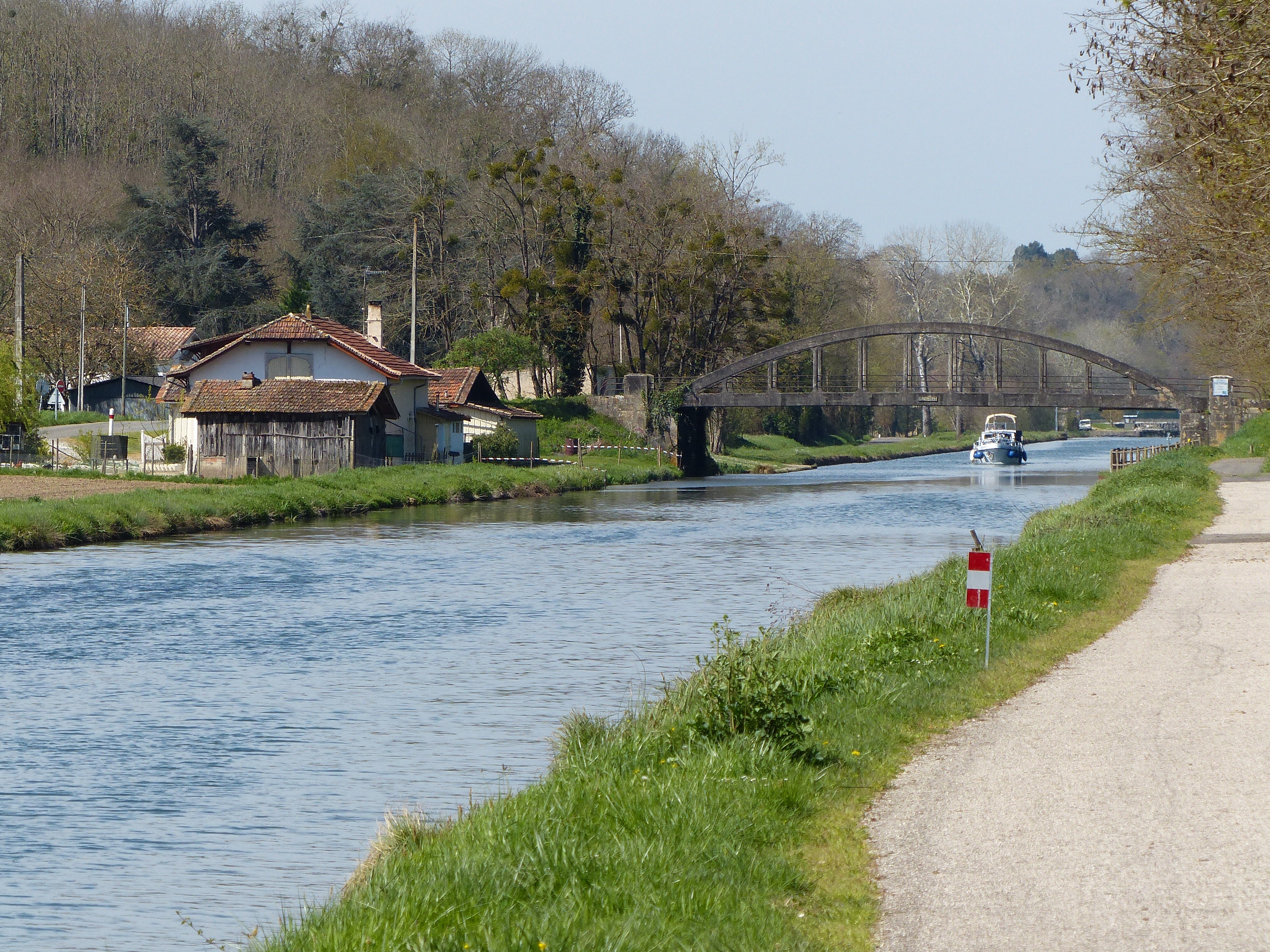 Today was our final ride along the final stretch of the canal. We set off from our cheap and cheerful hotel, said Au Revoir to the delightful Olga (she was on reception again this morning, she must work really long hours and long back-to-back shifts!), who wished us a good journey. First stop was to a bio store, so I could replenish peanut butter supplies and Steve could wait in the car park and install his newly purchased replacement bike seat. Success at the bio, with nice peanut butter, jam and crusty bread for Steve. Off we went. Our destination today was the town of Lagnon, where we would catch a train to Bordeaux. We’re doing some calendar watching at the moment because we have to be in Peronne on April 24, in order to make Villers Bretonneux for Anzac Day, so we’ve been deciding how best to get there, which routes to ride, how long it will take and where we may need to leap-frog via train.
