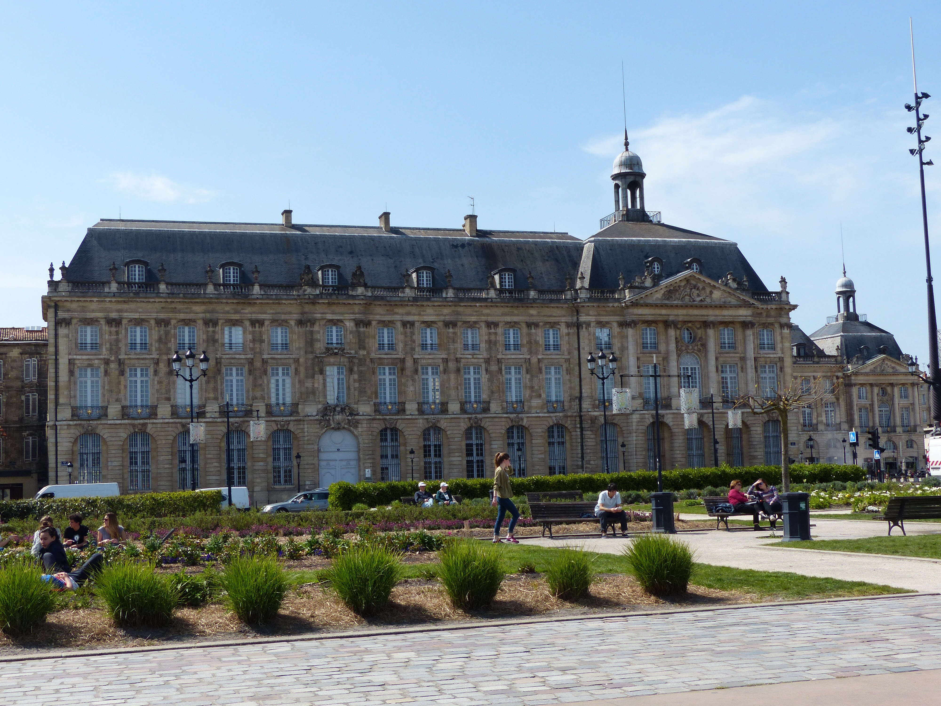 Bordeaux felt like a lovely city, quiet and with some beautiful buildings. We rode along the wide boulevard beside the water and as it was now 2:30, we stopped to have a quick bite of lunch near the Martin Luther King Jnr Promenade and look across the water. The pigeons were flying around as usual and these pigeons had been provided with their own little house! Pigeons are not generally well thought of, so it was nice to see they had their own little coop to nest in, provided for them by the city of Bordeaux!