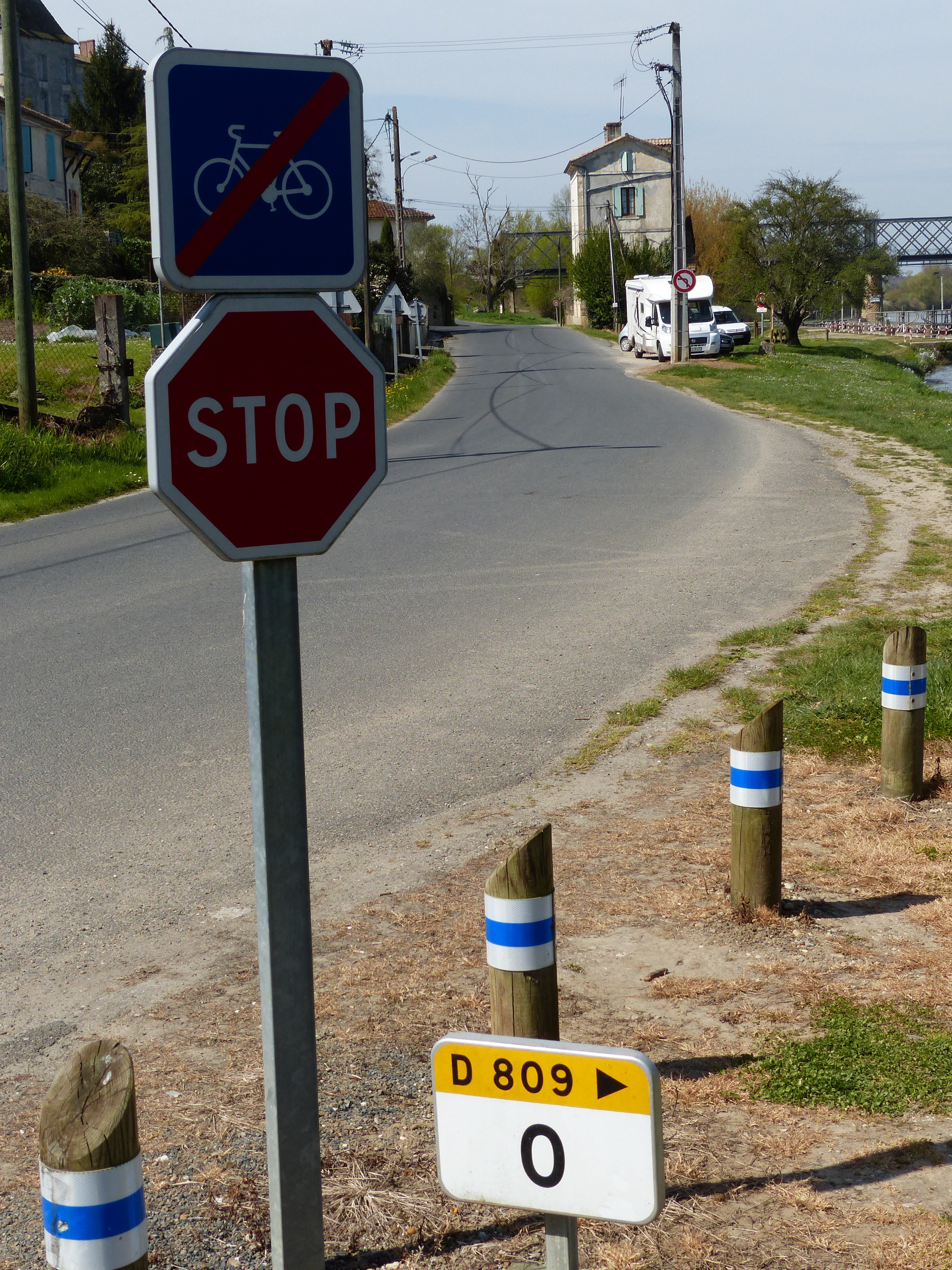 All too soon, the path came to an end at Castets-en-Dorthe. That was it…the end of the line…no more canal…no more path…all done…over…finished. So we had ridden the Canal du Midi and then the Canal de Garonne and it was absolutely delightful all the way. We paused briefly to say ta-ta to the canal and the lovely riding it had given us and then rode on towards Lagnon.