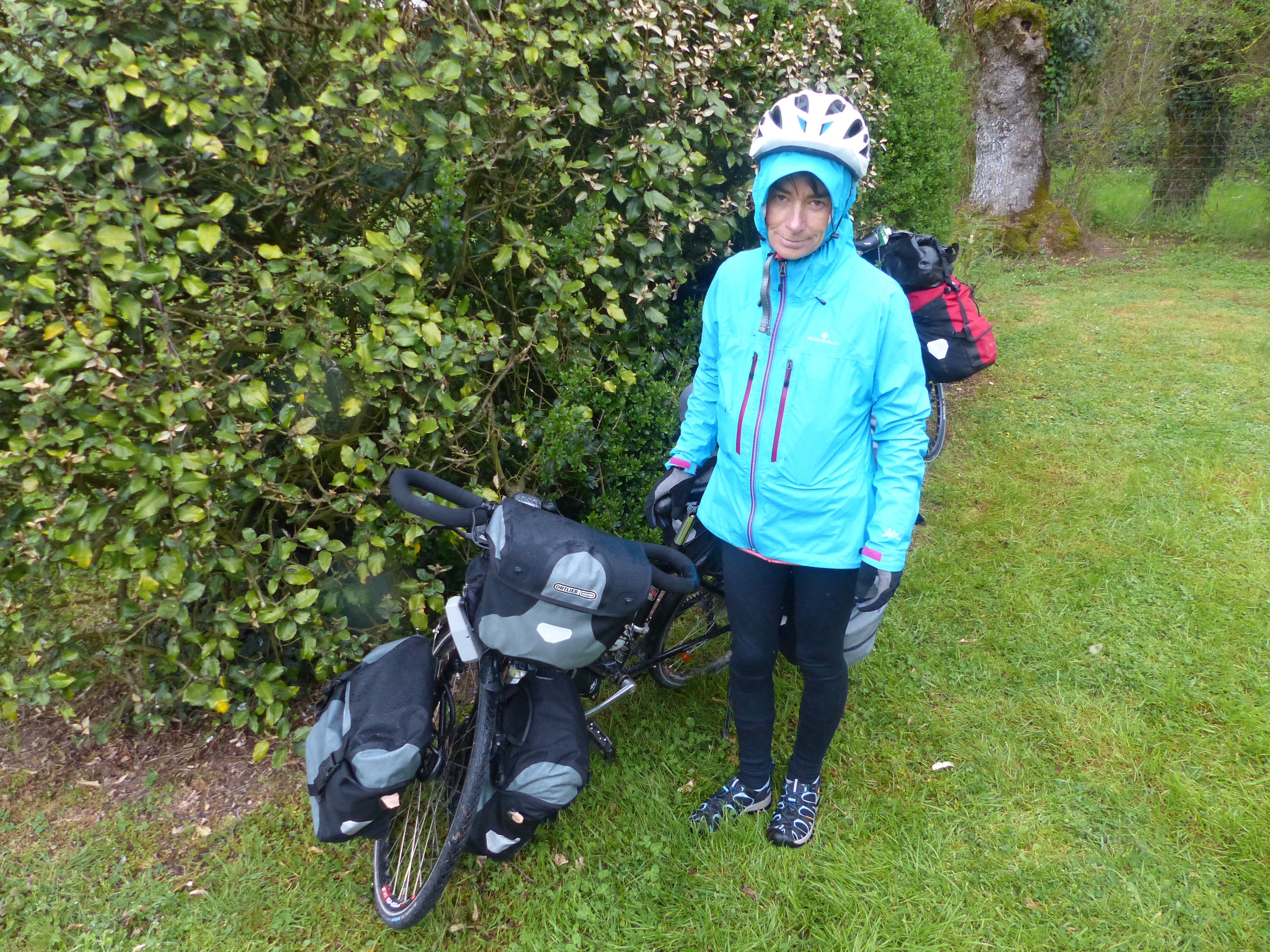 “Oui,” we said again and she gestured for us to follow her. I waited with the bikes, while Steve went with her, to be shown where the bike camping section was. Well, it turned out to be such a top spot, we immediately ditched all plans for a cabin and pitched the tent instead. We have a lovely big grass area and a big marquee tent equipped with microwave, fridge and indoor and outdoor picnic tables. It’s the first “camp kitchen” we’ve had and the marquee gave us a place to sit out of the wind, so we pitched the tent in a sheltered and private spot behind a hedge and this is our home for a couple of nights. We were able to cook supper in the marquee on the Trangia, out of the wind, eat at a table like civilised people and now sit and type, on a table, with real fair dinkum overhead lights too! The only trouble is there’s no wifi down here, so we’ll have to go in search of it tomorrow so as to keep the blogs happening. It’s been tricky blogging lately because the places we’ve stayed have had really poor wifi, which means photos won’t upload, but the wifi zones have also been a single spot outside the reception office. This has meant freezing cold nights sitting in the dark, trying to post a blog, while freezing our tails off in the process. So, sometimes the blog happens late or a day late, due to wifi or it may suffer somewhat in quality because we have to do it as quickly as we can because it’s midnight and we’re sitting outside in the dark and the cold, just to access a single wifi spot at a campsite. It’s just another small challenge to be faced at times!