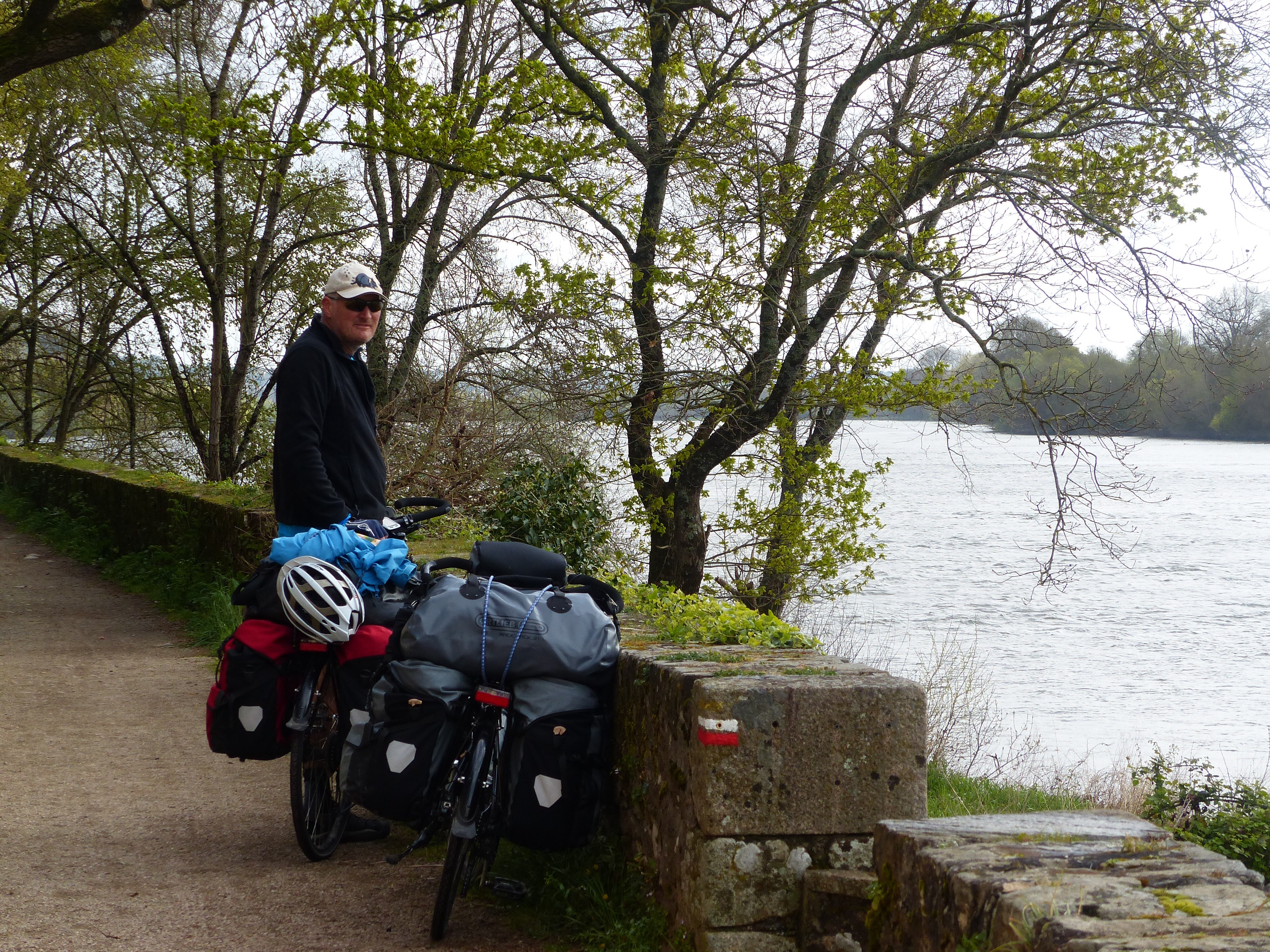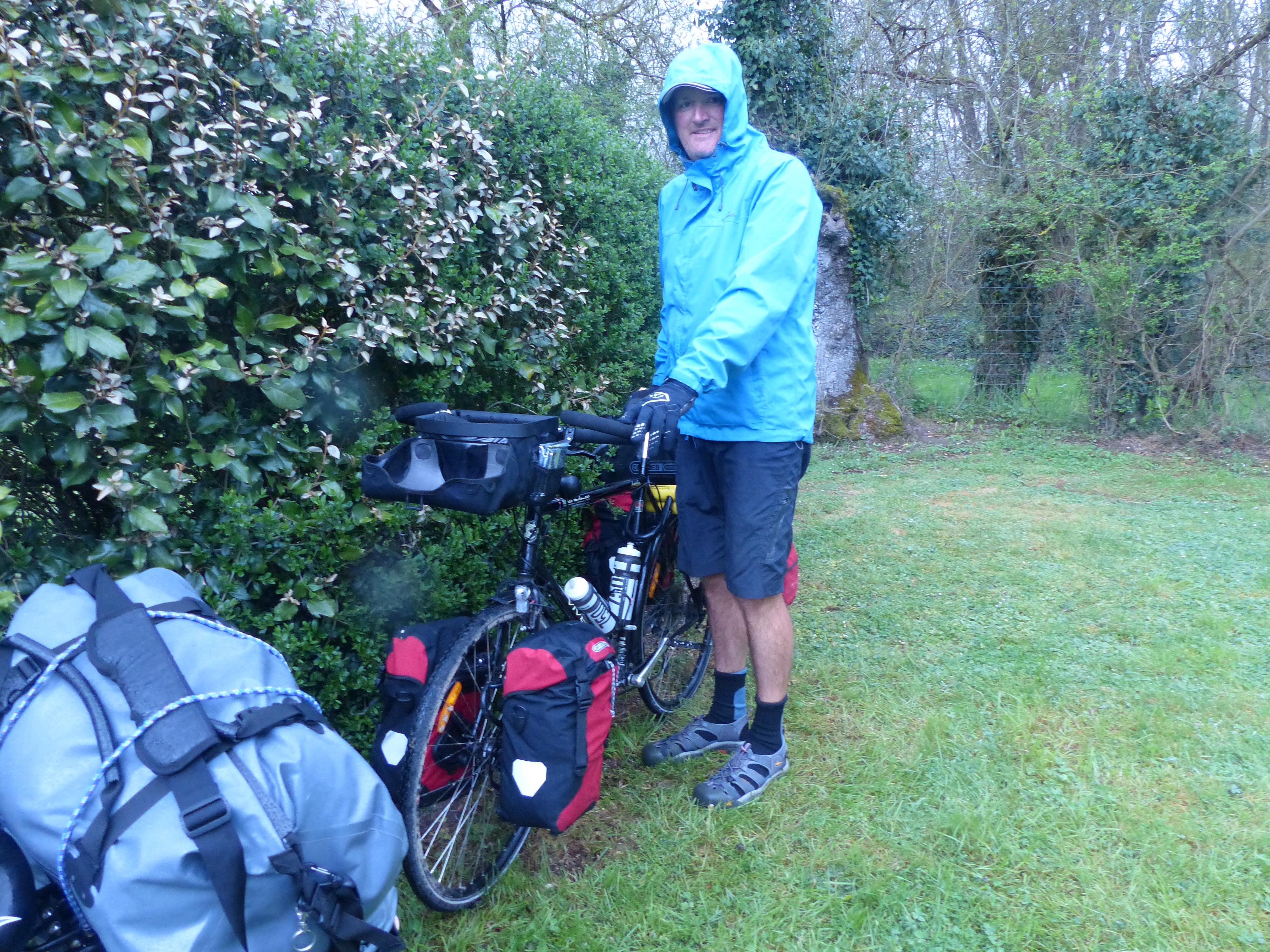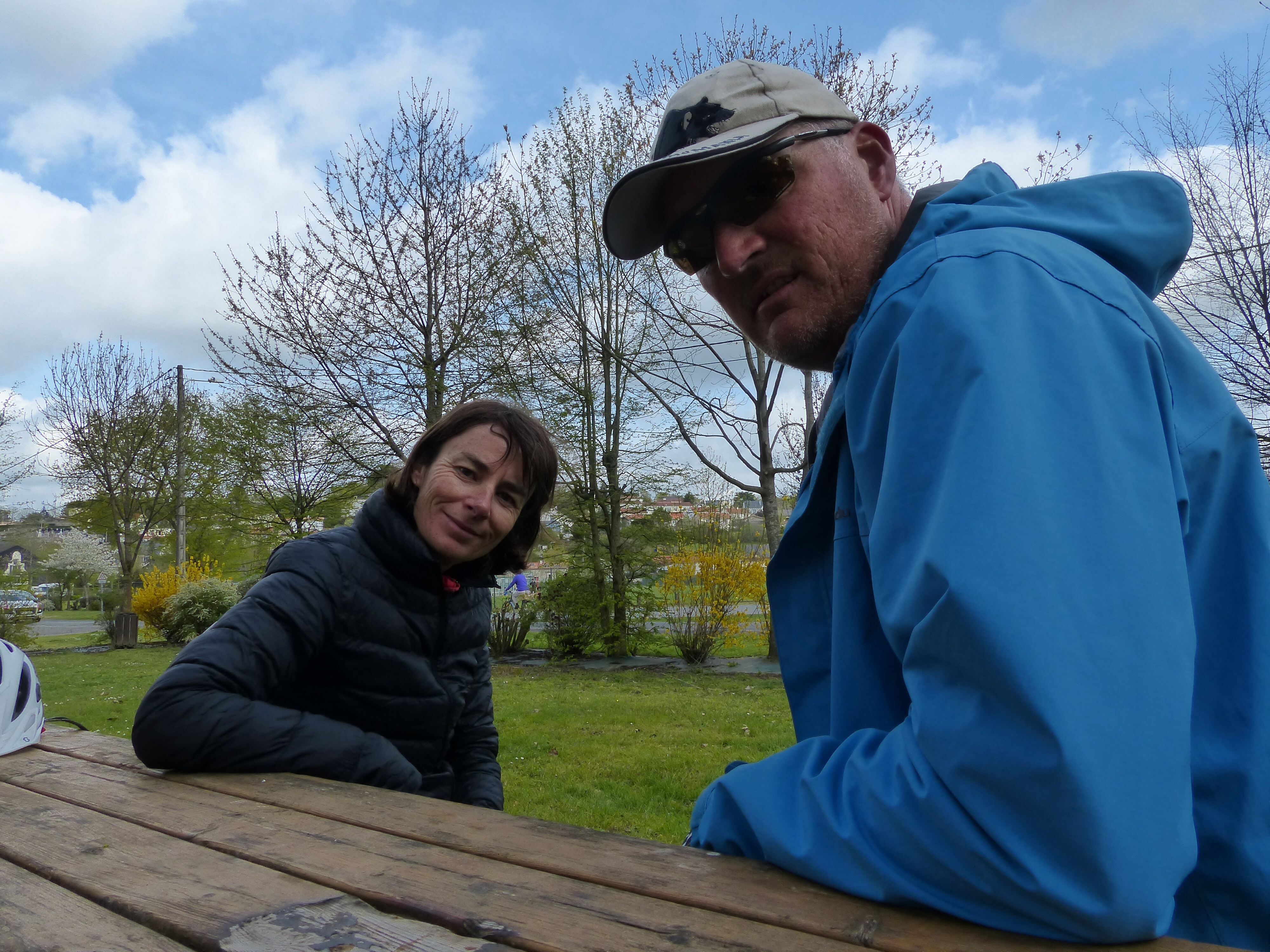 Elevenses over and our Saturday morning sports fixtures having been viewed, we continued pedalling towards our destination of Ancenis. The sky turned a darker shade of grey, the wind became stronger and the chill in the air became colder. We rode up to the campsite to discover the office didn’t open for another three hours. We tossed around the idea of riding on, but then decided to stay put and kill some time, because we had chosen this location as a two-nighter so we could have a Sunday lazy rest day. We rode around for a while, wheeled the bikes into the entrance of a shopping centre, thinking we would just stand near the entrance for a while to warm up and get out of the cold, but were soon approached by a very nice, polite security guard who informed us that the bikes couldn’t stay. Even though not a word of English was spoken, we got the idea! Oh well, it was worth a try, so back out into the wind and cold we went and found a Subway for Steve’s lunch. We sat outside while lunch was munched and then decided to head back to the campsite to wait. With the weather as cold as it was and with us and our belongings already being damp from the night of camping in the rain, we’d pretty much decided to opt for a cabin, rather than pitch the tent again.