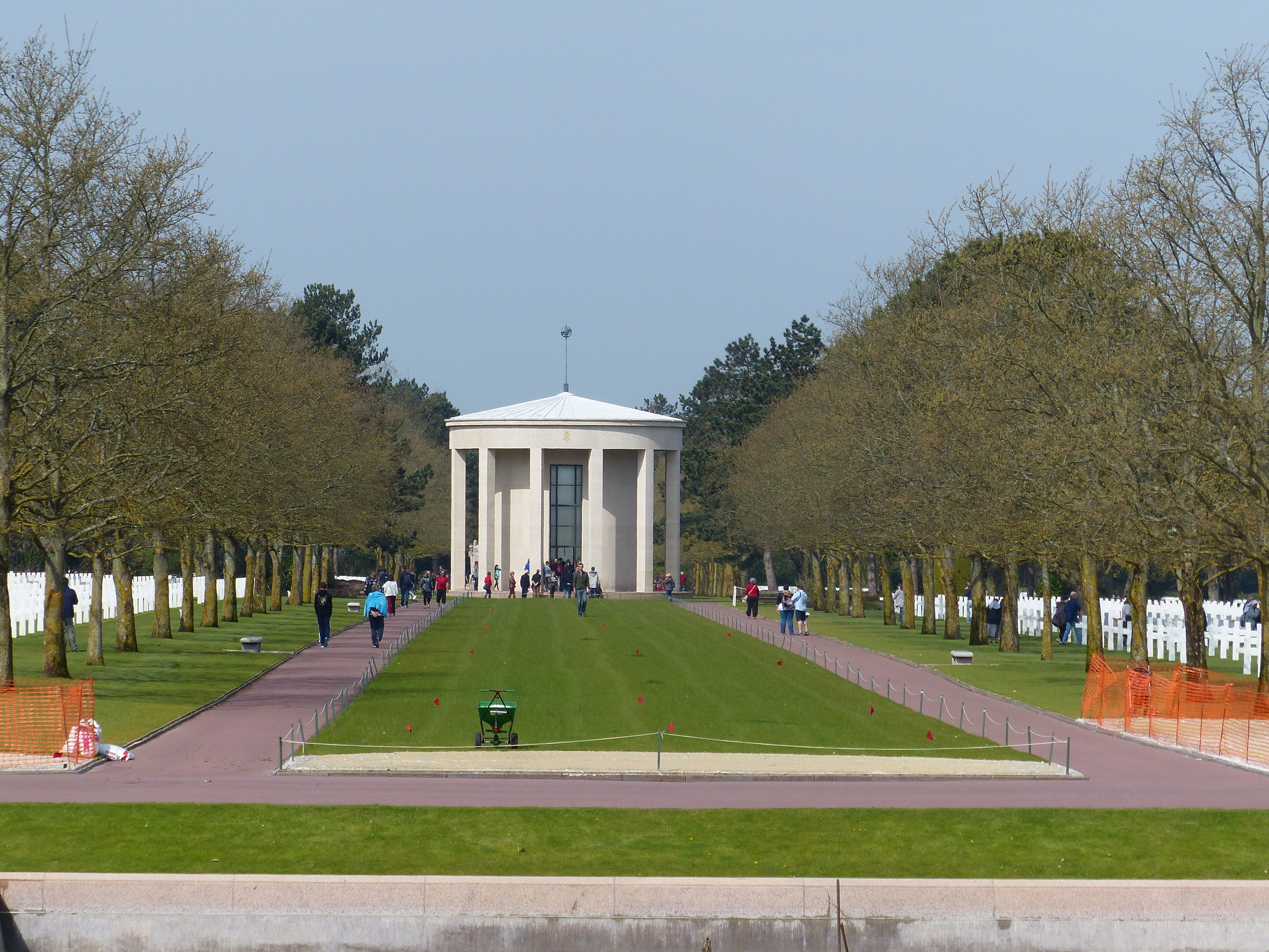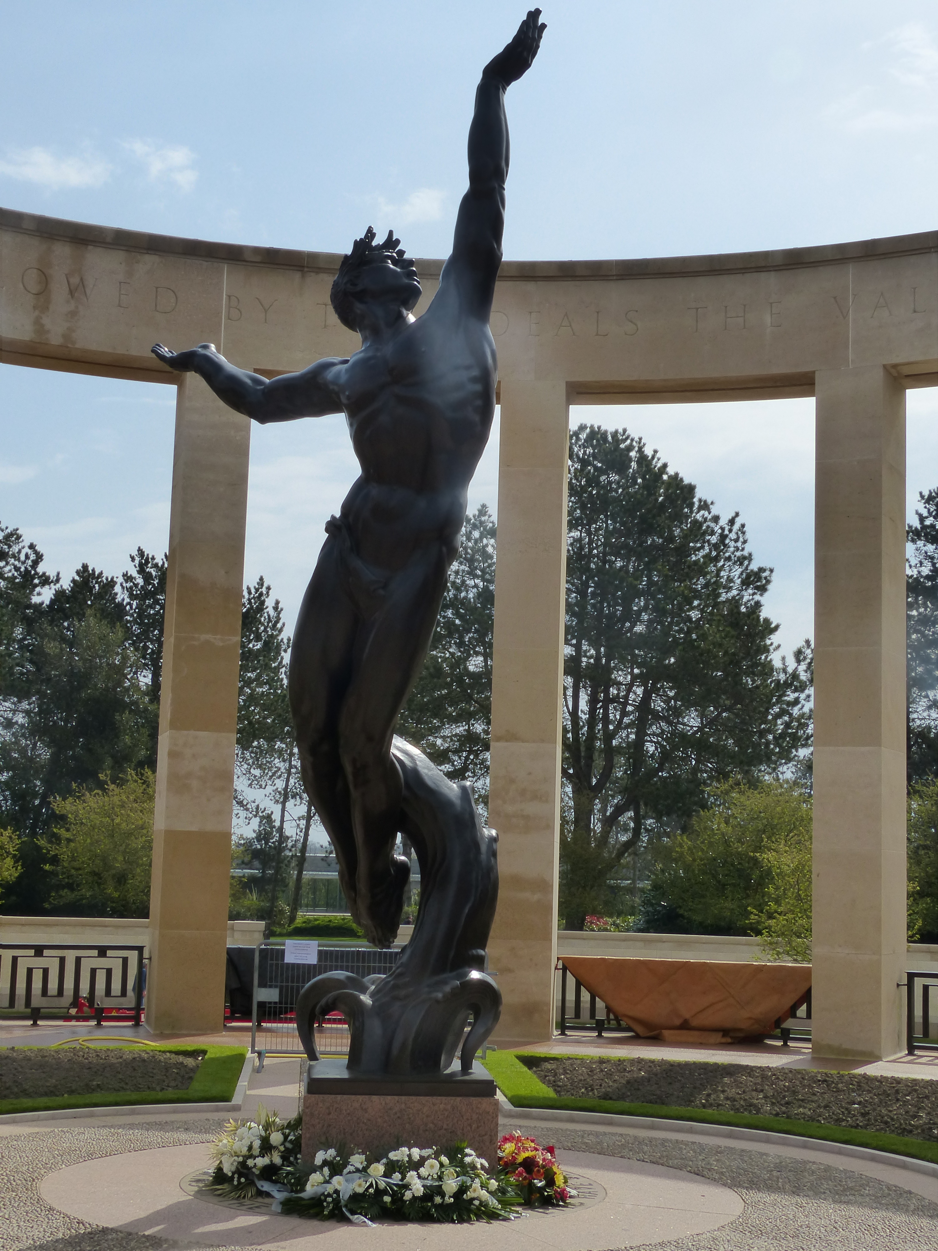 We went on to the American Cemetery at Omaha Beach. First stop was the visitors’ centre, which was a little like a museum, with information, films and artefacts from the D-Day landings at that site. Again, I enjoyed slowly walking around the exhibits and reading, taking in as much information as my small brain would hold. We then walked outside to the memorial, a large statute and reflecting pool (which was unfortunately empty) and long sweeping walls, with all the names of the soldiers who had died, engraved along them.