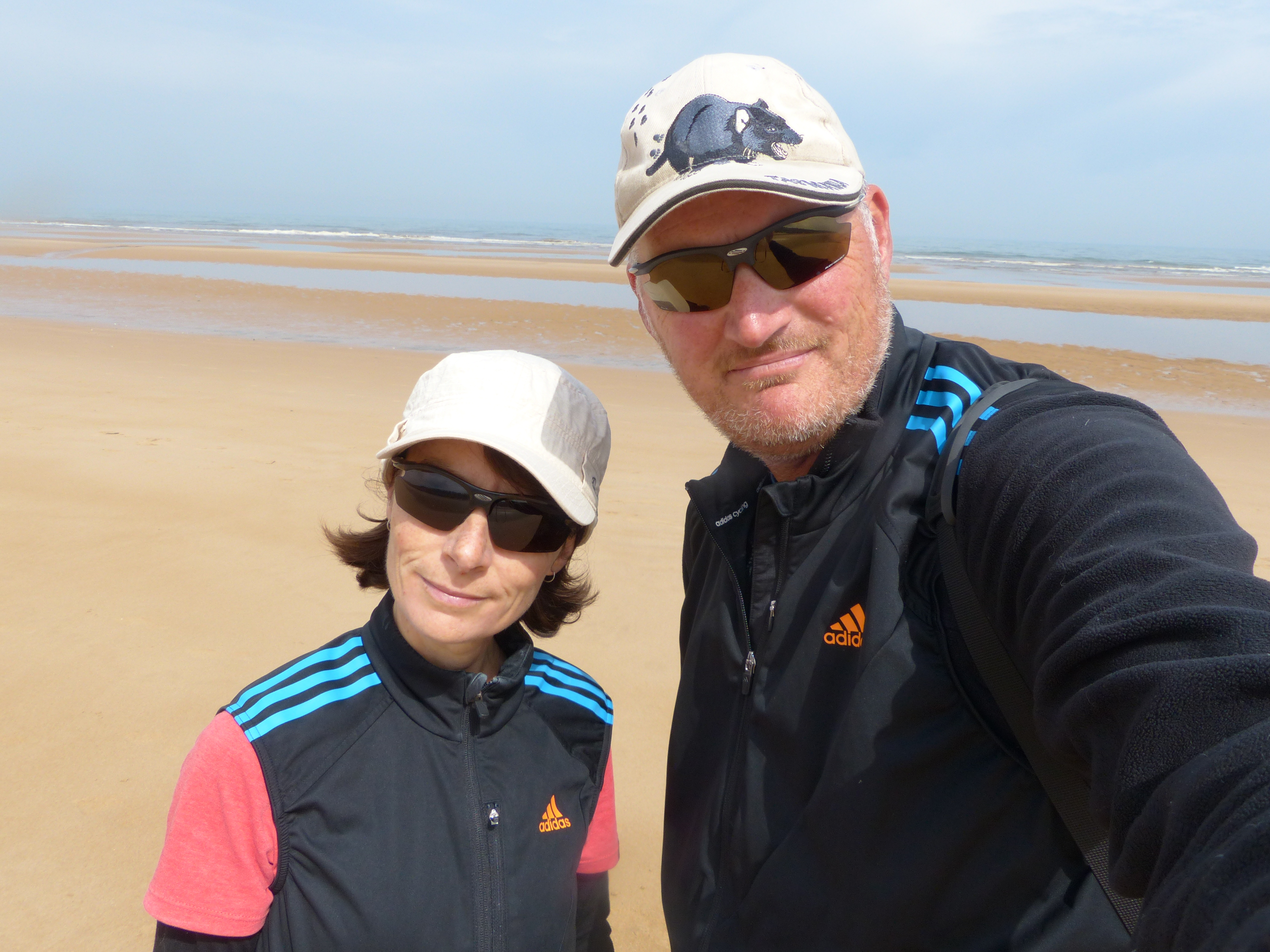 Today we left base camp at Arromanches for a day trip ride up the coast to Omaha Beach. Before I start talking about the day though, I’ll just mention our base camp. We’re staying at a municipal campsite because it was the only one open in the area. Municipal campsites are about as basic as it gets, but this one is terrific. We have a nice grassy pitch, albeit not very flat, but that just means we have to sleep facing uphill to stop the blood rushing to our heads, but that’s OK. The showers are hot and the toilets have toilet paper supplied! This is a rarity, so we always give a place a big tick when they provide loo paper, because it saves having to fumble around in the dark to find our own supplies when a late-night trip to the facilities is required. This place also has, for the first time since being in France, his ’n her bathrooms! They are clearly signed as separate, rather than shared unisex bathrooms, but here’s the thing…as I was in the WC last night, washing my hands, who should walk in but a gent! Poor fella was probably so used to shared bathrooms that he didn’t even notice the sign and just wandered into the nearest available loo! Oh well, I just gave him a smile and a “Bonjour” and left him to it. So far, my gentleman bathroom acquaintances have been somewhat lacking in the lessons of door usage and sign reading, but not to worry. It’s all very amusing!