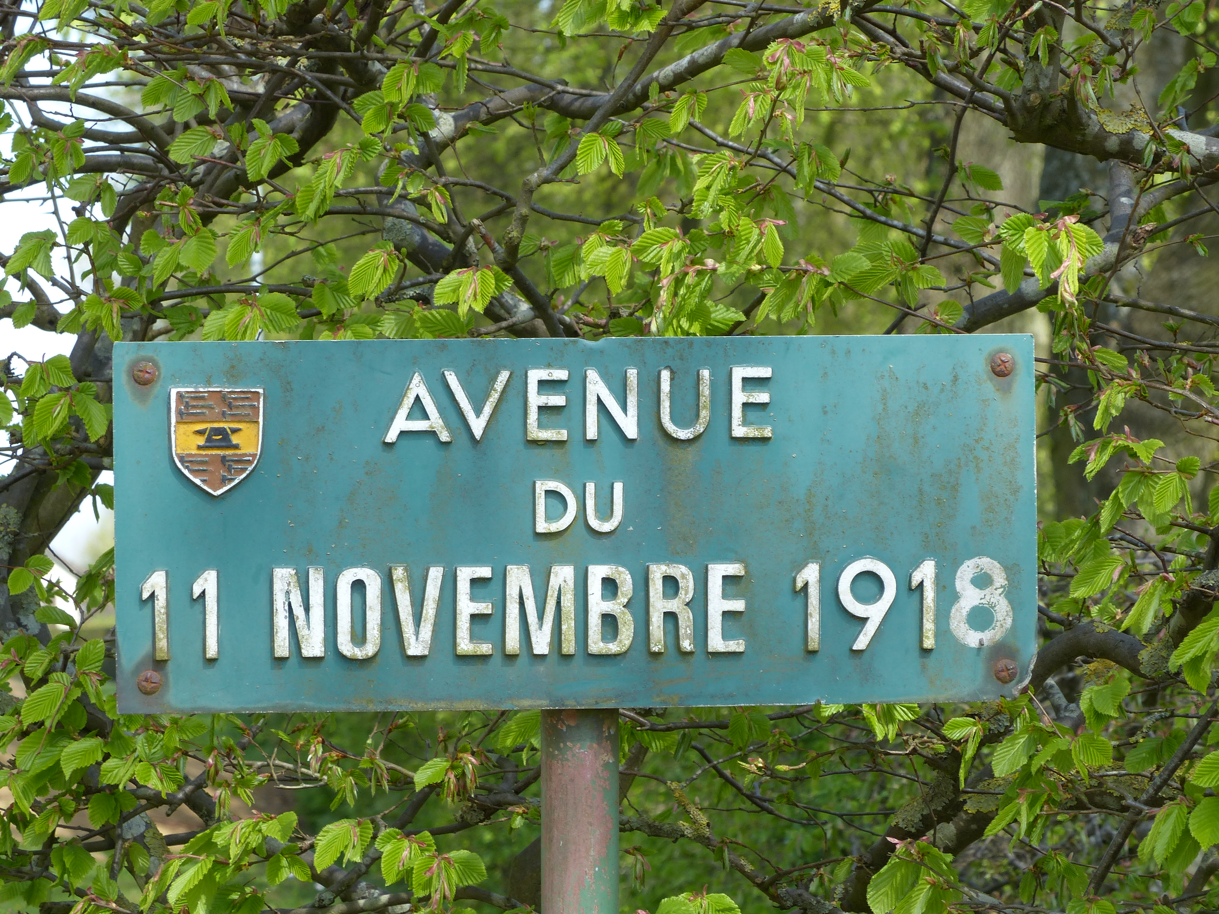 As we were walking along a man spoke to Steve, in French, as if to ask something. Steve said, “Je ne parlez pas Francais,” to which the man laughed and said something like, “parlez vous Francais” as if to say “but you just did speak French!”, to which we all gave a chuckle and he gave us a wave and off we went. Such lovely friendly people we keep meeting! We walked on along a bike path, through an avenue of trees again and stopped to sit in the park, just to enjoy the sun again and watch the ducks on the lake. Very tranquil. As we’ve walked and ridden around, we’ve started to see more references to WWI.