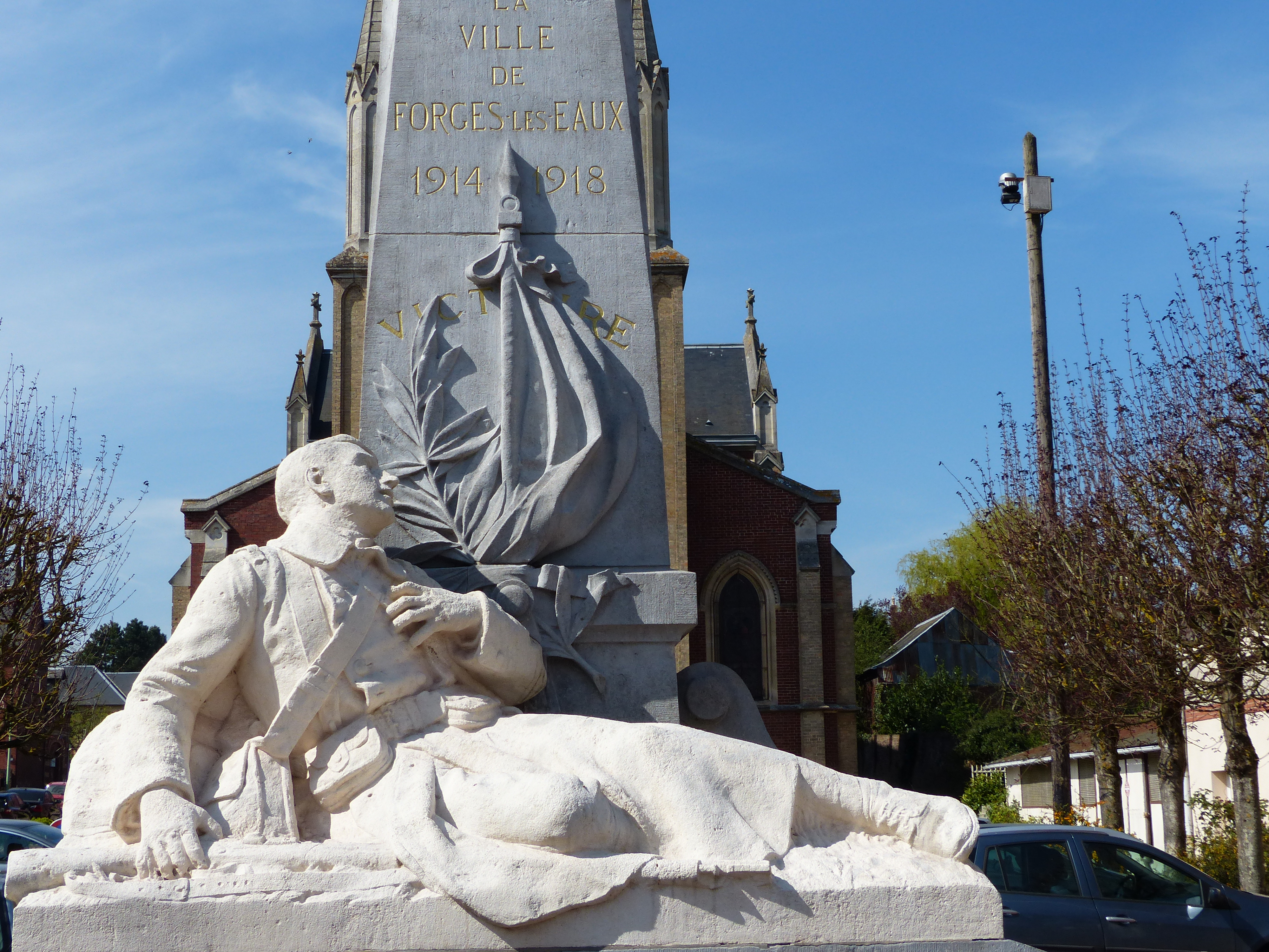 We rode into the small town of Buchy and it was obviously Monday market day because the streets were lined with stalls and it was bustling with people with their baskets and stopping to chat and lots of cheek to cheek kissing in greeting happening. There was also a WWI cenotaph with quite a moving image as its statue.
