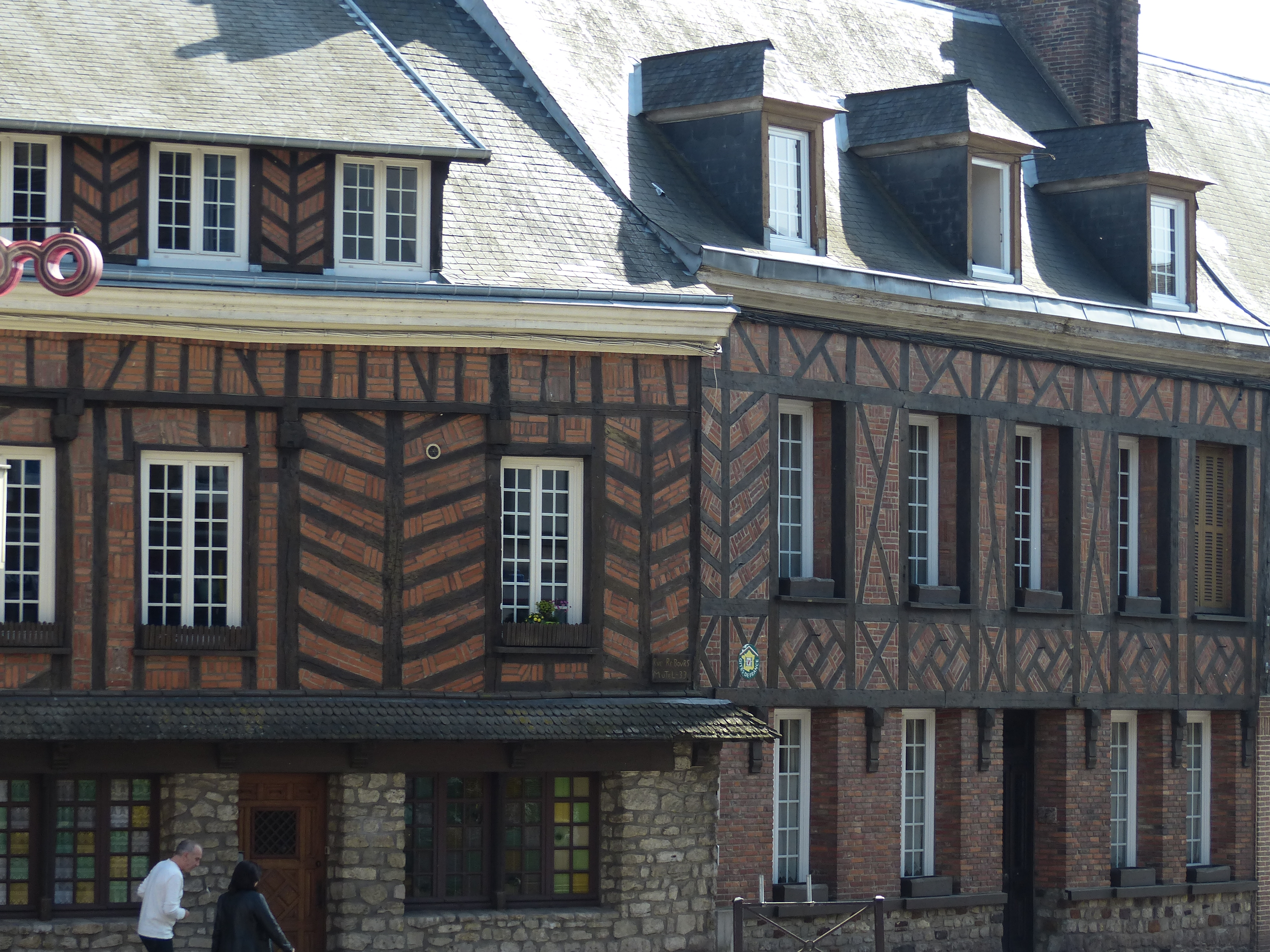 I stood with the bikes while Steve went off to get his pastries and something for elevenses and I watched the market go on around me. The cheese merchant was doing a roaring trade, cutting into his wheels of cheese and ladling huge scoops of creme fraiche into containers for his customers. Some of the market stalls were under cover in roofed shelters and these date back to the sixteenth century!