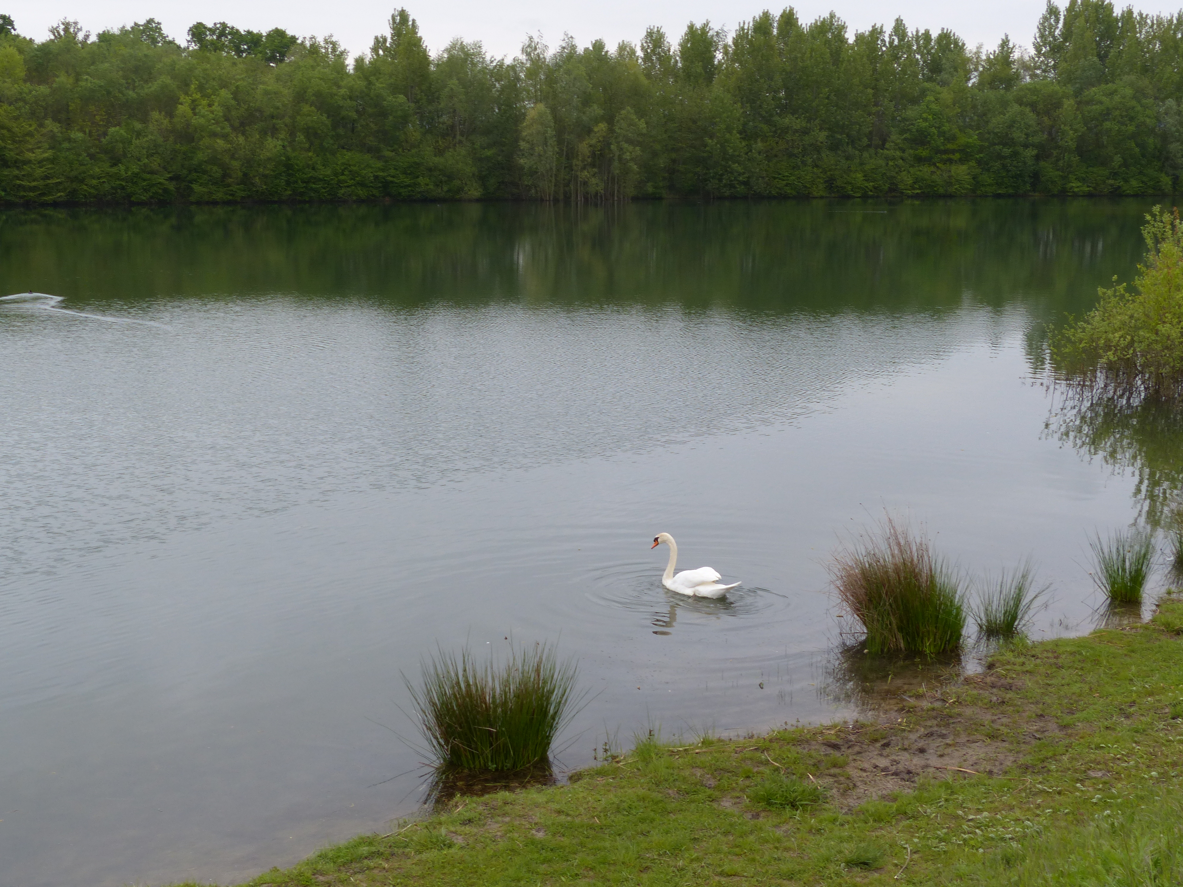 Most of the ride was planned on a cycle route and we left Compiegne along a path by the river, before turning onto a path alongside farmland. Despite the grey and foreboding sky, it was a lovely place to ride, passing by the river scenes with all the fishermen out along the riverbanks and all the greens and yellows of the rural scenes. We passed by a lake and stopped to watch a white swan paddling serenely by the bank. As we were there, another swan came gliding towards the lake, preparing to land. It took a wide arc, lined up its landing, broad wings outstretched and then, with a graceful glide and swiiiiiisssshhhh, it came to a graceful stop on the lake. Well…that serene looking swan that had been paddling by the riverbank soon lost all its serenity because it was not having that other swan on its patch! It started flapping furiously, getting up speed and it became a white torpedo, heading straight for the interloper! Its feet paddled wildly on top of the water, running along the top of the lake, flapping flat out, trying to get some lift. The visitor saw this torpedo coming in its direction and made a swift u-turn and began its frantic take-off manoeuvres…