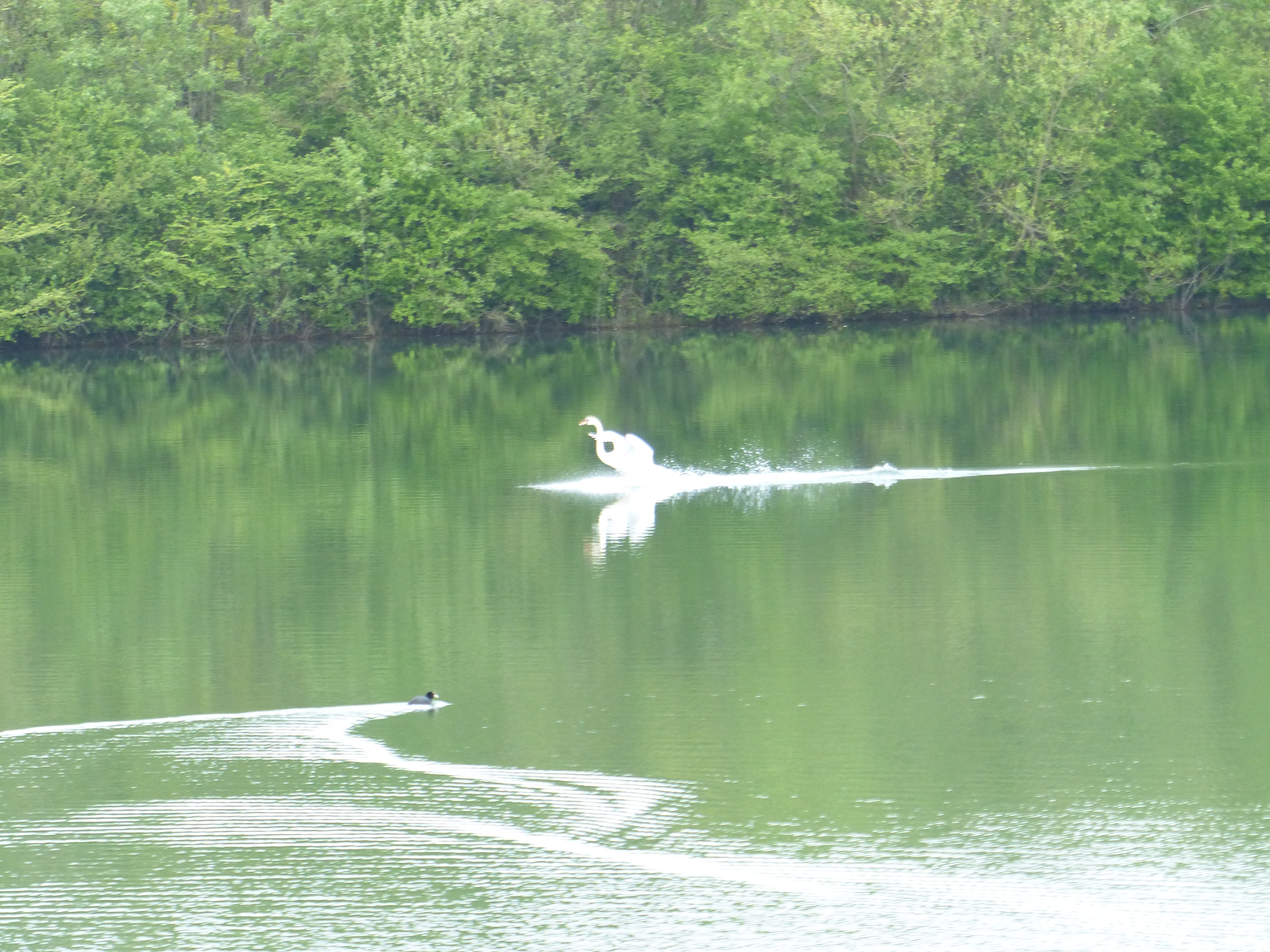 And just like that we watched Wal put the run to Jezza in a flapping and splashing of white with biceps and pecs fully flexed and pumping those big bodies into the air. Jezza was soon a speck in the distance and he’d been no match for the wrath of Wal, who soon went back to impersonating a quiet, serene and placid swan, gracefully paddling along the edges of the lake. It was an entertaining swannish soap opera to have watched!