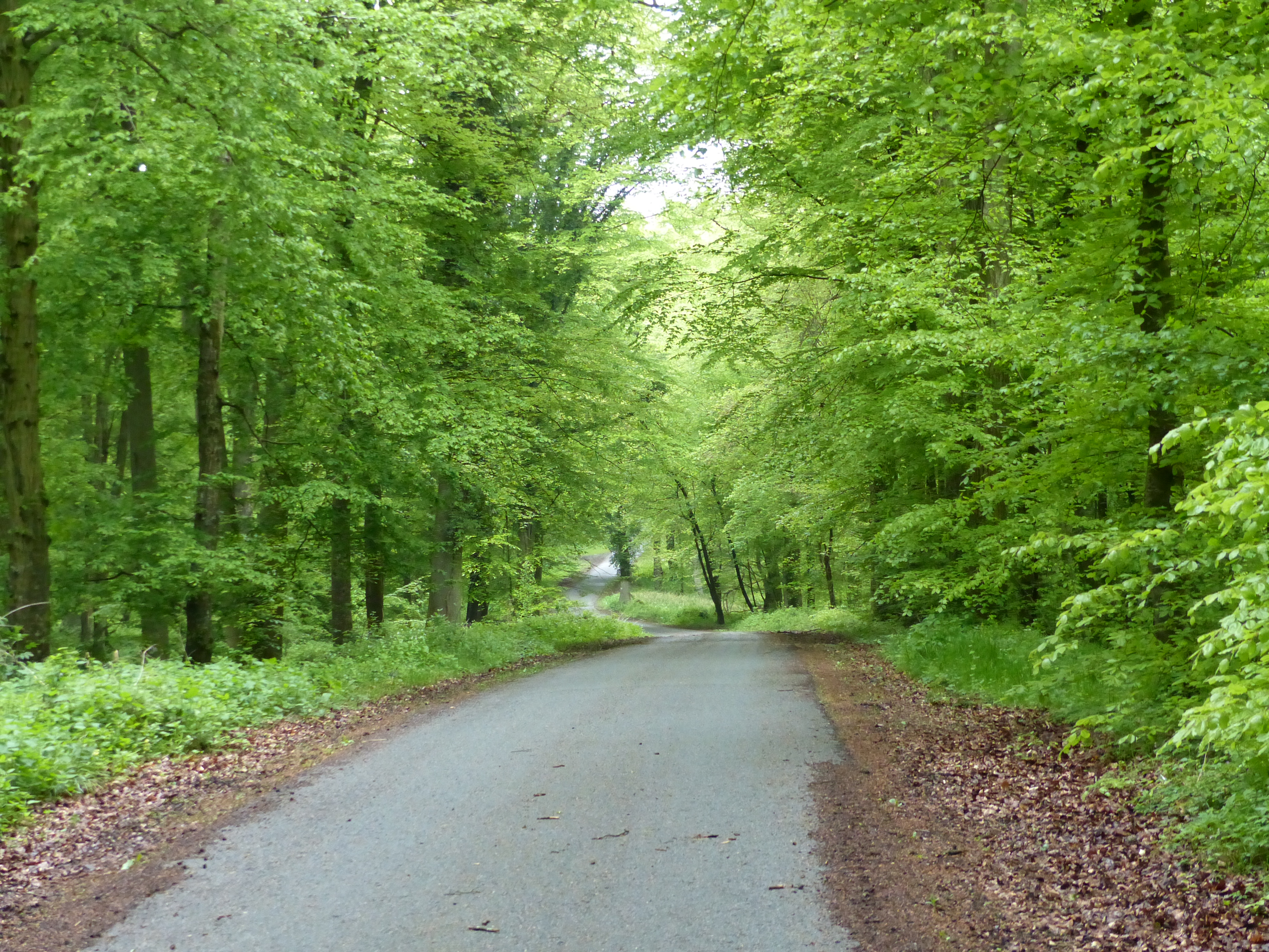 The path soon took us through a forest, which was absolutely beautiful. It also gave us some hills to contend with, but that was a small price to pay for riding along a path with the quiet forest, in all it’s green glory, on either side of us. It was just magic. The forest had multiple paths running through it and we saw a couple of runners, a few mountain bikers and evidence of past horse riders. As we slogged up one hill, a pair of cyclists came whizzing down and the woman gave us a cheer, as we climbed past her exuberant downhill rush.