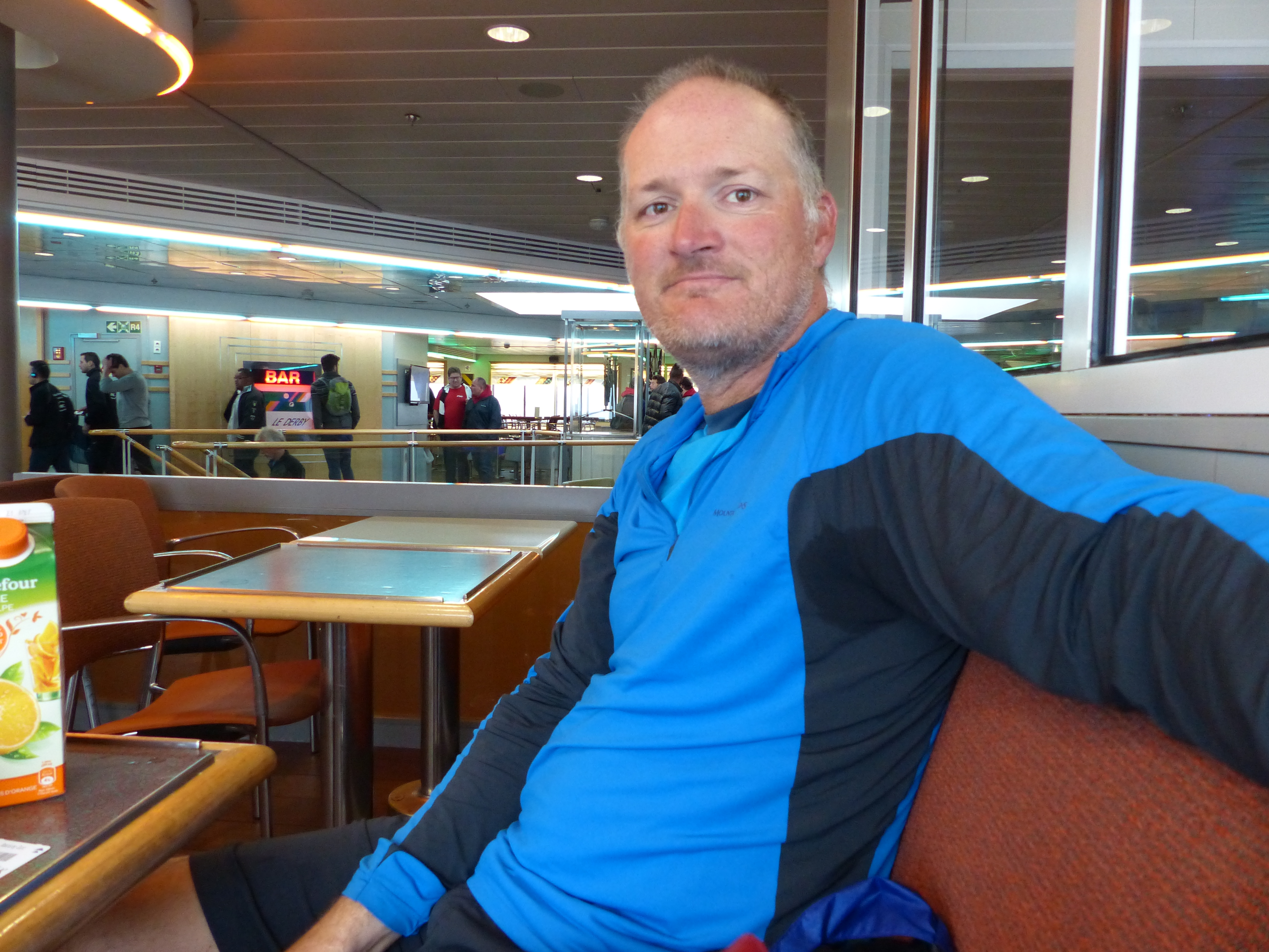 We returned to our bikes and got ready to disembark into the wet and woolly day. We pushed the bikes off with the cars, wheeled down the ramp and pulled up at the passport control booth where the nice man gave us a friendly welcome and asked if we had been given arrival forms to fill in. When we said we hadn’t, he said we should have been, so instead he just asked us some questions. Why are you here? (cycle touring around Europe, we’ve been on the road for three months) How long are you staying? (3 or 4 months) Where did you start your trip? (Portugal) “Portugal!” he exclaimed. Do you have an end date for the trip? (we have to be back at work in February next year) Oh, what do you do for work? (“I’m the principal of a school,” said Steve, “and Heidi’s in education too.”) “Are you really, good on you,” he said, with the tone of voice someone might use if you said you cleaned sewerage tunnels for a living – the tone that is a mix of admiration for doing an important job, combined with a tone of ‘I’m glad it’s you and not me.’ The nice man then bade us a friendly farewell and hoped we enjoyed our trip. As we cycled away I heard him turn to the fella beside him in the booth and say, “Cycle touring! Started in Portugal and they’ve been going for three months!” So maybe there aren’t too many like us who pass by their window!