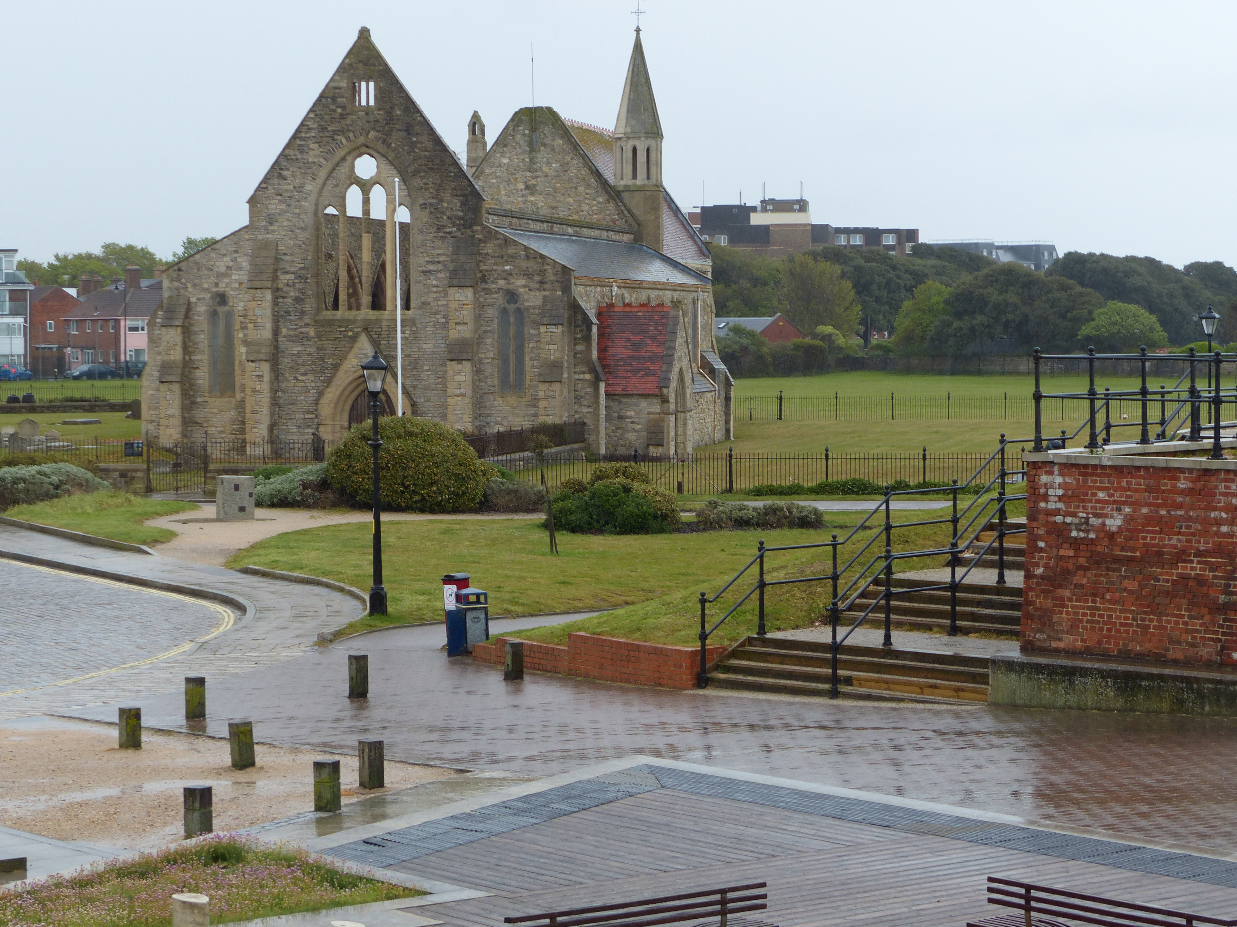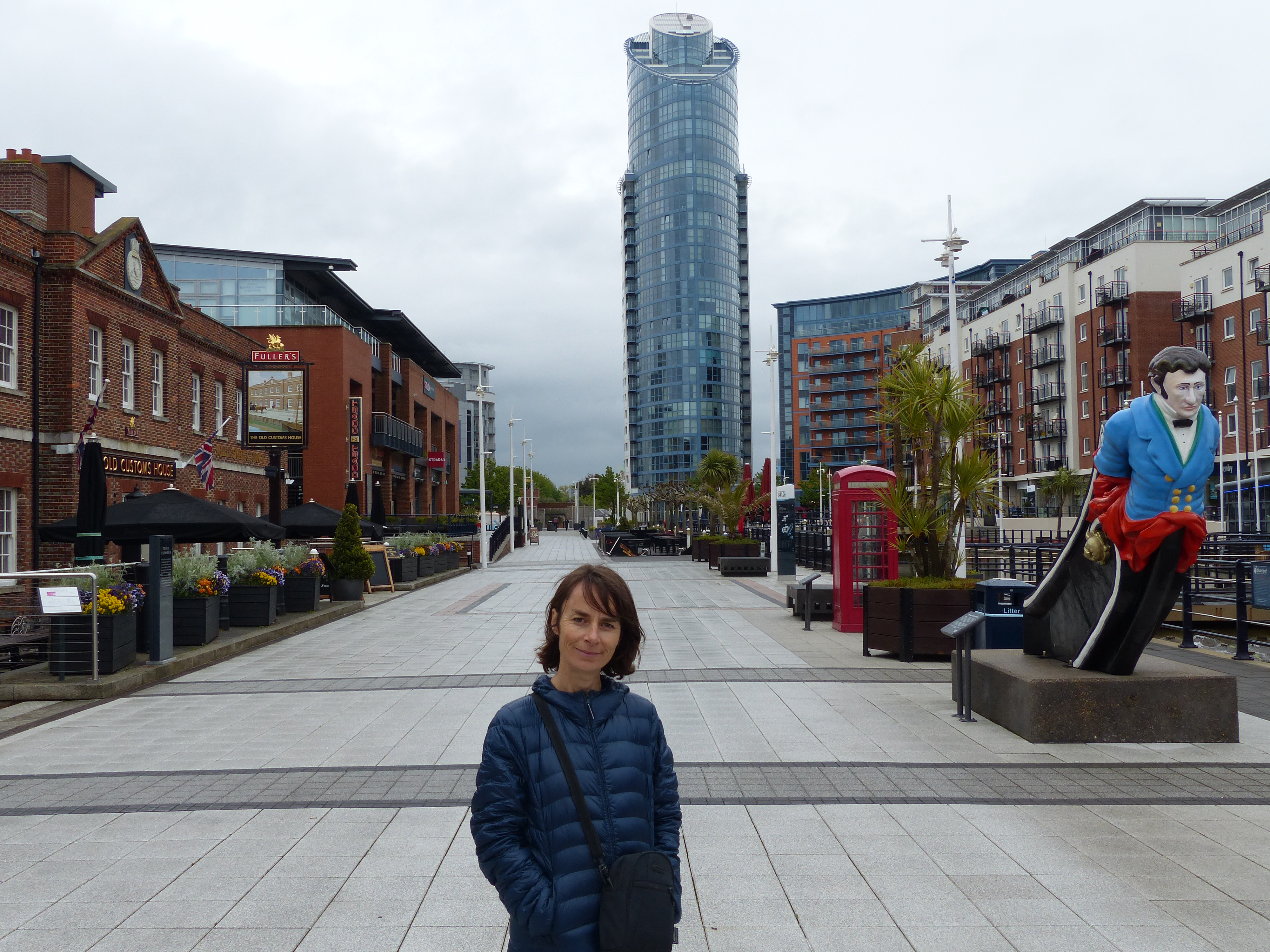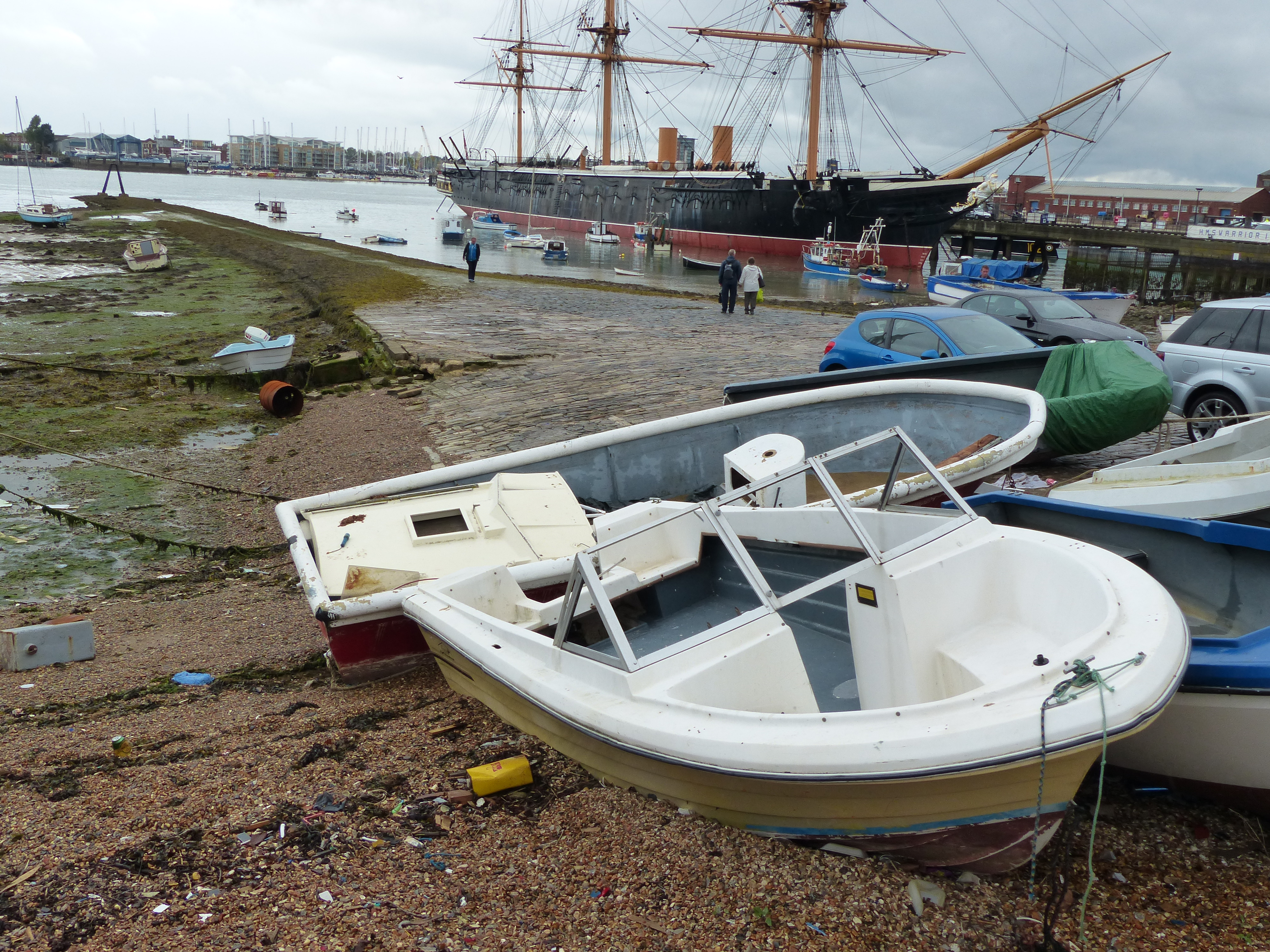 We headed out for some roaming to look around Portsmouth and once again found ourselves exploring a new place in the cold and pouring rain! Why oh why do we get this weather?! It seems the only times we’ve had nice weather (twice in three months) have been times we haven’t been riding and have had a stop in a city (Seville – we stopped riding and stayed a few days and had shorts and t-shirt weather and Paris – we stopped riding and stayed for few days and had shorts and t-shirt weather!). Whenever we’re on the bikes or arriving in a new place for a short stop, we’ve had wind, rain or cold! Are the weather gremlins trying to send us a message?! Nonetheless, we wandered down to the harbour, strolled along the waterfront and into Old Portsmouth. We saw some lovely, “very English” houses and buildings and of course, the classic English pebble beach.