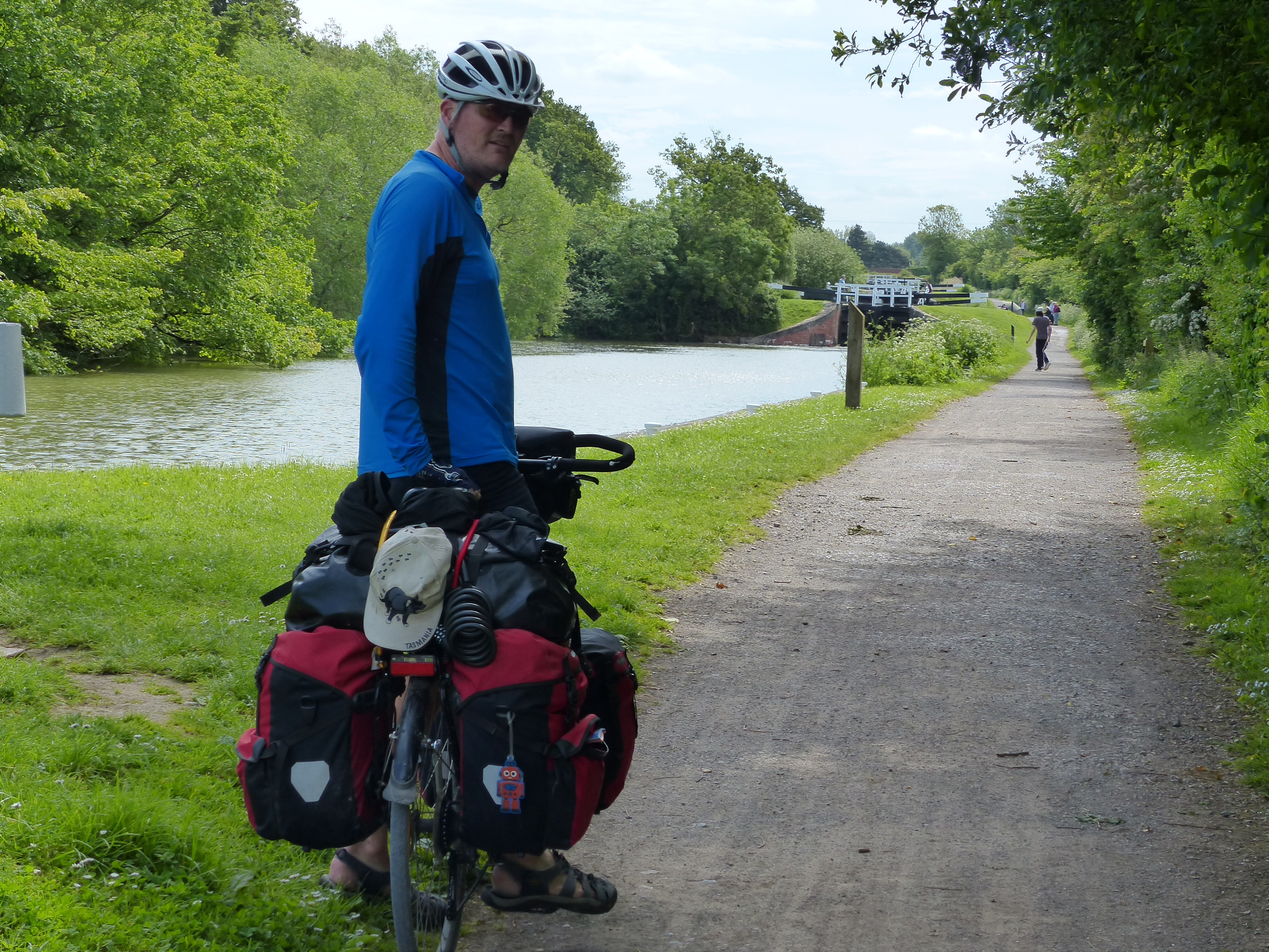 We rode through Devizes so we could see the famous Caen Hill Locks. They were built in 1810 and are a series of 16 locks going up Caen Hill. When the designer John Rennie came upon the hill, while the Kennet and Avon Canal was being developed, he designed this ingenious series of locks to enable boats to travel up the hill. Amazing! So clever! They are a Scheduled Ancient Monument and have the same level of protection as Stonehenge.