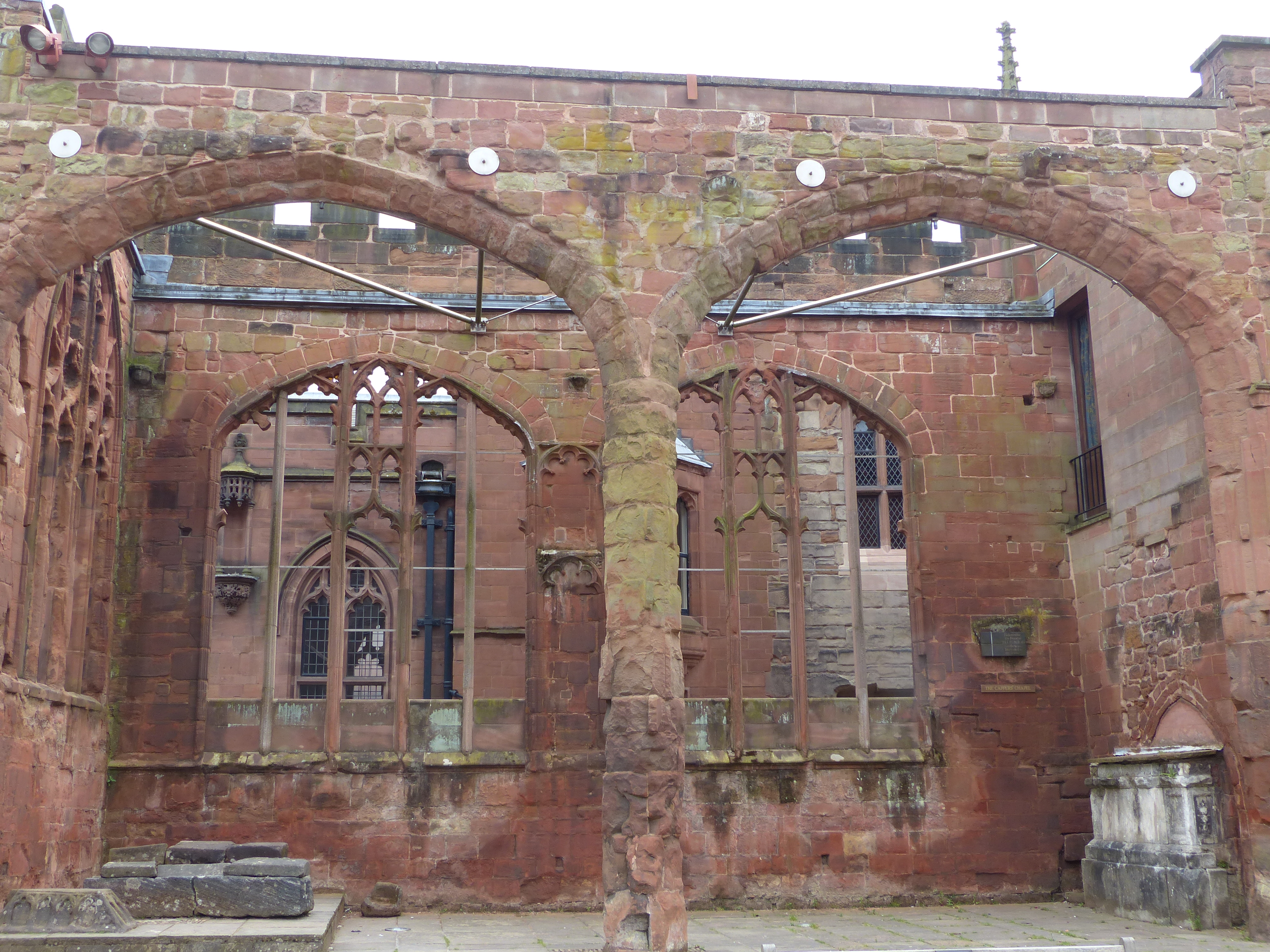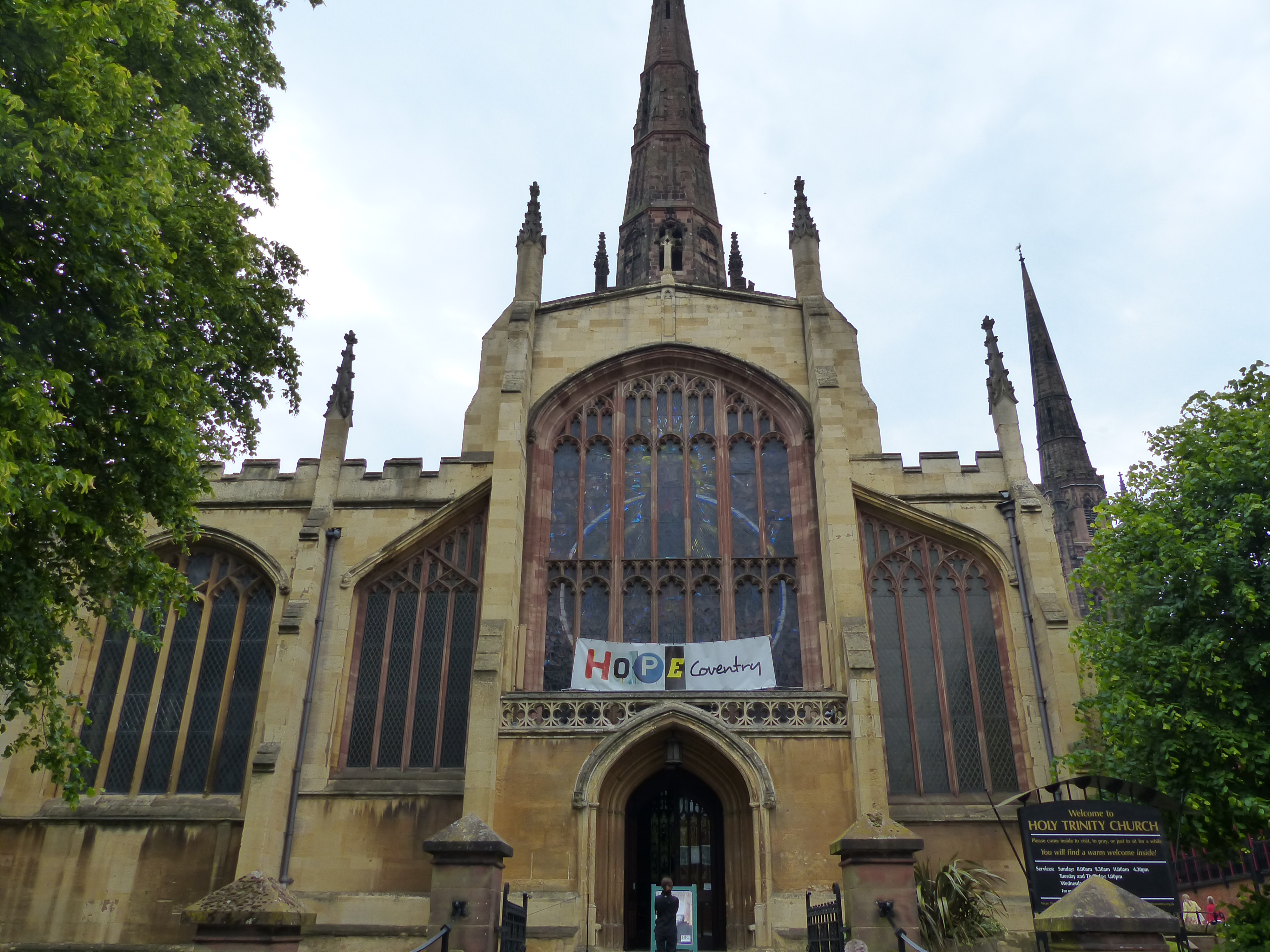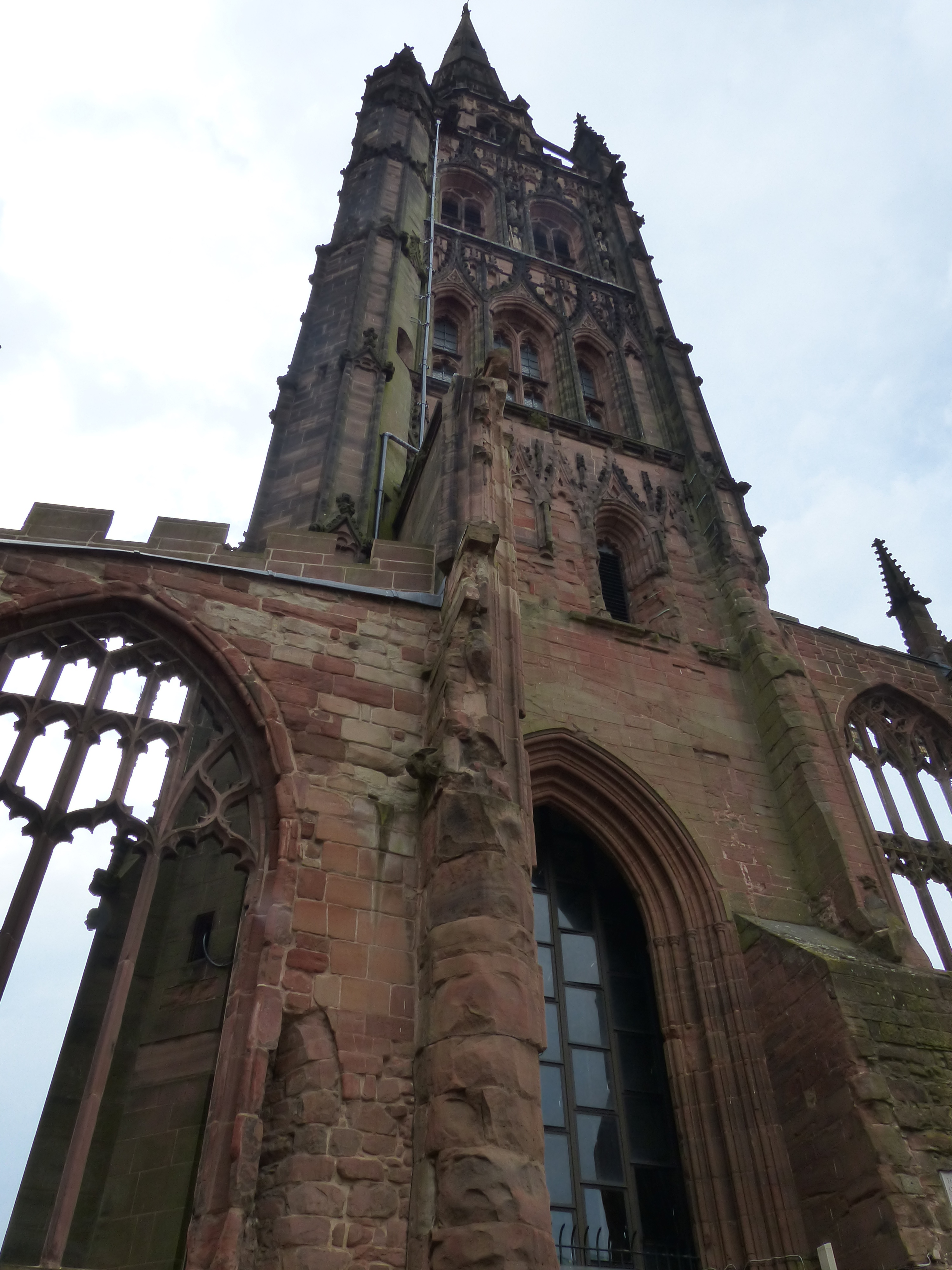 “I’ll tell you a story about Coventry…” he then told us about the church beside the cathedral and how it had survived the bombing during WWII while the cathedral had burned, because the vicar and the verger had stood on the church roof all night throwing the incendiary bombs off, as each one fell and they managed to save the church. “There’s a plaque in there if you go in.”