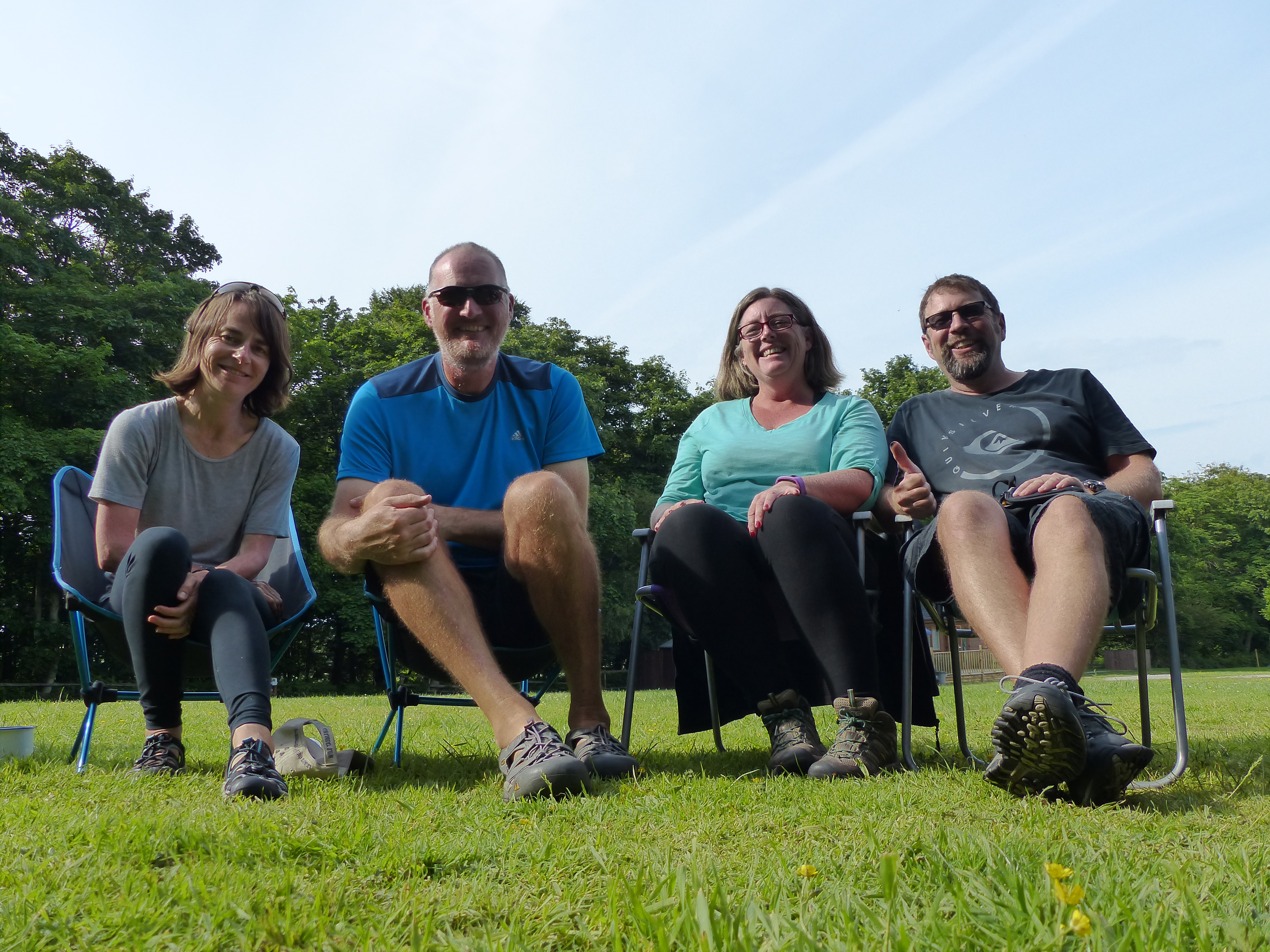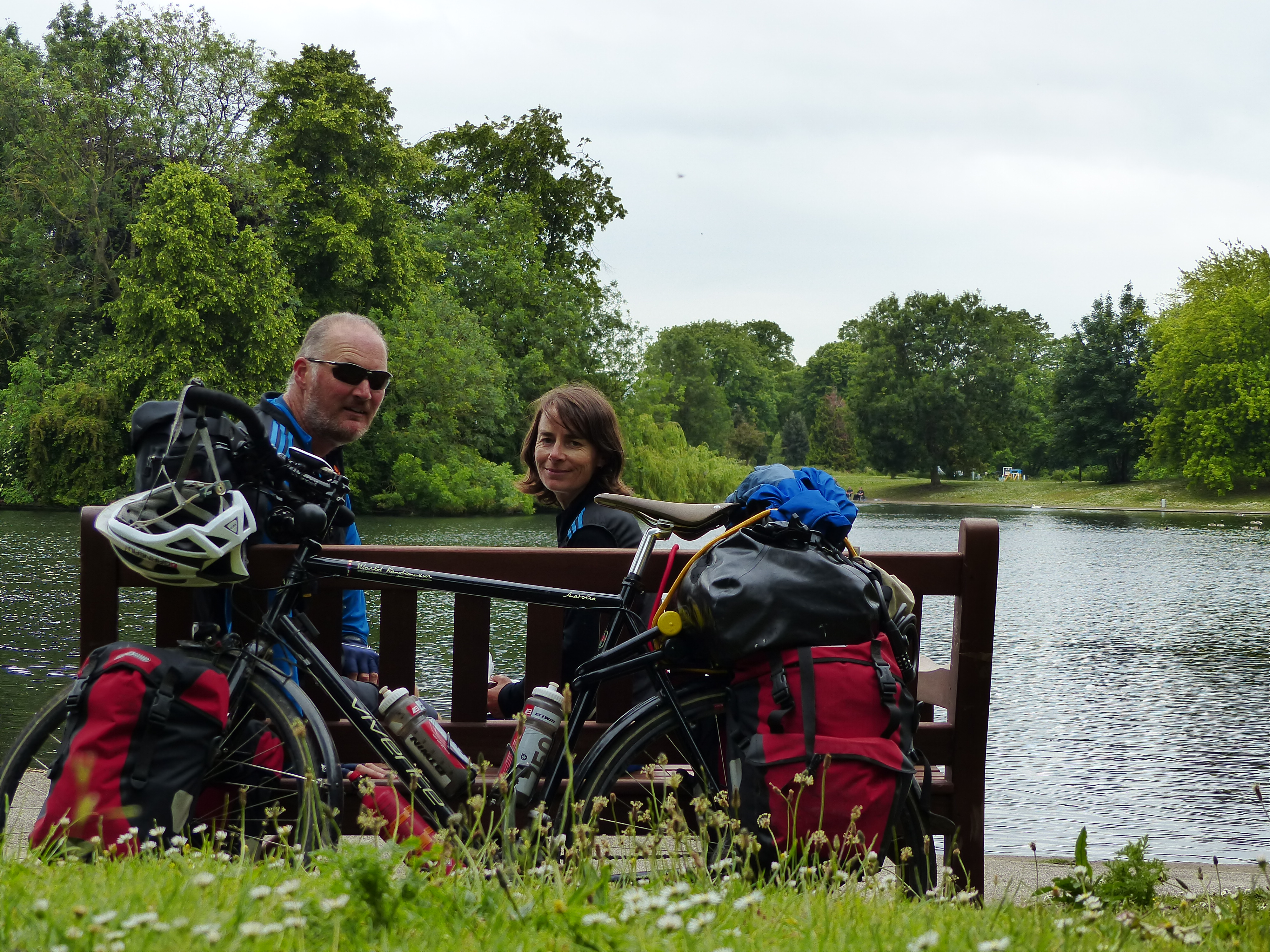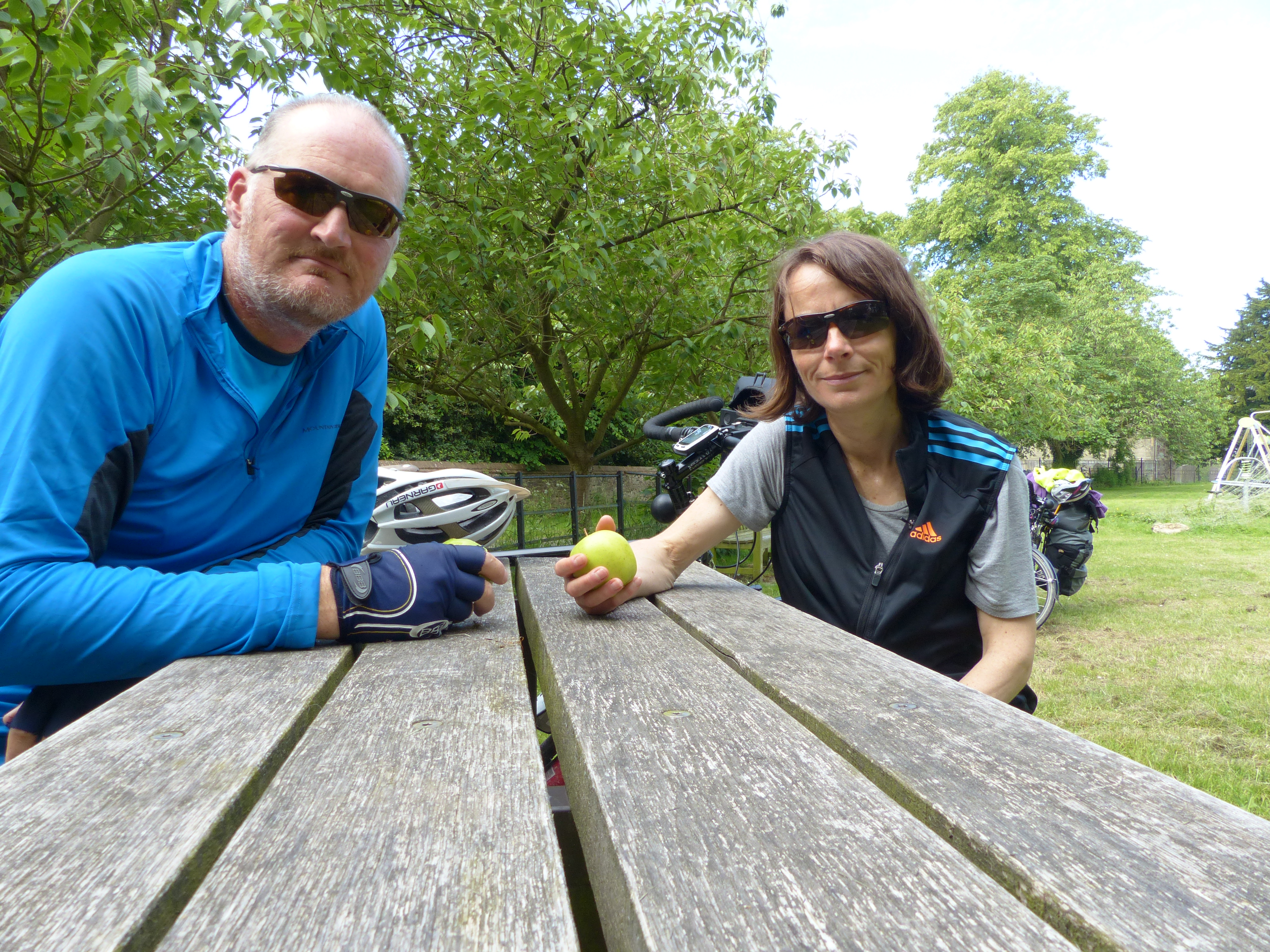We have been following the travels and adventures of a couple of fellow cycle tourists from Western Australia, Will and Jen, who also write a blog. They began their travels shortly after us and have been to many of the places in Europe that we have, and many more as well. They’d been in touch with Steve to say they were now in England and we were trying to coordinate a meeting. It turned out they were hiring a van in London and were going to drive up to meet us at the campsite! As we sat in the field having lunch, Steve was texting Will to let him know we’d arrived and then Steve quickly stood up with a smile and a wave, because…they had just pulled up! We greeted each other with hugs and hand shakes, and although we had never met before it was like a meeting of familiar faces and friends! Will and Jen pitched their tent beside us and we all settled in to get acquainted and chat about our travels. That’s where it felt just like a meeting of a support group for touring cyclists! The fact that we were four Australians and we were meeting in Melbourne, was all the more appropriate I thought!