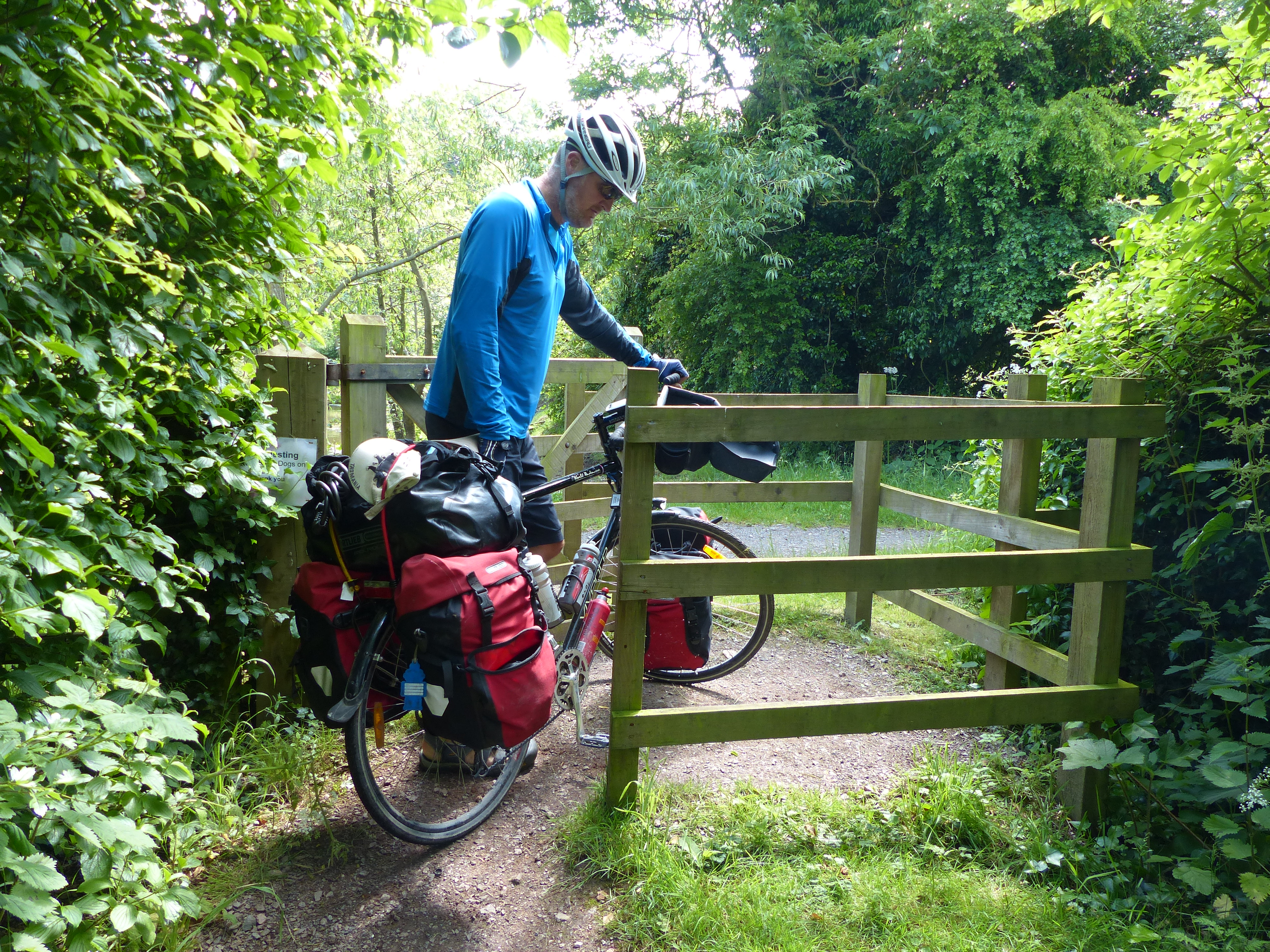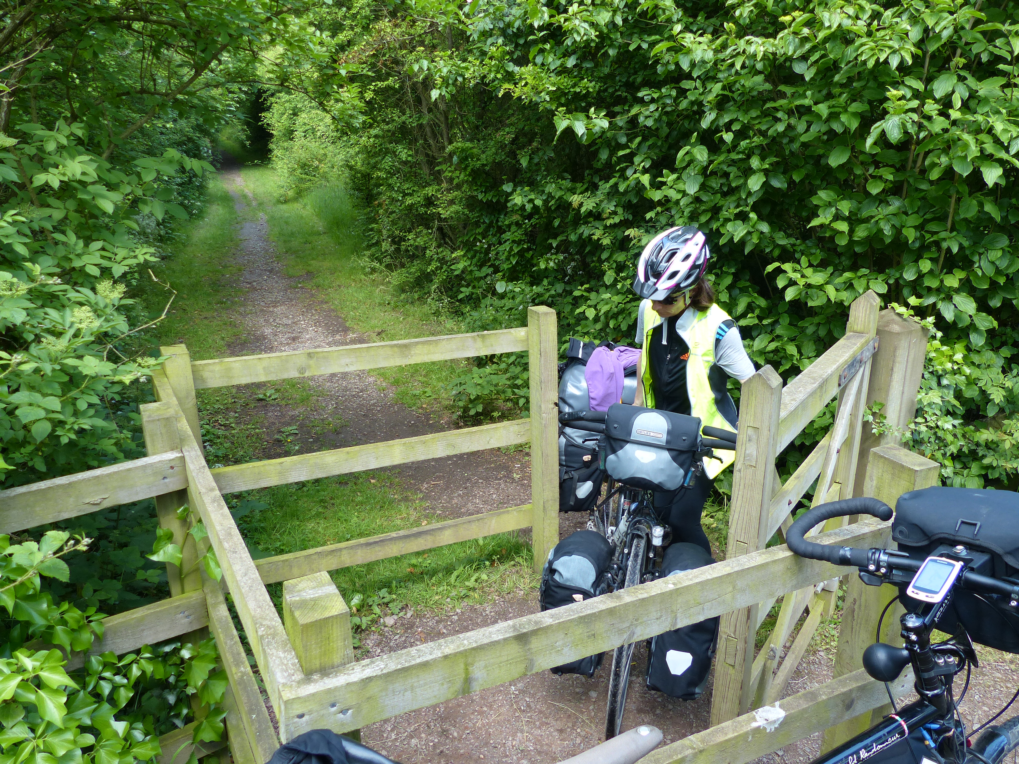 Off we went, pedalling along through little towns, then came to the much larger town of Coalville. We walked through the busy shopping area, where Steve found a bakery and I found a green grocer so we had some supplies for lunch and then we were off…busy town…we were outa there! On we pedalled along the country lanes. We came across a few of the barriers in the path again. At least the centre partition in these could be swung back and forth, which gave us a bit more room to manoeuvre, but it’s still hard yakka lifting the bike through that narrow space.