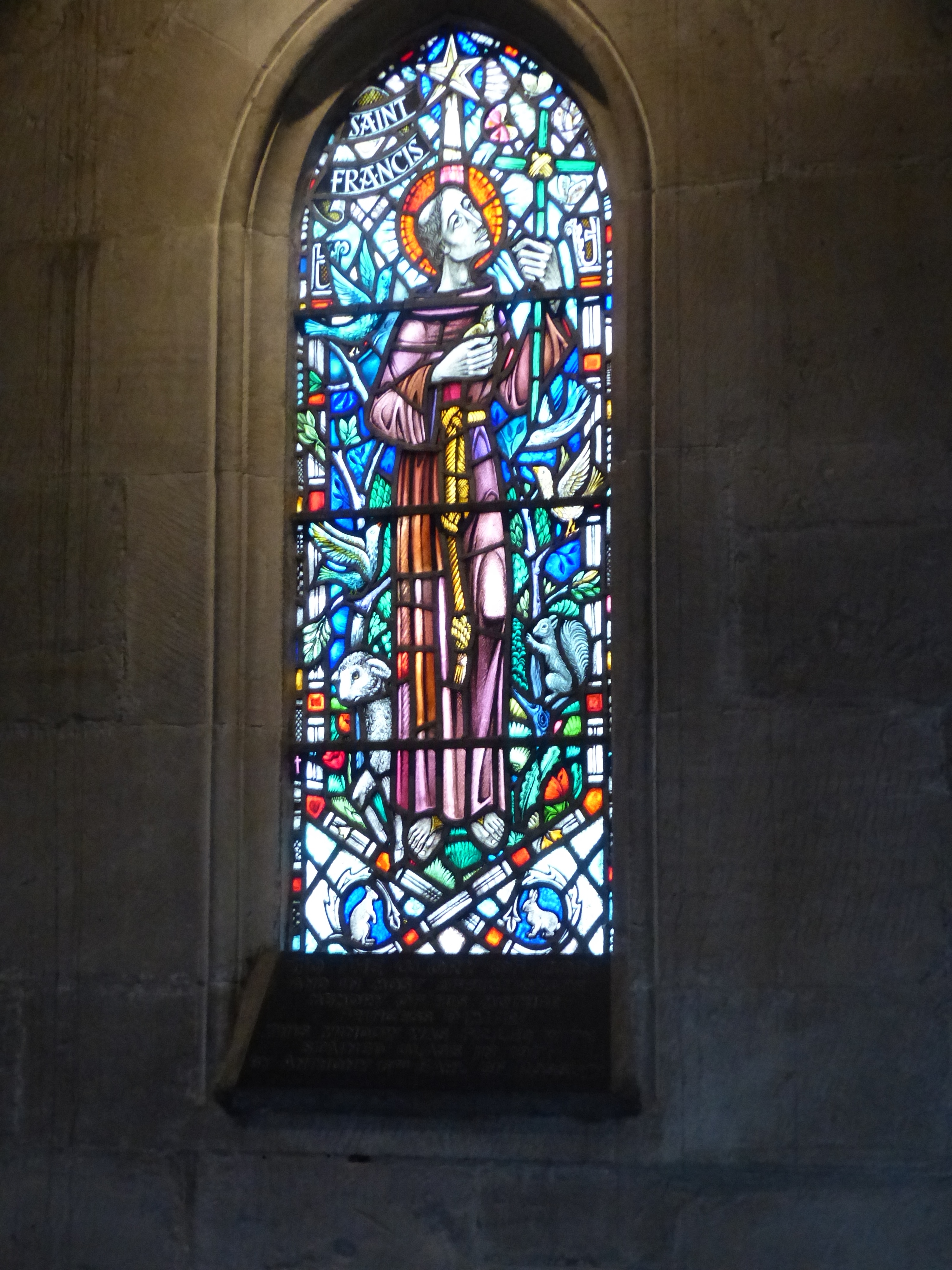 It was a beautiful old building with some quite stunning stone carvings inside. We weren’t allowed to take photos of them, but they were thought to tell all sorts of stories or to be in code and all sorts of things. As well as the carvings, I quite liked one of the stained glass windows, which was a picture of St Francis of Assisi, surrounded by animals and what do we have down in the bottom corner? A kangaroo! Fancy that! It was put there by the Sixth Earl of Rosslyn for his mother, who was an animal lover and also happened to have Australian roots. After strolling around the chapel, we set off for the return drive.