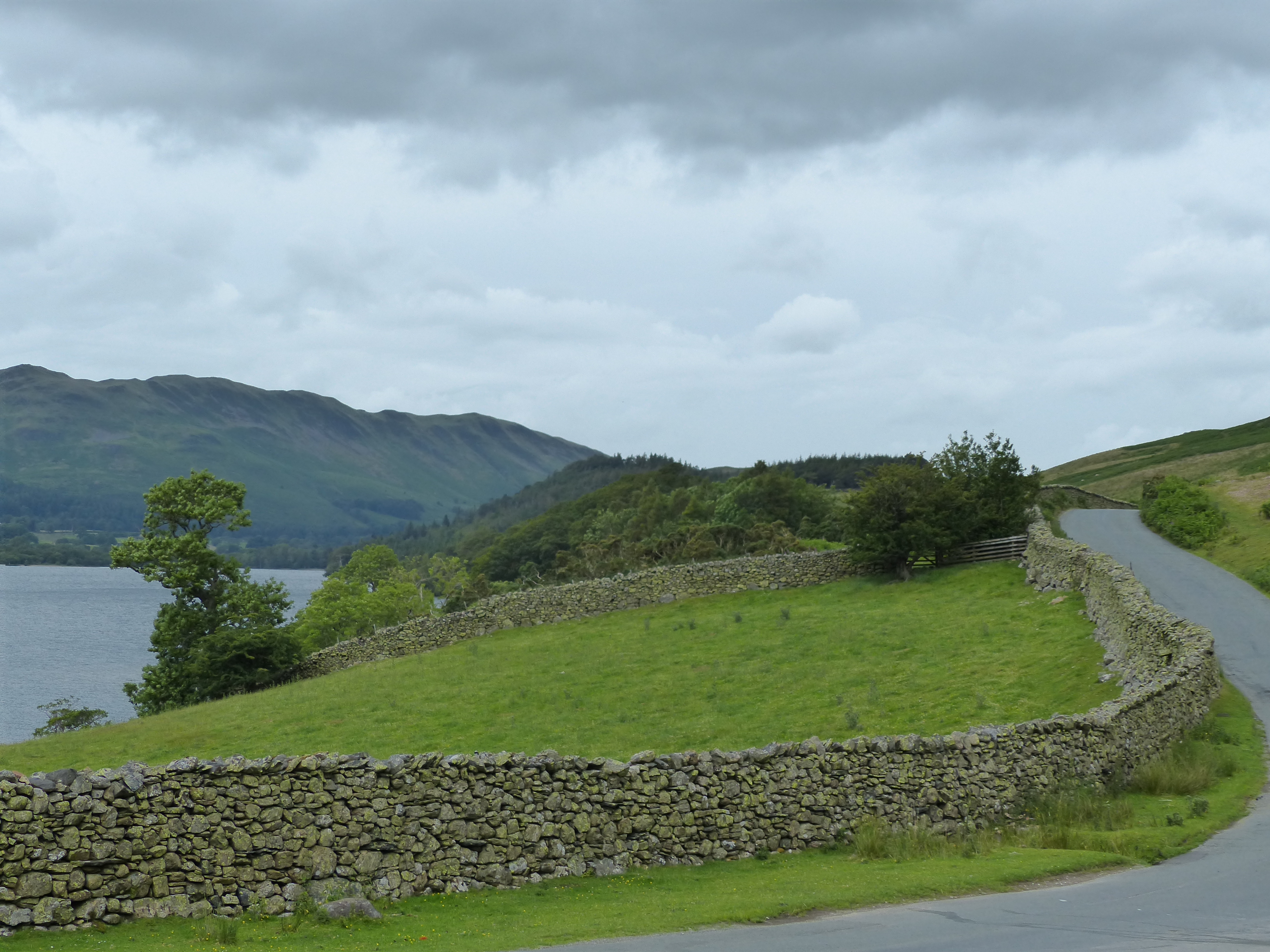 As we drove on, the scenery was nothing short of breathtaking. I exclaimed, “Wow!” many times. The huge hills, rising high above the lakes, the endless stone walls and free roaming sheep, it was simply magic. One thing that amazed me was the stone walls that not only lined the roads and ran through the paddocks but went up, up, up those enormous hills! Imagine having to climb those hills and build those walls on those slopes and imagine having to carry all those stones and slate up there in order to build it! Incredible!