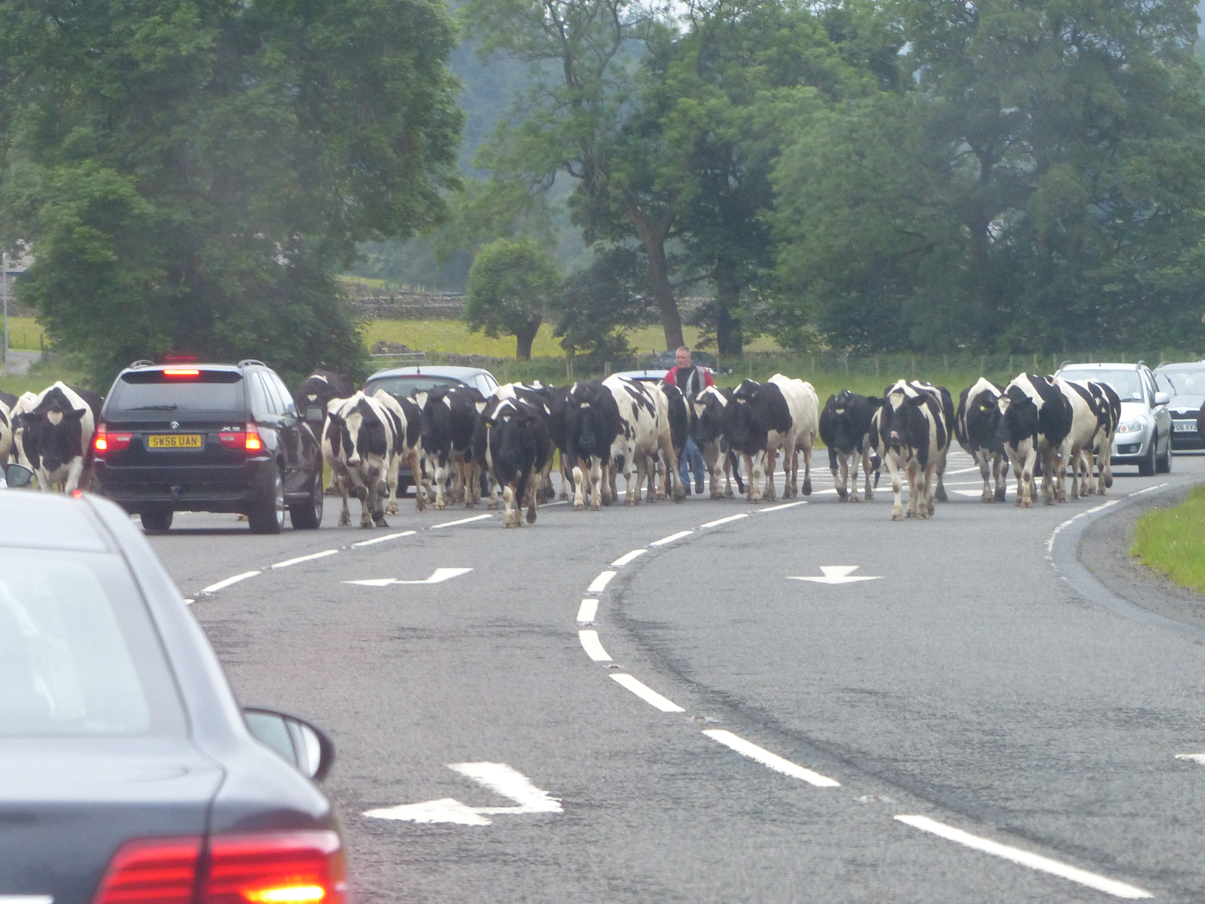 As we drove along, we saw another perfect country image – cows being herded down the main road. We have cows crossing roads at home, but they just nip across the road that’s a very quiet country lane, but these were happily strolling right down the middle of the busy main road. Stop! Cows strolling! Cows have priority! It looked terrific.