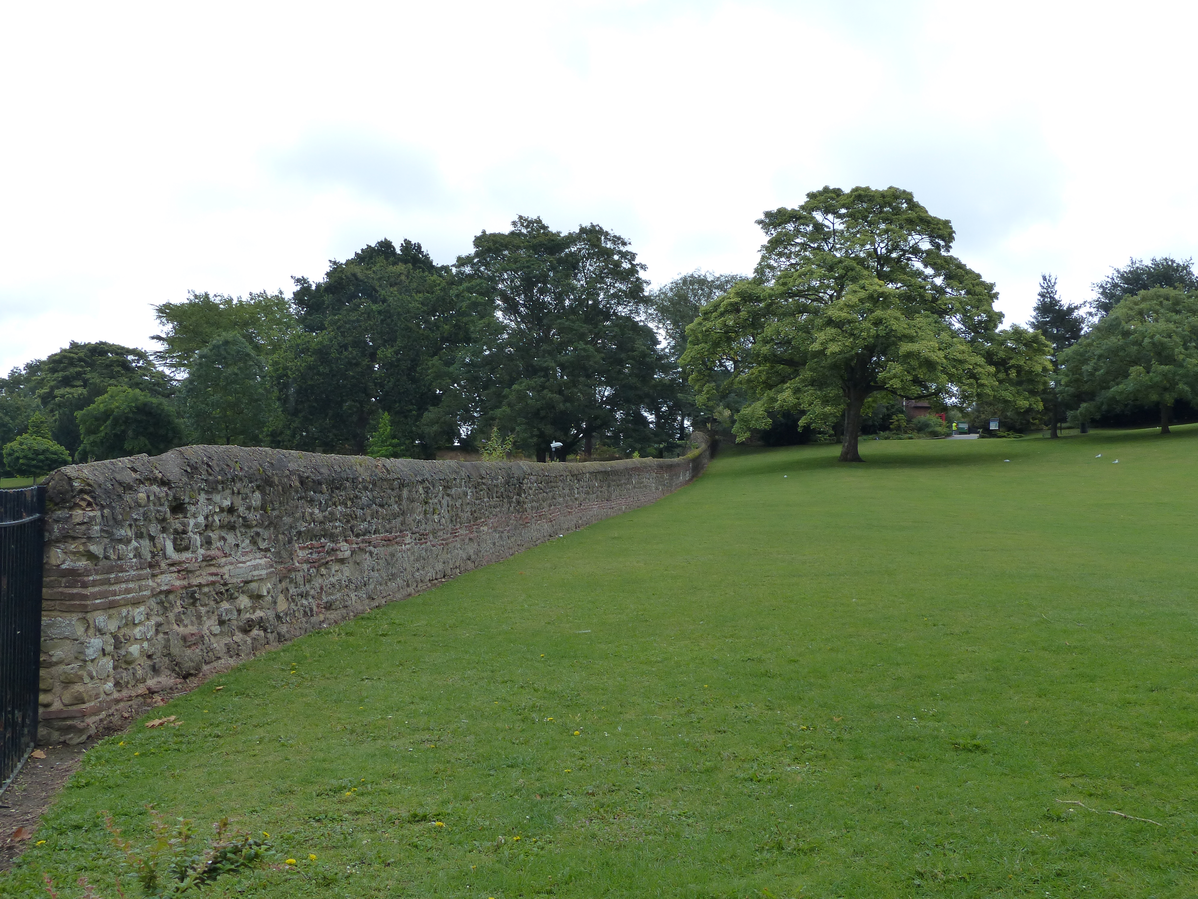 A section of Roman wall remained in the park. We knew it was a Roman wall because of the fact I’d learnt during my walking tour in York. The Romans included that distinctive row of red bricks in their walls and there, running the length of this wall, was the Roman signature.