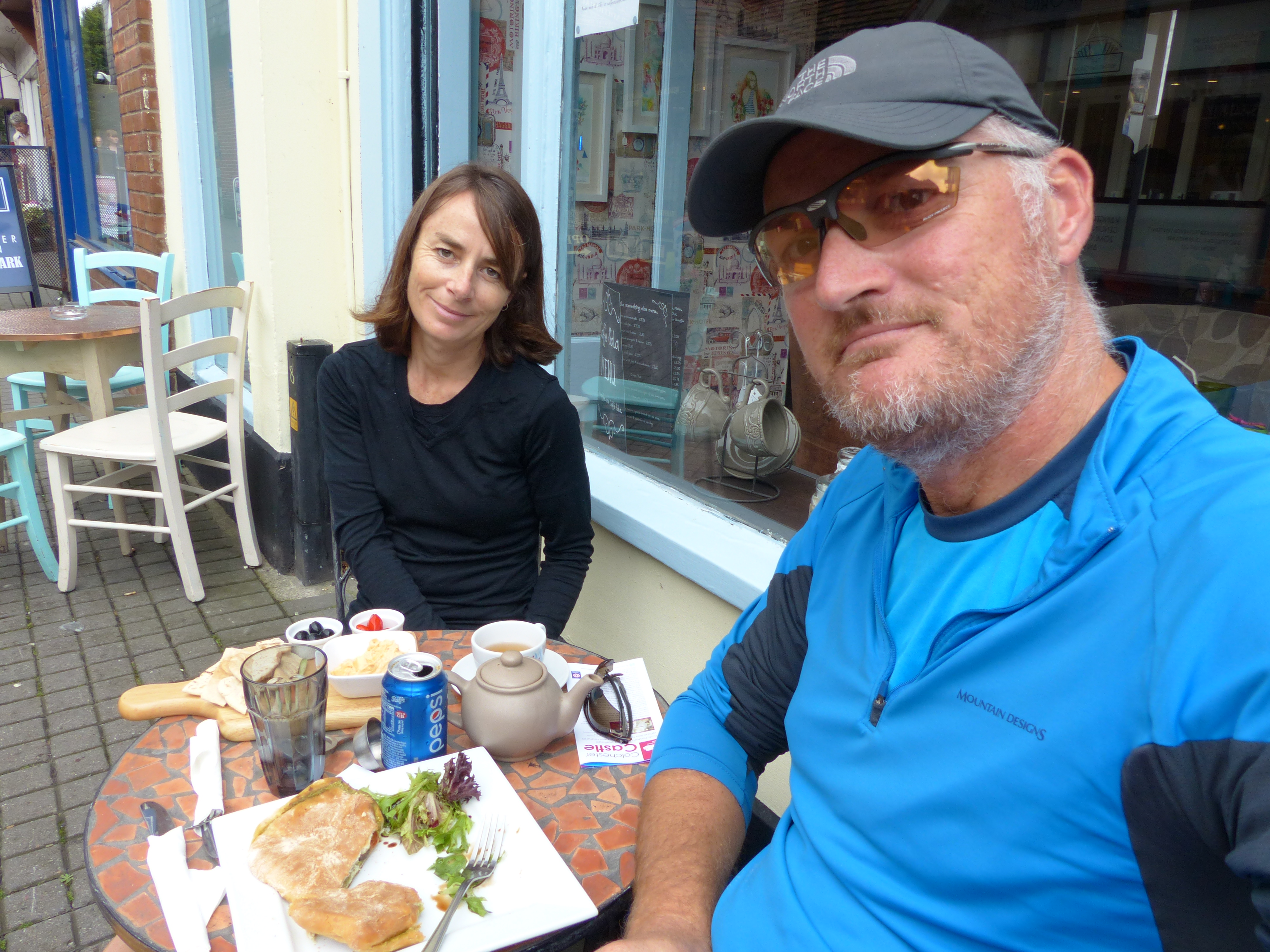 It was time for elevenses, so we headed for the nice pedestrianised lane way that we had walked up earlier in the morning, to stroll past the lines of cafes. After settling on one that had a wide range on offer, both vegan and non-vegan, we sat ourselves at an outside table, to watch the town go by. It was a late elevenses, early lunch, so we decided to have something more substantial than usual. Steve enjoyed a panini, with a mediterranean style filling and I had a fantastic selection on my hummus board, with the tastiest bowl of hummus ever, veggie sticks, pita bread, olives and piquant peppers. Deelish! The girl behind the counter, who served me when I ordered, had the friendliest face with the most gorgeous, sparkling smile that spread across it. When she came to clear our table she asked, “Woz everyfing awright?”