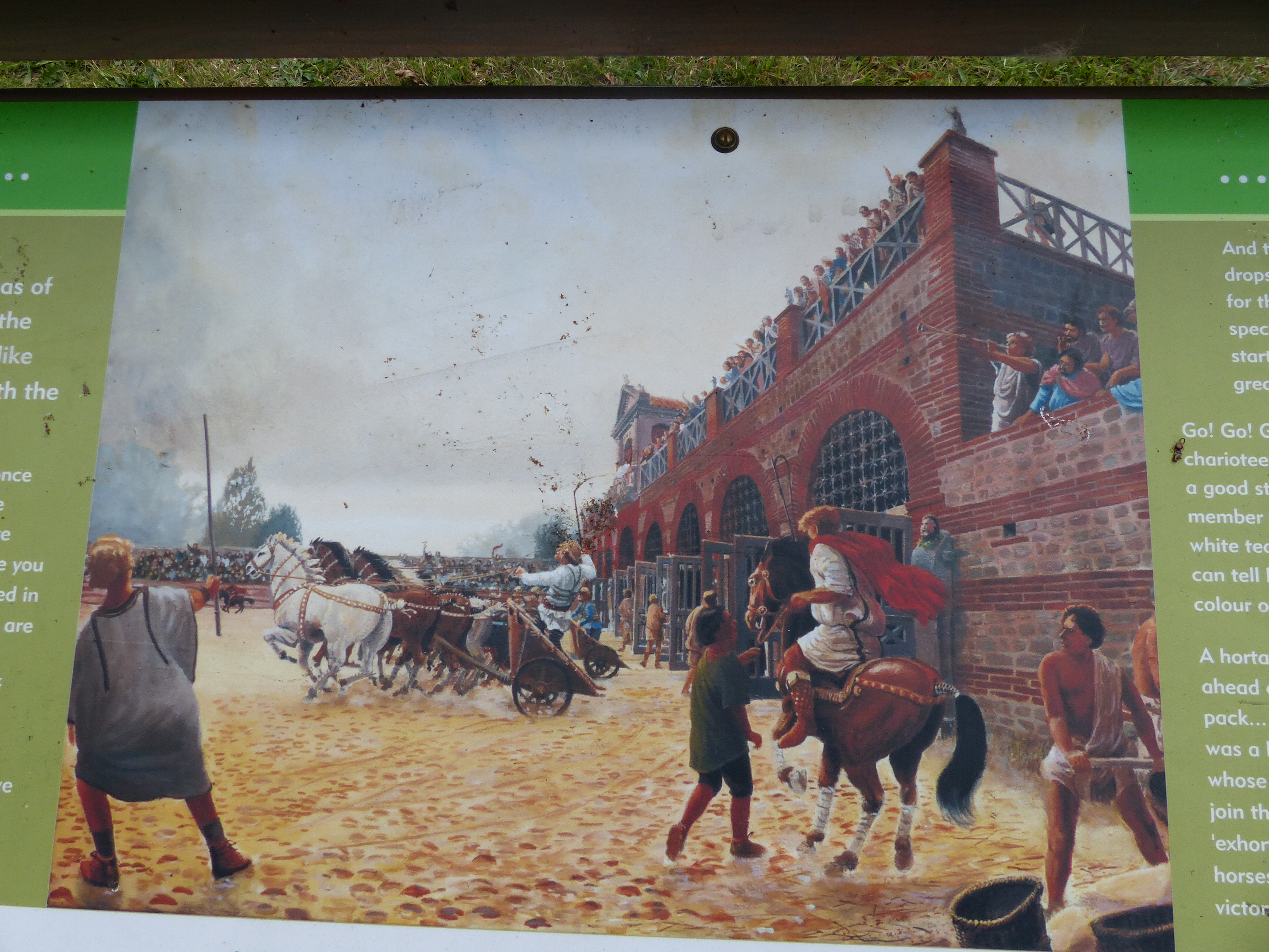 A short stroll out of the town centre, we found the remains of the Roman Circus. In its time, this would have been the huge stadium used for chariot races. The remains are still there, but buried, so a replica has been created on the site, to show where the foundations are. The replica has been built with the same materials as the original and a perspex screen has been used so we could look through it and see where the original arches would have stood on the replicas of the original base.