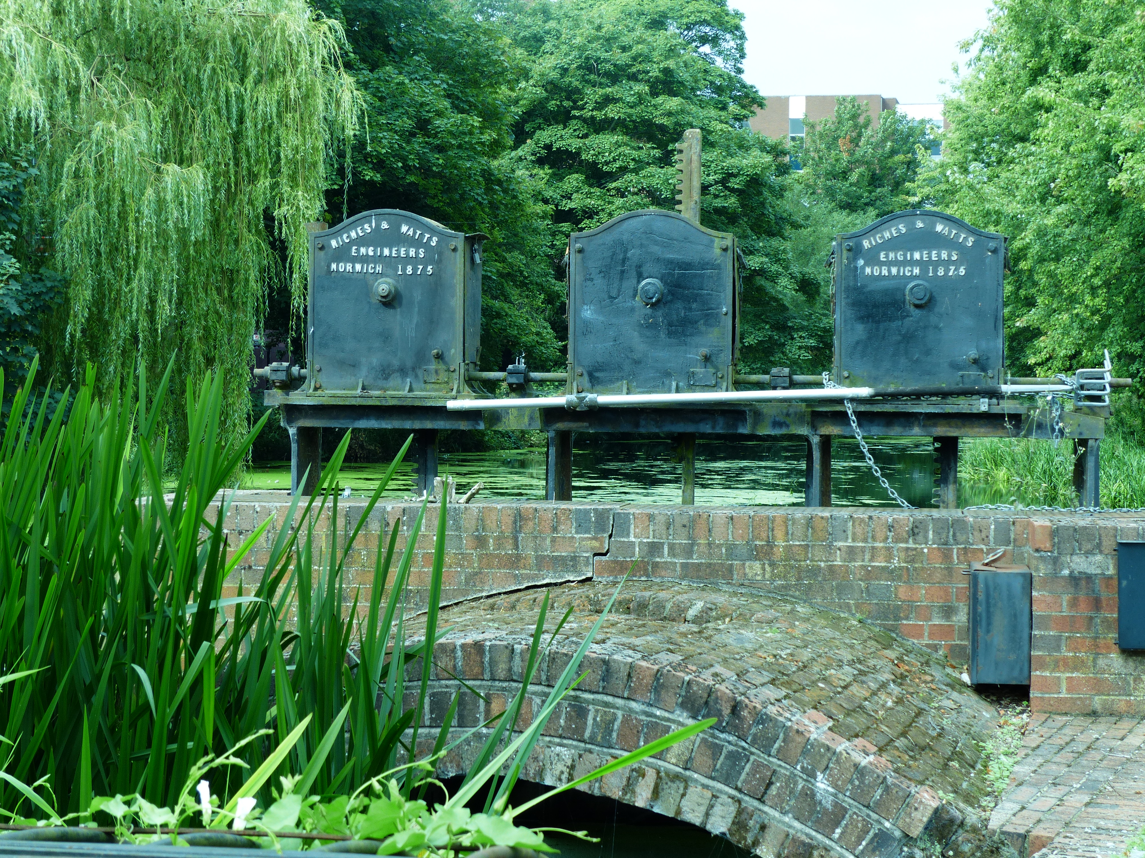 Our onward pedalling took us into the High Street and then through the parks and gardens again. We rode down a lane way that took us to Lower Castle Park, a section of the park we hadn’t seen yesterday. Here we saw the remains of Middle Mill Weir and I found it fascinating that a mill had stood on that site since the time of the Norman Conquest. I am still staggered by the age and history of the places we’ve been. As I stood looking at the Roman Arch, I looked closely at the stones and the trademark Roman red brick layers and just pondered the fact that they were touched by people from so long ago. I really can’t process that. The age of places and buildings and the fact they are still here and standing, is just incredible and I am constantly left with brain strain, just trying to comprehend the age of the historic monuments and sites we’ve been lucky enough to see.
