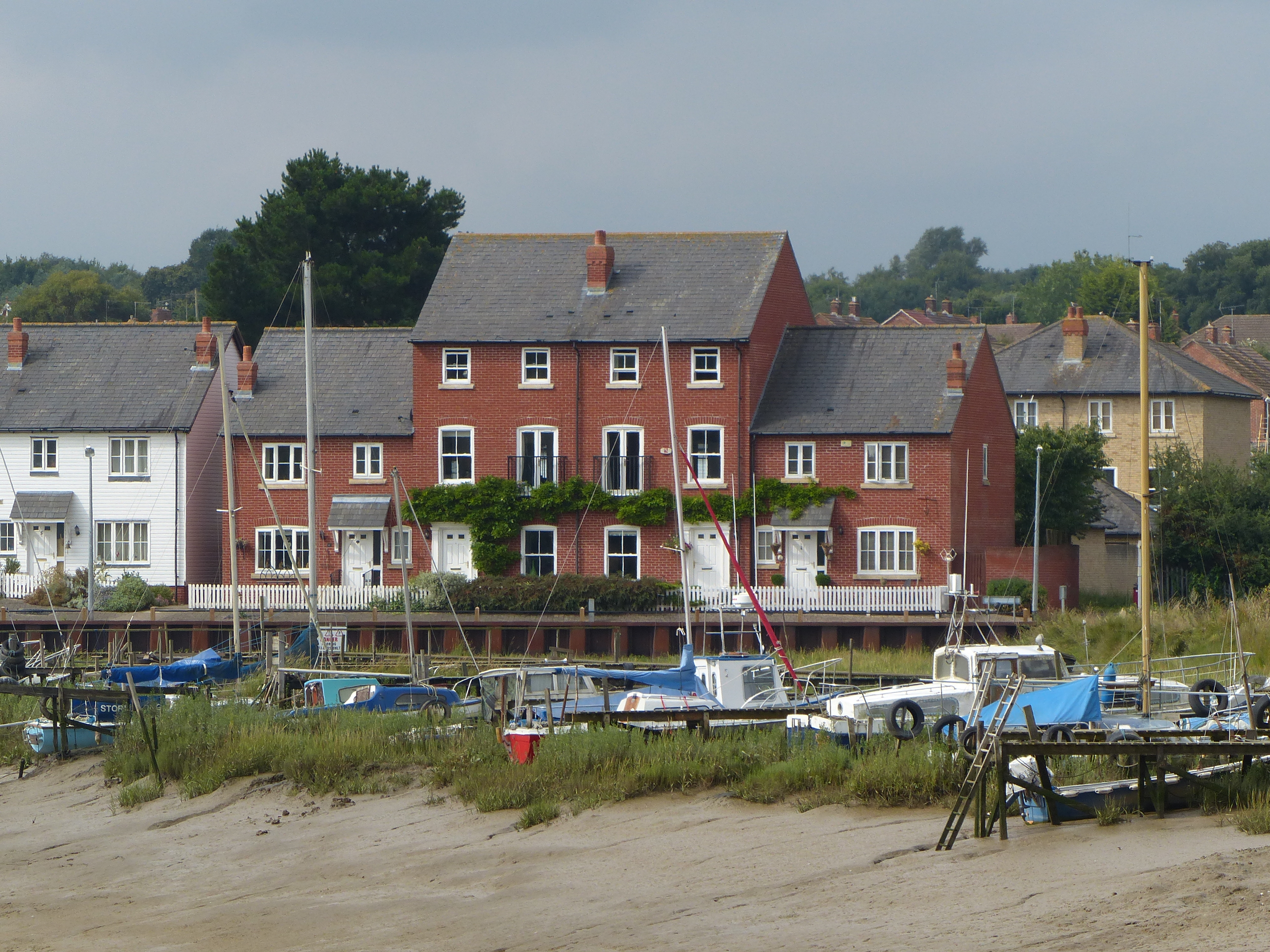 It was a warm one today! I think it hit 23C, so it was a grand ride in the humid warmth. We caught sight of Wivenhoe through the trees alongside our path, with its charming rows of houses lining the river and the boats in the foreground. Lovely.
