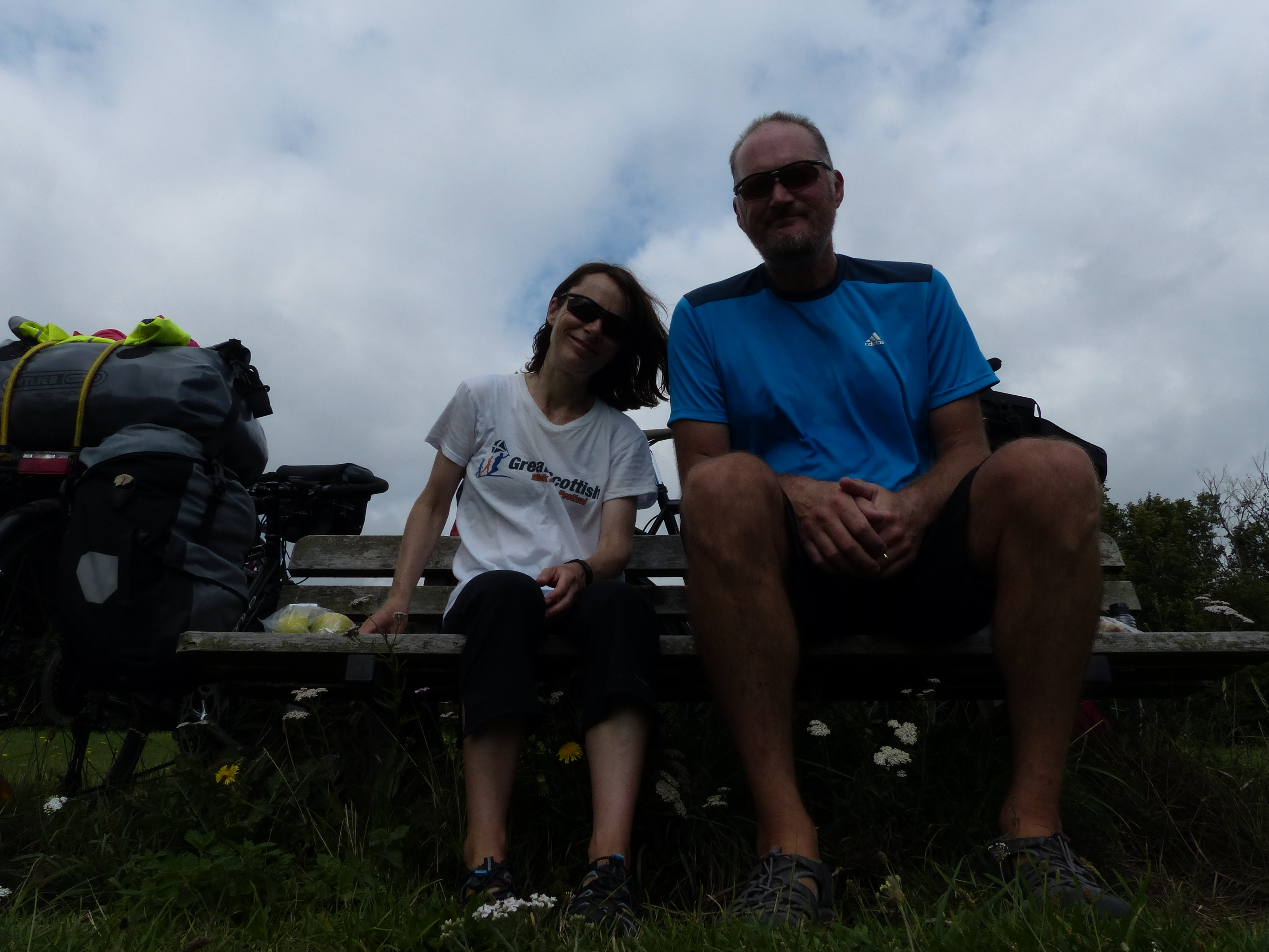 On we went, leaving Colchester behind us, riding along cycle paths and greeting passers by, as we wheeled towards Wivenhoe. We had a nice flat start to the ride, along the river, which was terrific. After restocking supplies, the pantry panniers on the front of my bike had returned to their heavy best and I was feeling the extra weight on the bike.