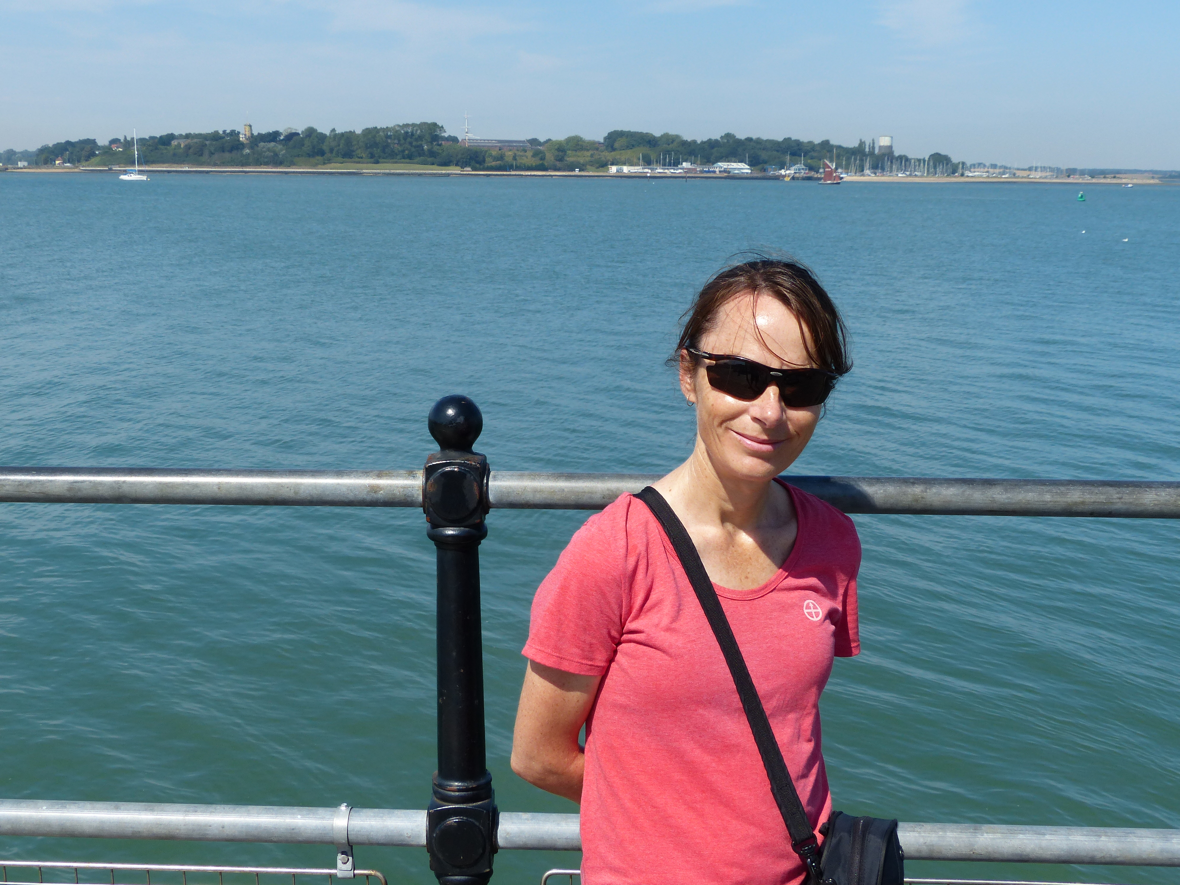 First stop was the laundrette to get those loads of washing done, before leaving. We rode along the cycle path from the hotel, into Dovercoat. We rode in the brilliant sunshine, under a hot and hazy sky and in the warm air. Bee-yoo-tee-ful! Load of washing on, so off we went to fill in some time, sitting in the sunshine and looking out to sea. It was so nice, sitting up above the beach, watching the ferry heading out to sea, people paddling in the shallows and the dogs frolicking about the shore, all enjoyed under that super, sparkling sun! For all the troubles we’ve had with wind over the last few months, we actually said, “Ooh, isn’t that breeze nice.” Today, that breeze was welcome, with the cooling hand it extended, on a hot and hazy morning.