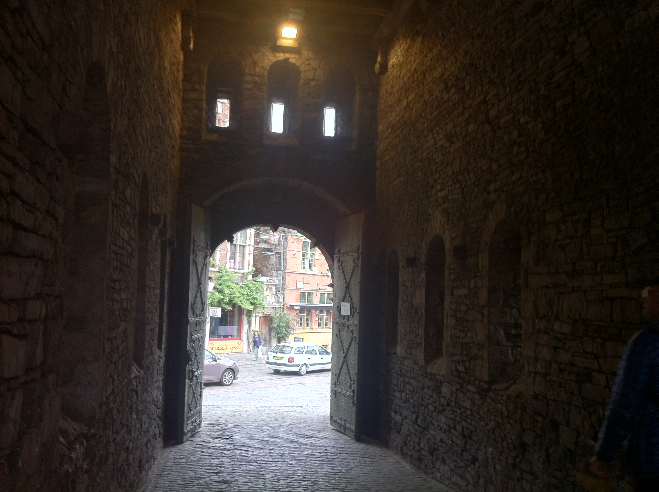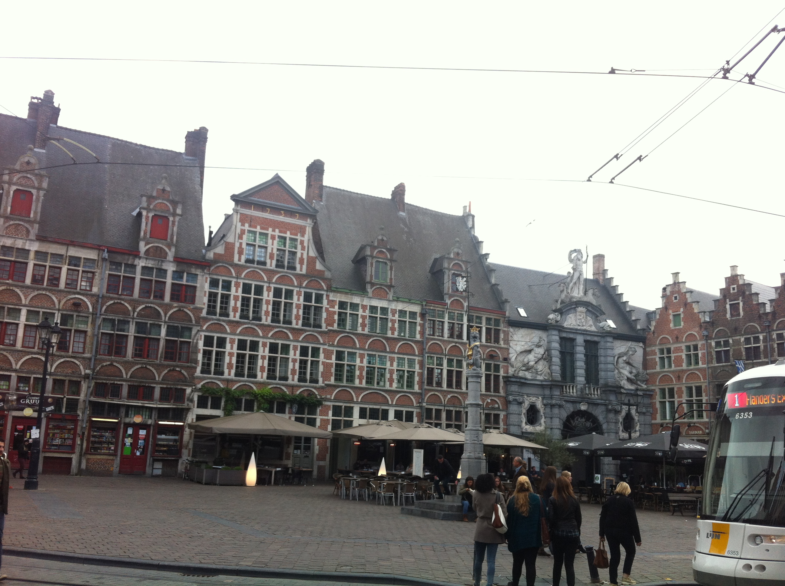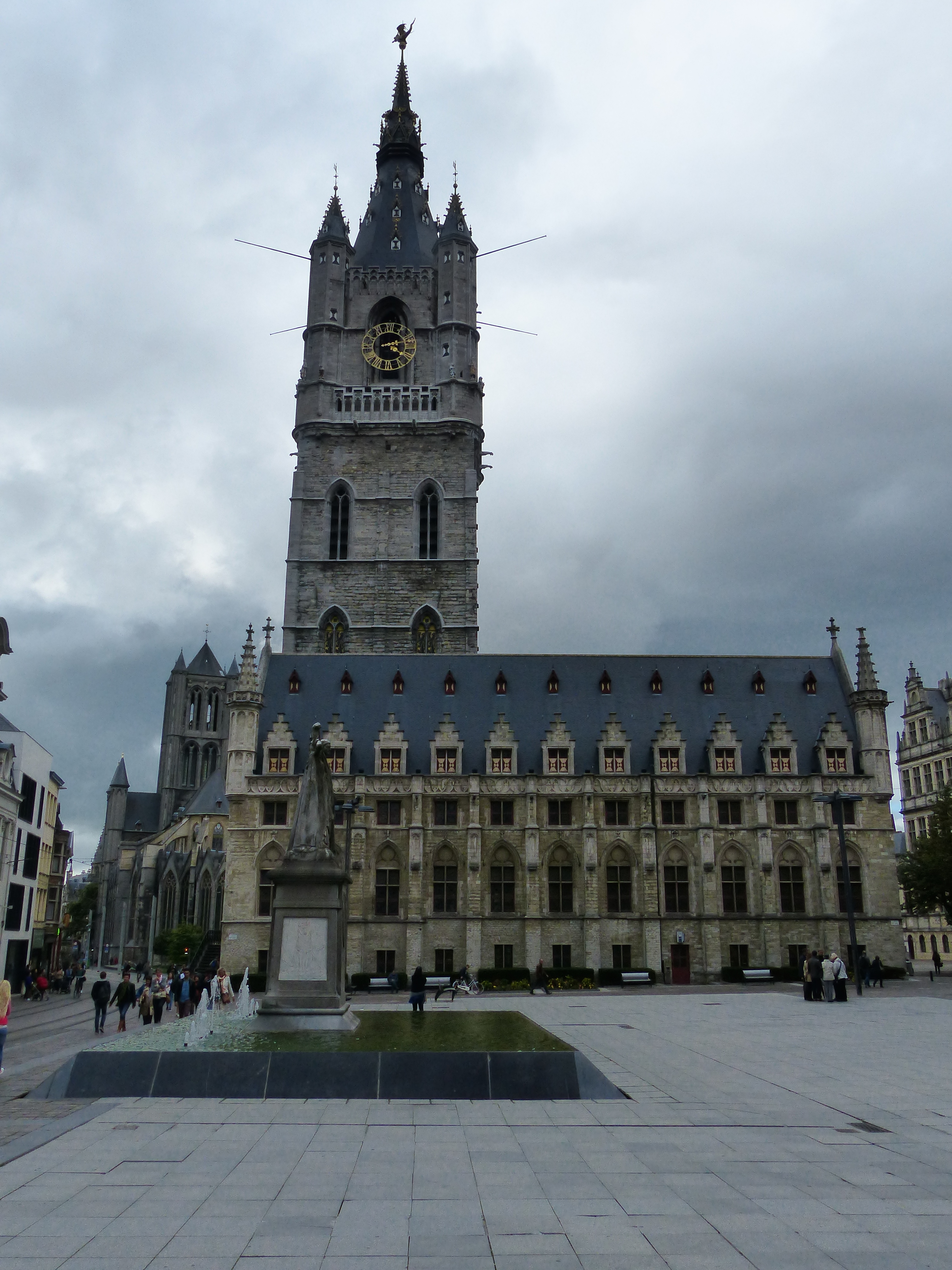 We searched for a hotel and finally located one, which also turned out to be a bit dodgy, once we’d checked in and found our room outside and up two flights of very steep and narrow stairs. The bikes have been housed in the garden shed, so they at least have somewhere to stay after their 64km ride. After a quick shower to warm the bones, we set off into the streets of Ghent. We are only in Ghent for one reason – my favourite poem. I love Robert Browning’s How They Brought the Good News from Ghent to Aix, (the part where the horse dies gets me every time! I challenge you to read it without moving to the edge of your seat, or beginning to move like you are that rider, in the saddle, frantically delivering the news that could save Aix!), so I just had to see Ghent for myself. (Mechelen is also mentioned in the poem, so now I’ve been to two places it mentions!)