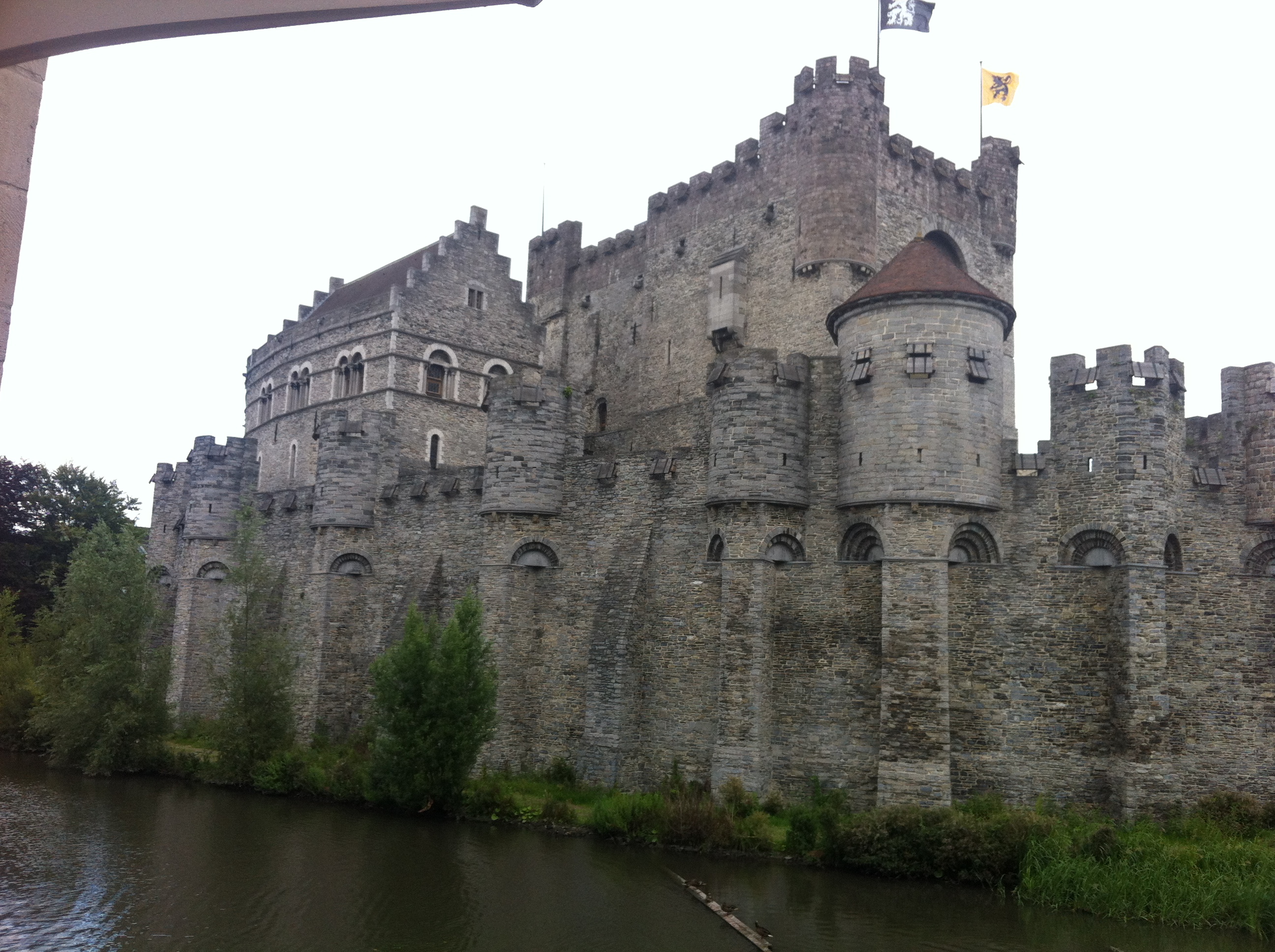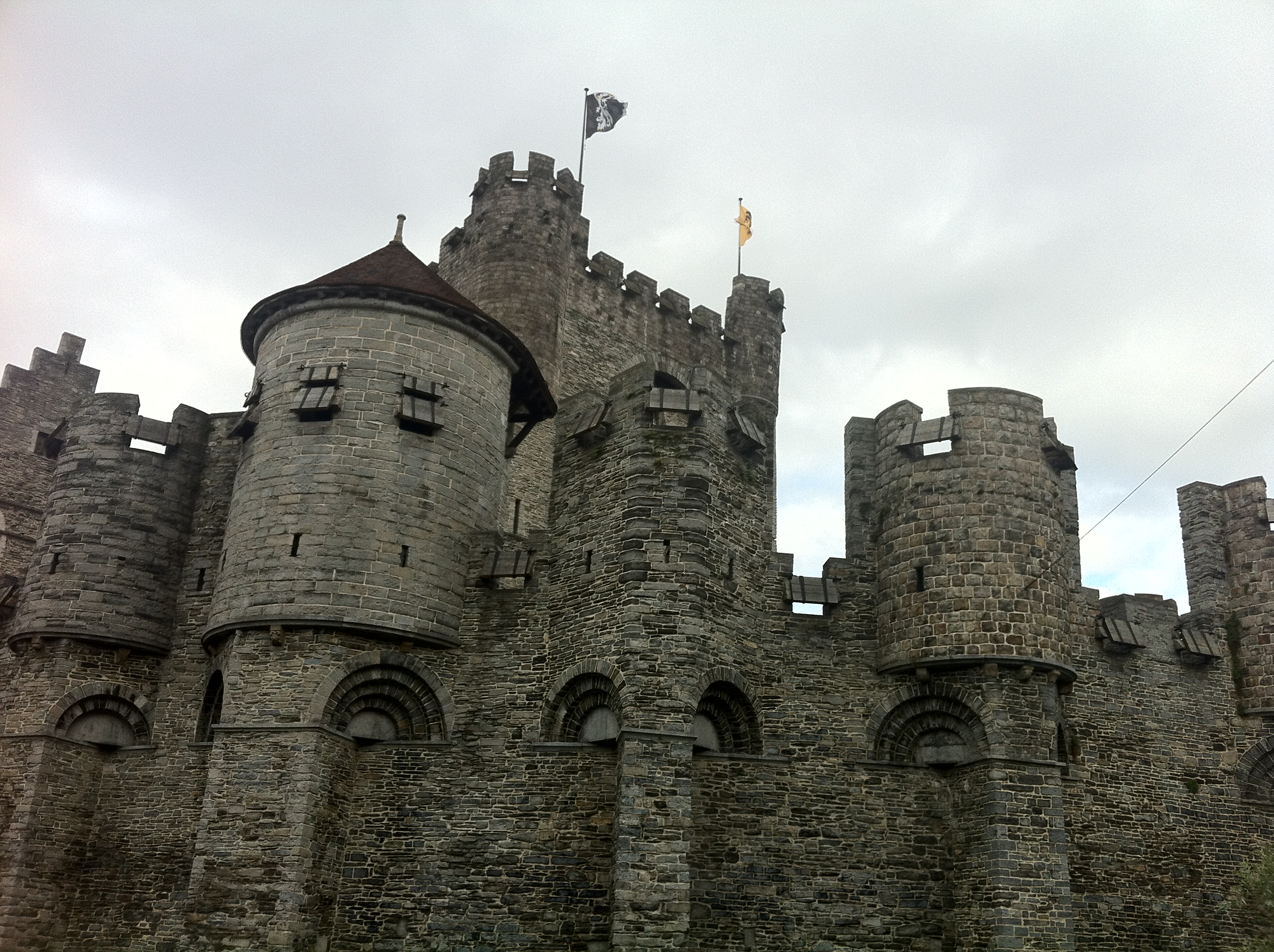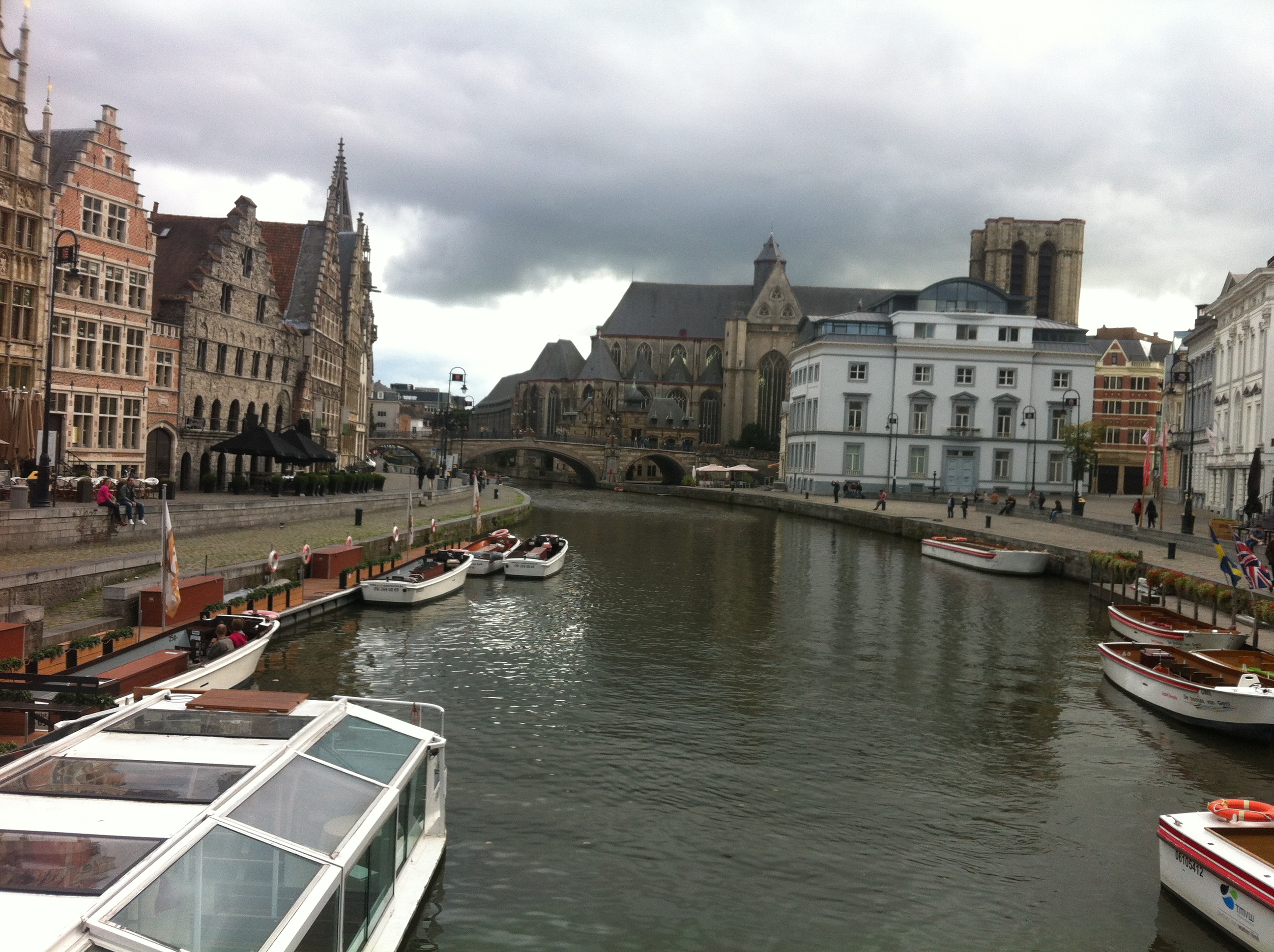 We searched for a hotel and finally located one, which also turned out to be a bit dodgy, once we’d checked in and found our room outside and up two flights of very steep and narrow stairs. The bikes have been housed in the garden shed, so they at least have somewhere to stay after their 64km ride. After a quick shower to warm the bones, we set off into the streets of Ghent. We are only in Ghent for one reason – my favourite poem. I love Robert Browning’s How They Brought the Good News from Ghent to Aix, (the part where the horse dies gets me every time! I challenge you to read it without moving to the edge of your seat, or beginning to move like you are that rider, in the saddle, frantically delivering the news that could save Aix!), so I just had to see Ghent for myself. (Mechelen is also mentioned in the poem, so now I’ve been to two places it mentions!)