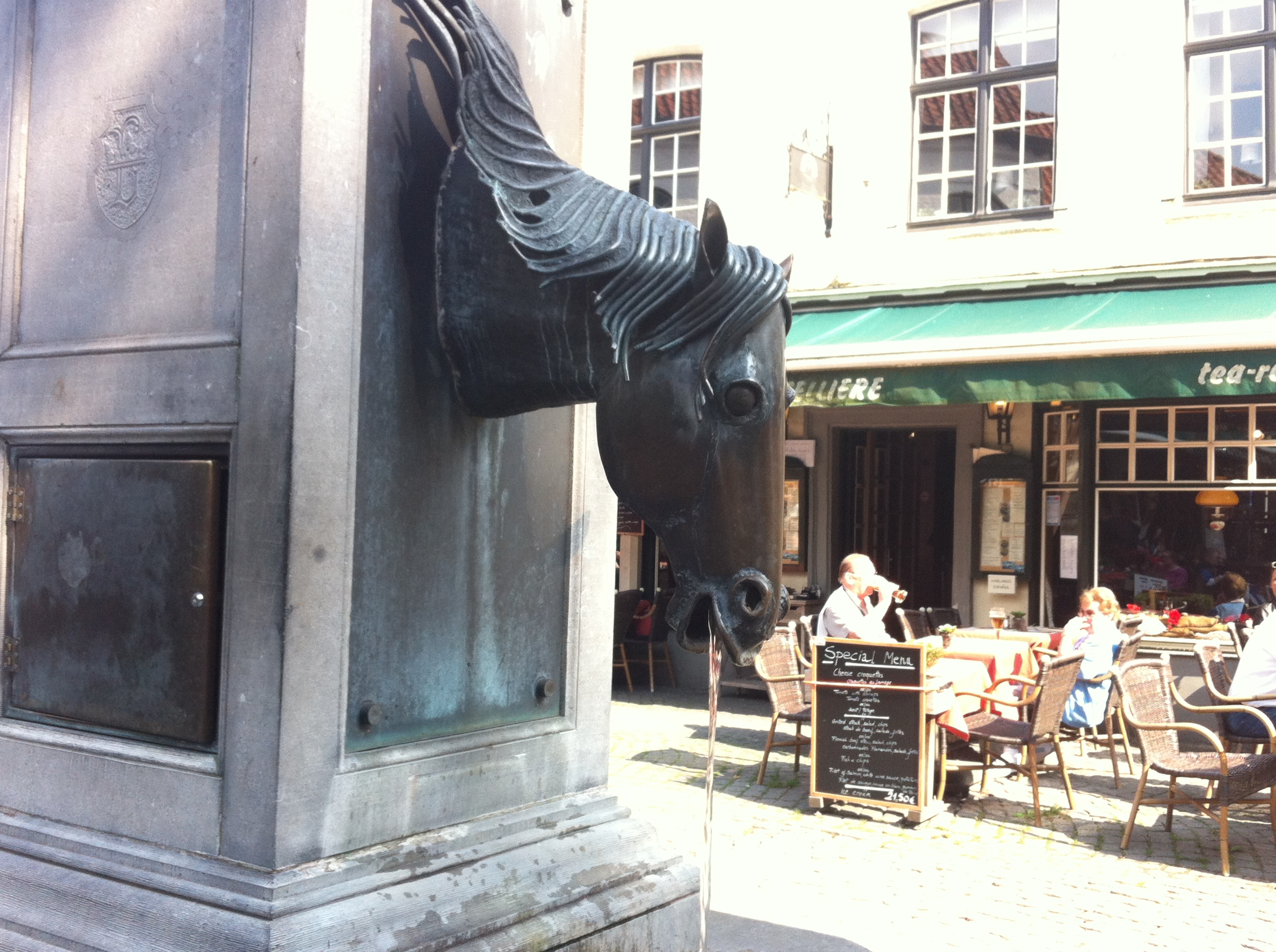 We walked into Market Square, a central, open cobbled space, surrounded by cafes and the tall belfry of Saint Saviour’s Cathedral.
