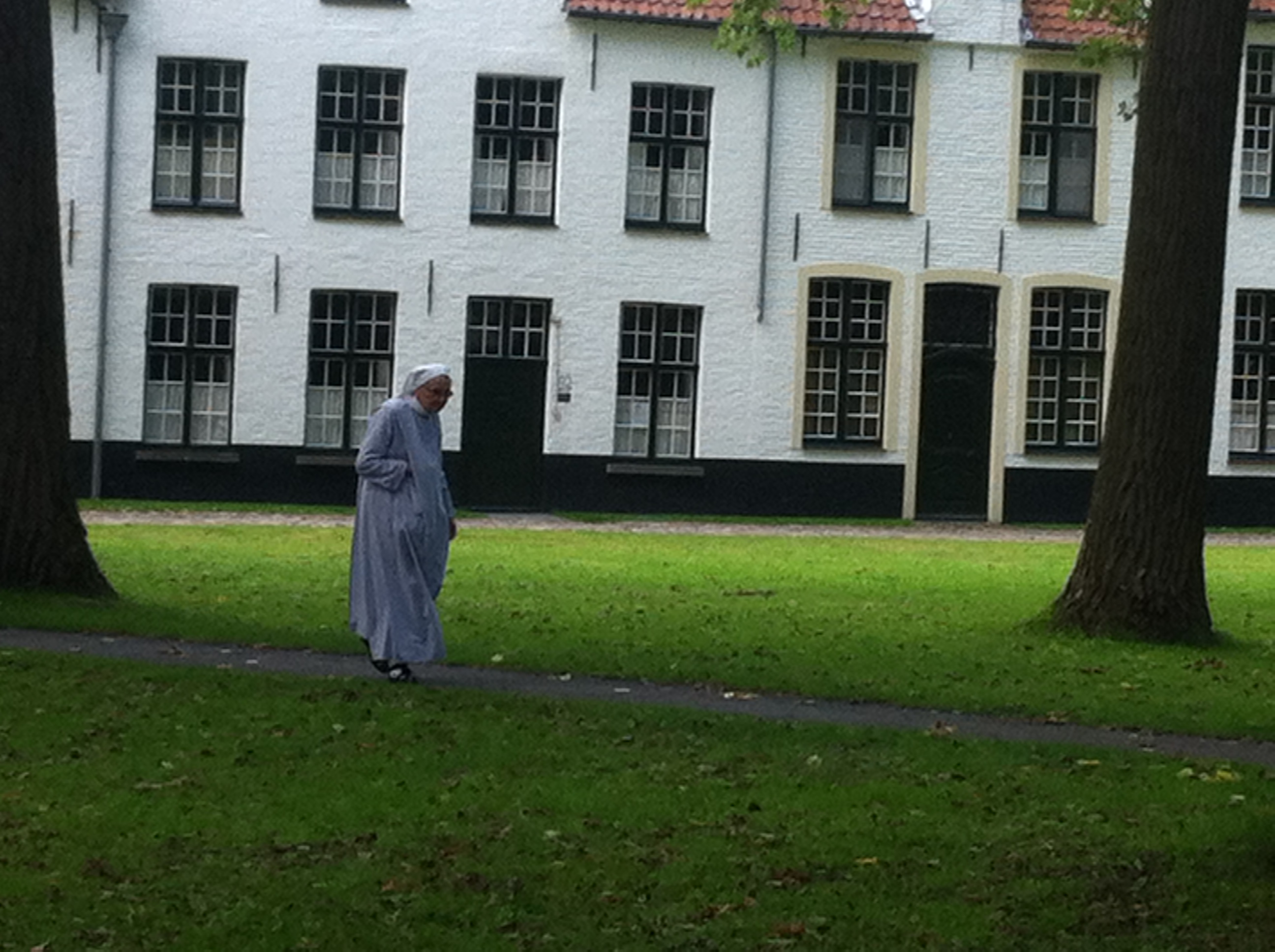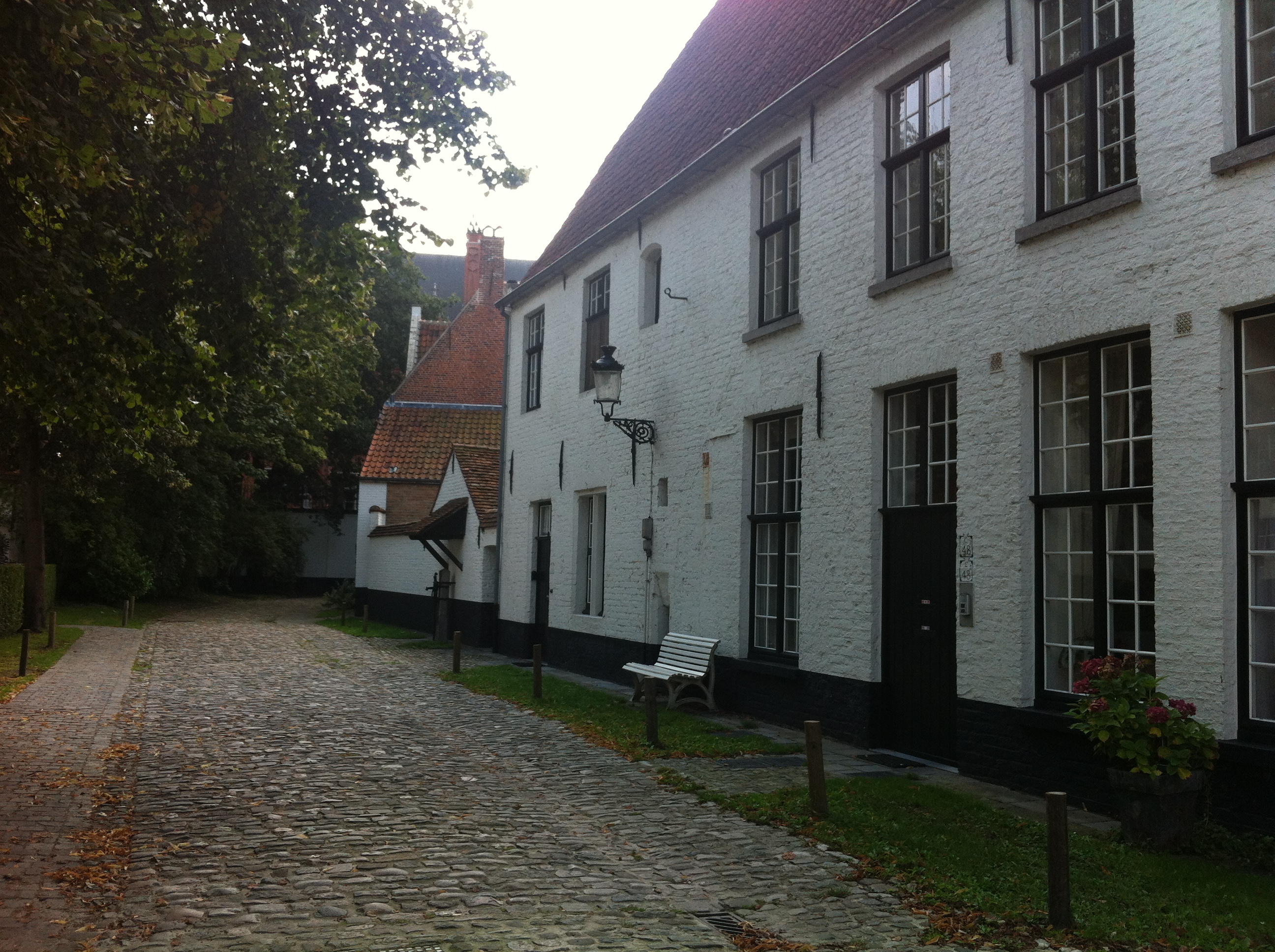 On our way back to our hotel, we passed through the Begijnhof Beguinage. This instantly became my favourite place in Brugge. It was founded in 1245 and is today, home to a community of nuns from the Order of St. Benedict. At the centre of this small, walled village, was a garden with towering trees, surrounded by the quaint, white walled cottages. This was like a haven of peace and tranquility in the heart of a very busy city. I could have happily sat there for ages, just letting the serenity surround me. It was a beautiful place and I loved spending some time there.