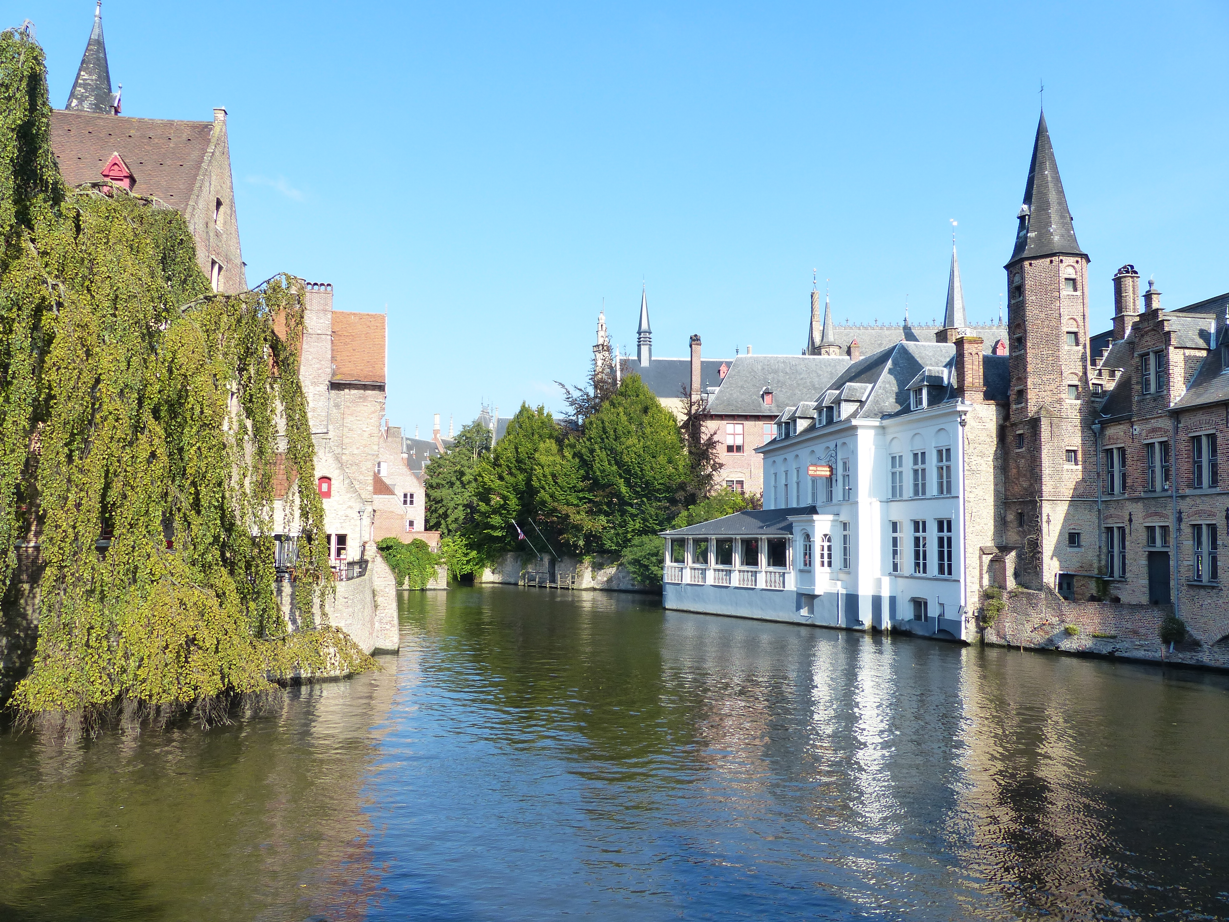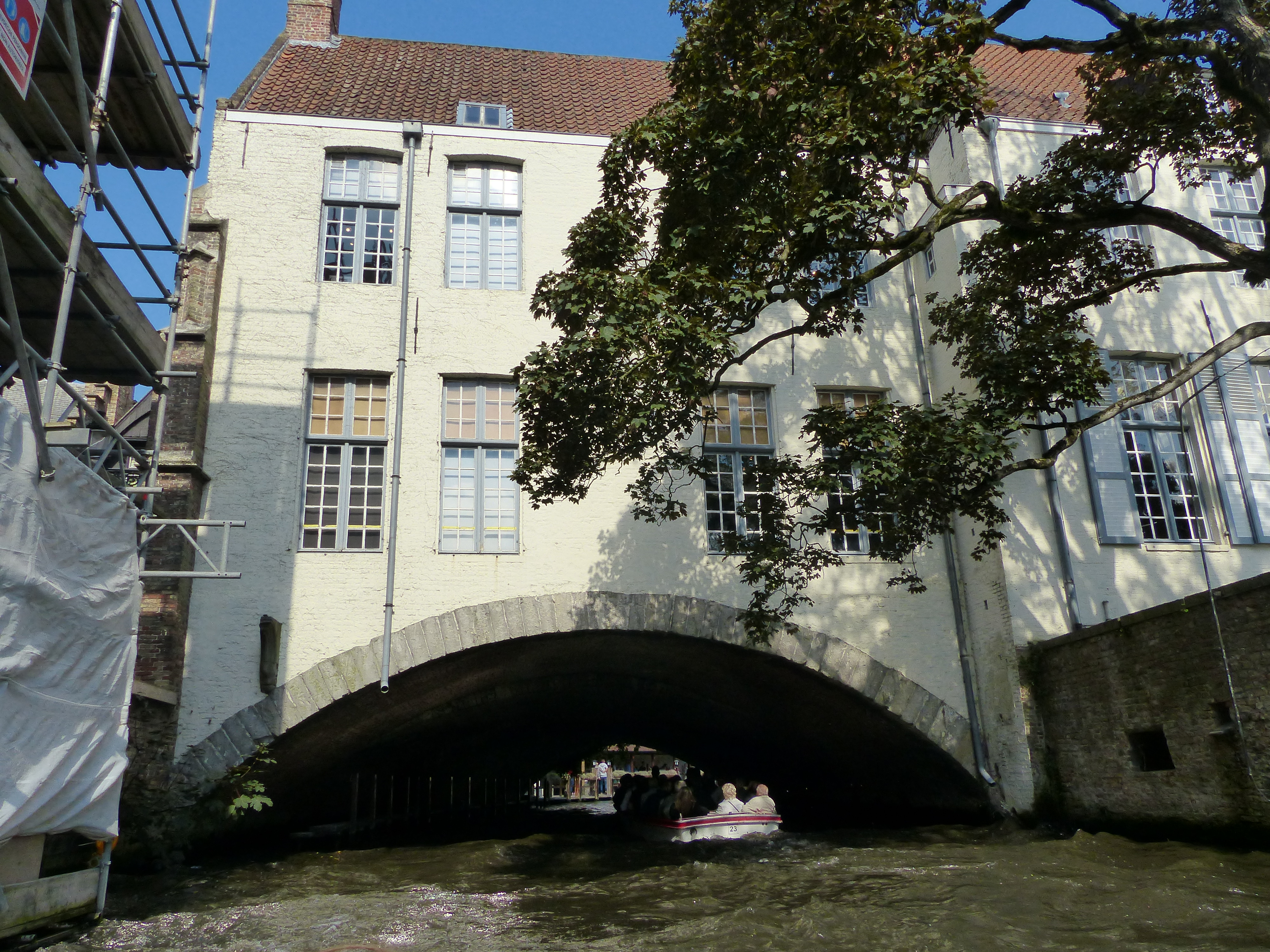 We have roamed the streets and lanes of many towns and cities, but Brugge was inviting us to see its gorgeous grandeur from a different viewpoint. Let’s hop in a boat and take to the water! We joined the line of fellow tourists, waiting to cruise the city’s canals and we were again, surrounded by a variety of English speaking voices. Our craft pulled up in front of us, we boarded and found ourselves sitting beside three ladies from Canberra and Sydney! We cruised along the water, looking up and around at the beautiful buildings. Our guide was fantastic, repeating everything in English, Flemish and French. He even repeated the jokes. Every now and again he’d say something and a group of passengers would laugh, while the remainder looked a little befuddled and out of the loop, then he’d repeat it in another language and another group would laugh, before repeating it again and the remaining passengers caught up, laughed and everyone was now in the loop. It was like the Mexican wave of chuckles!