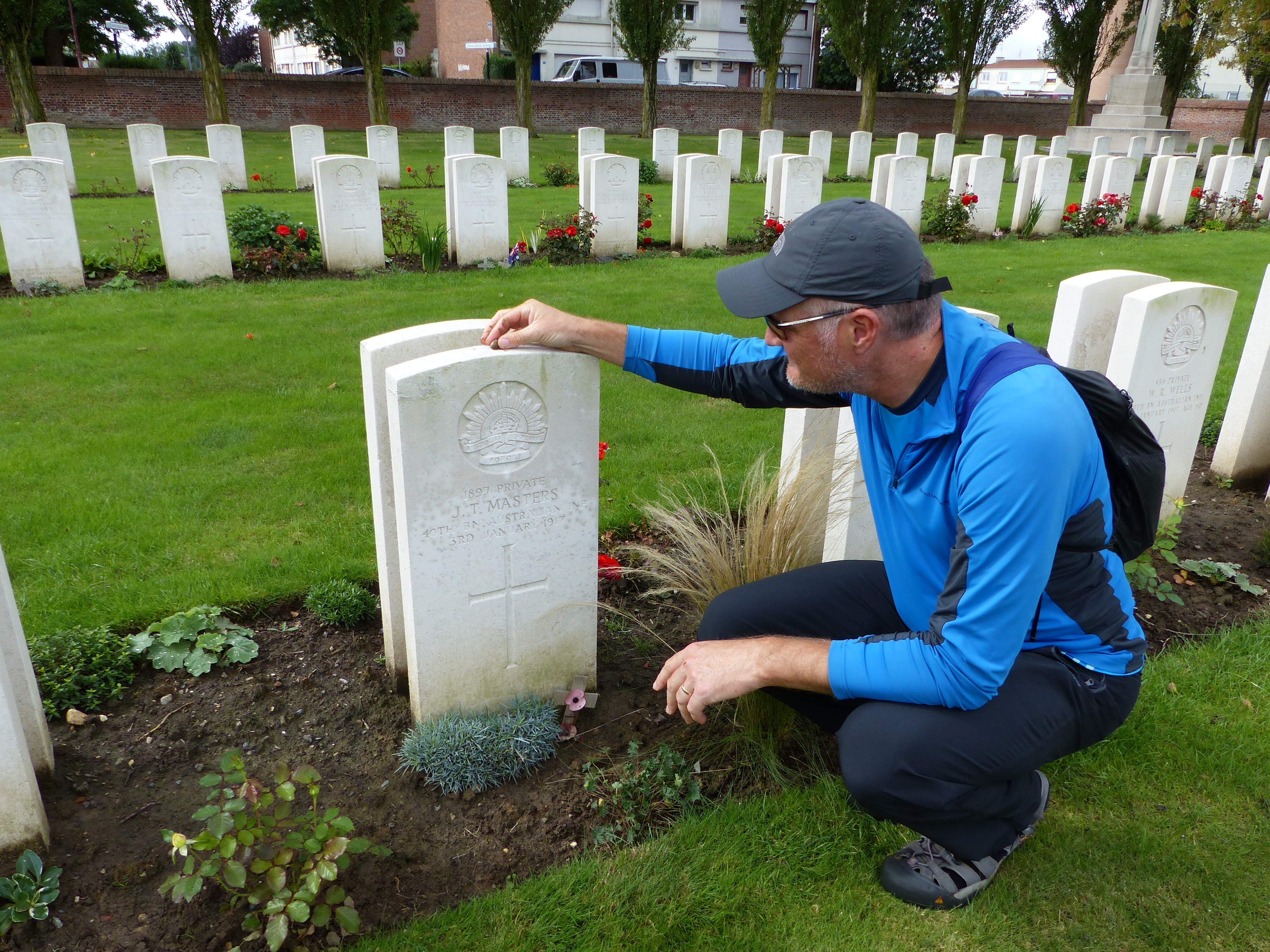 With the first task completed, we bought our tickets for Armentieres, then filled in a bit of time with an elevenses snack on a bench at the train station, before hopping on our train for the short ride out to the cemetery. We walked through the back streets of Armentiers and found the Military Cemetery, which is the last resting place for many soldiers from World War One. It was another peaceful place, perfectly and respectfully maintained and lined with those all too familiar white headstones. We have seen so many of them, so many lives lost.